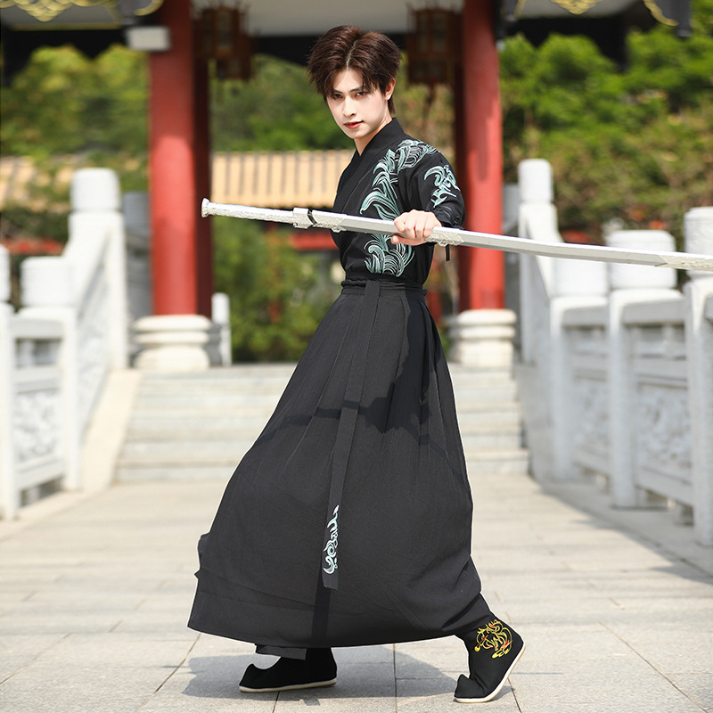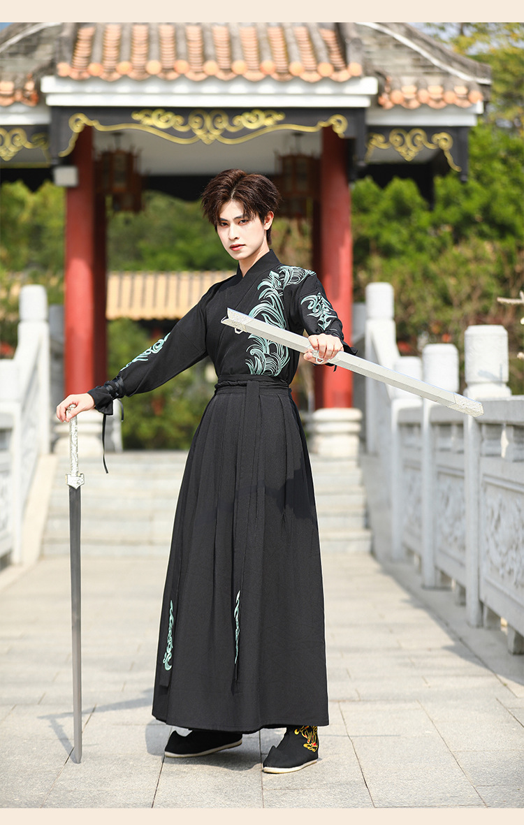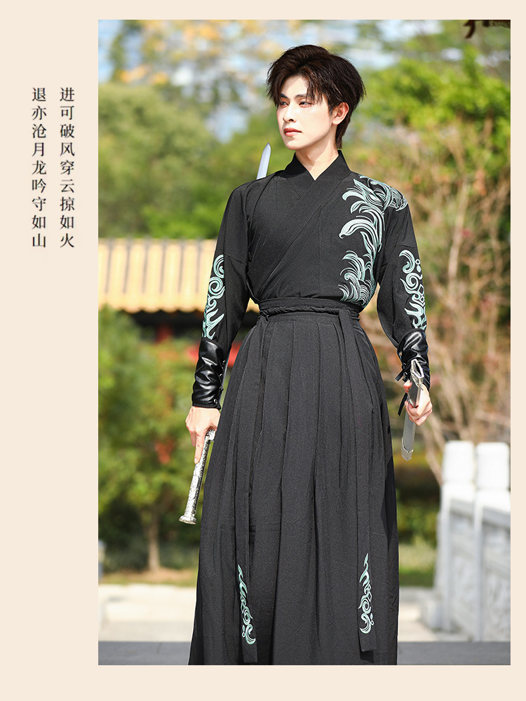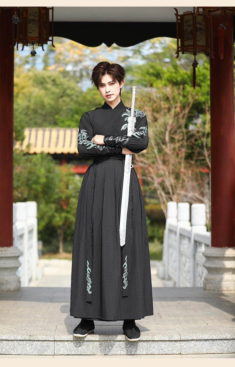 春季新款中国风男汉服国潮古风帅气霸气腹黑公子武侠剑客表演套装