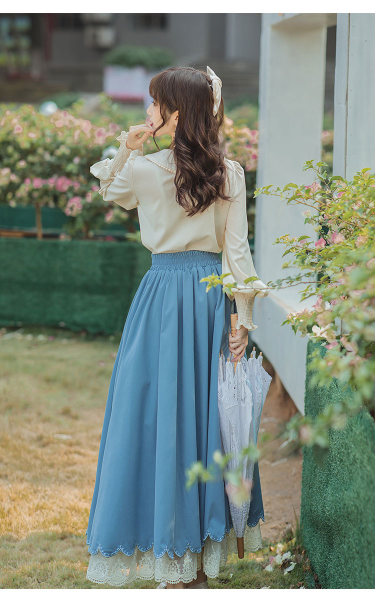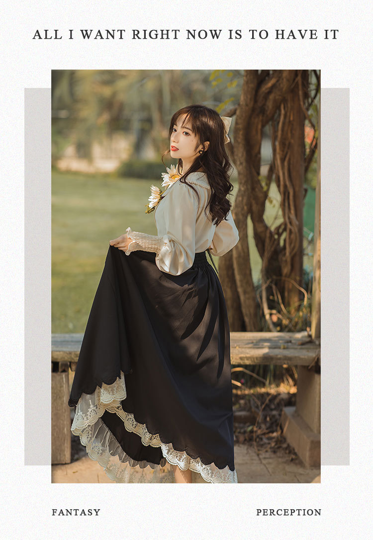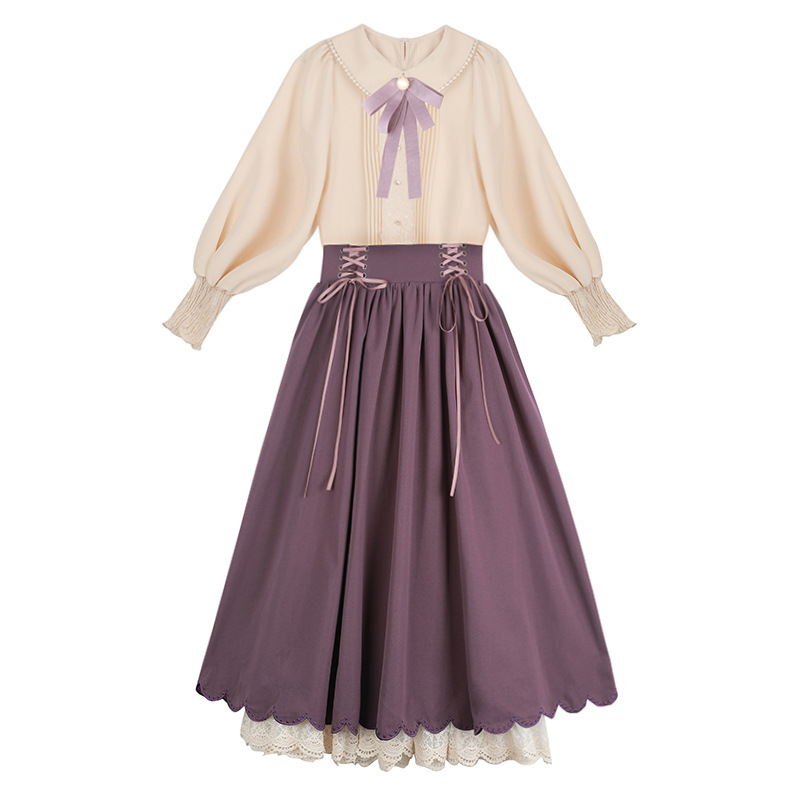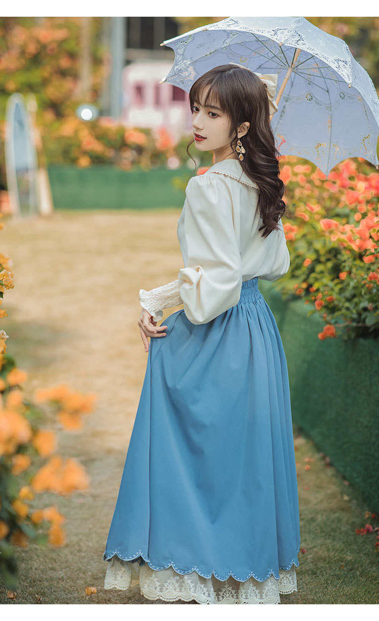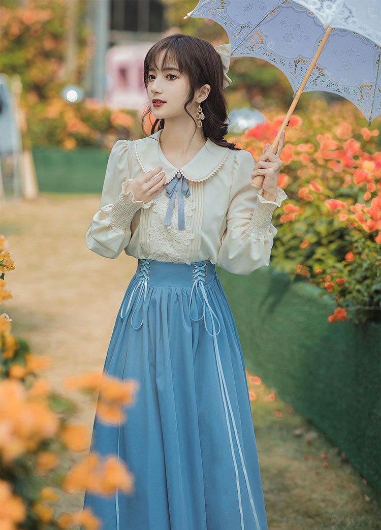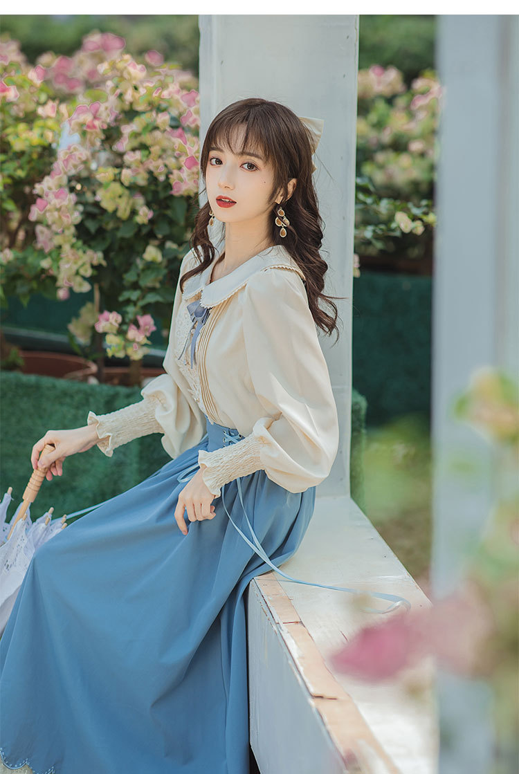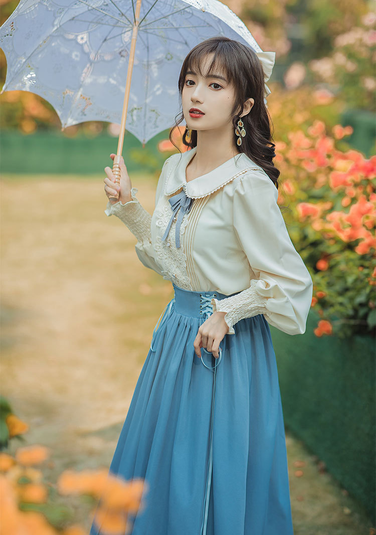 新中式女装国风实拍多色春装复古学院风长袖绣花高腰茶歇裙连衣裙
