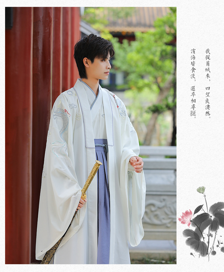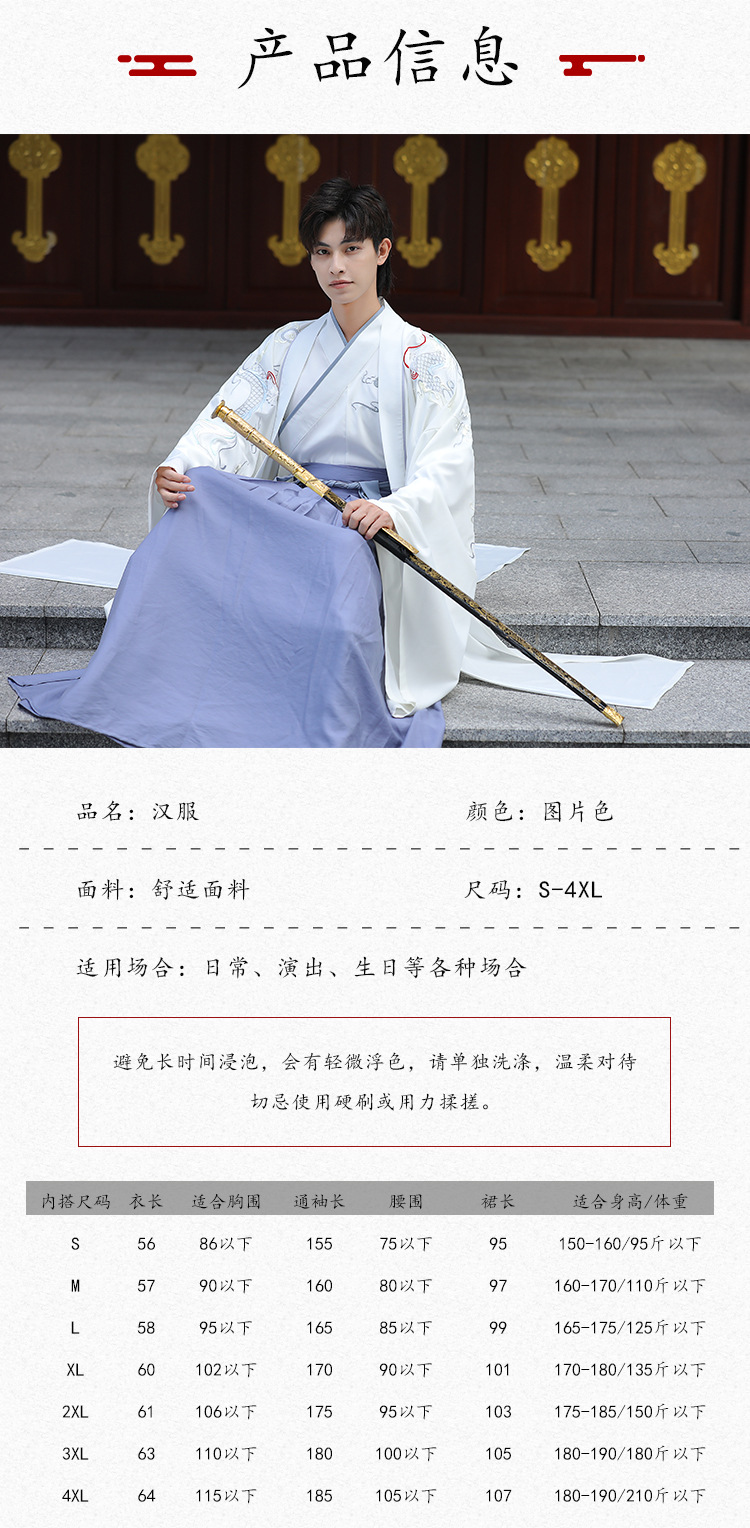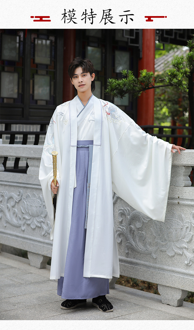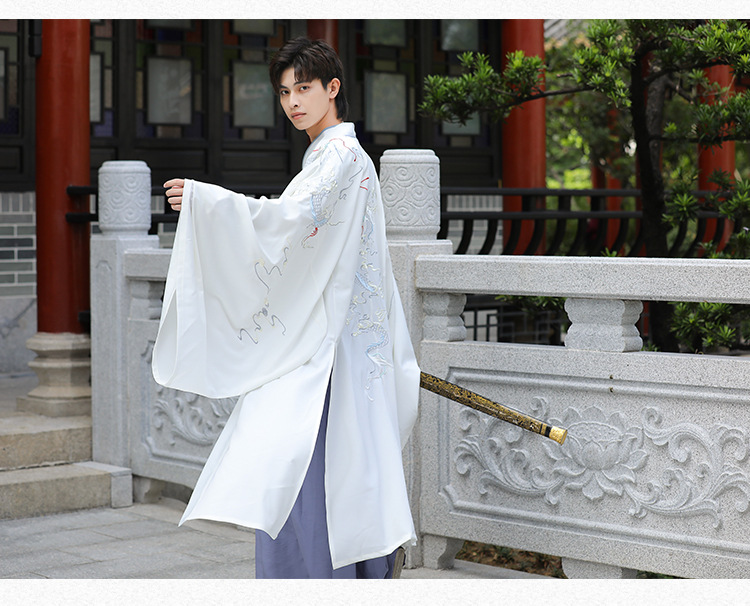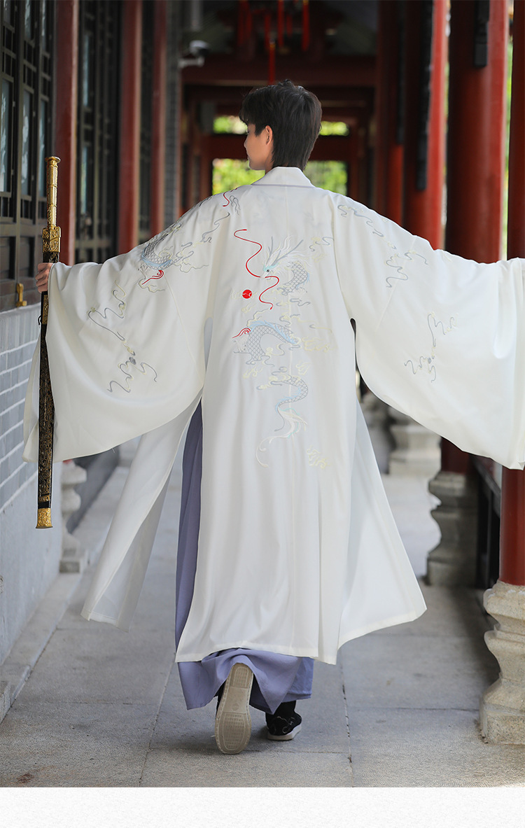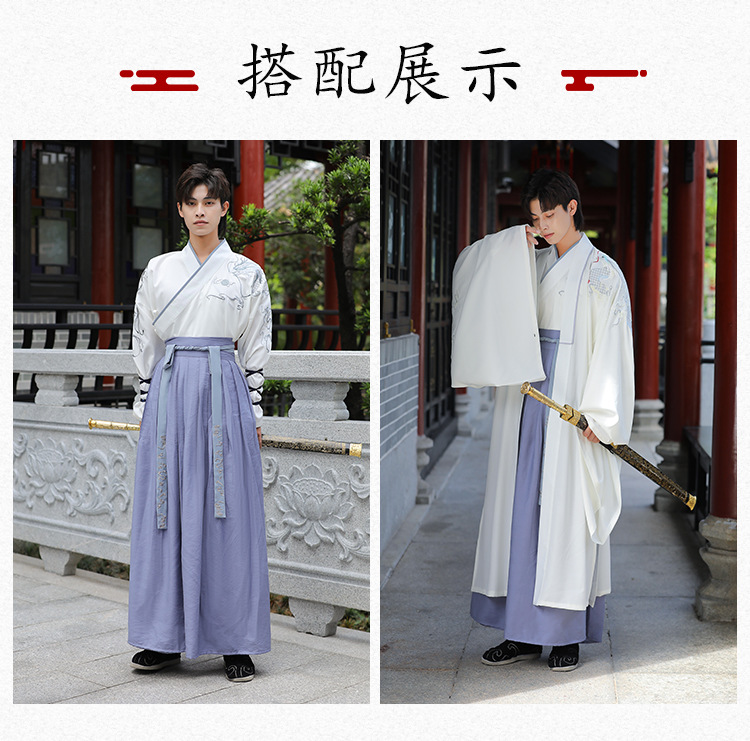 中国风传统长袖古装汉元素古风汉服复古武士剑客龙纹刺绣日常套装
