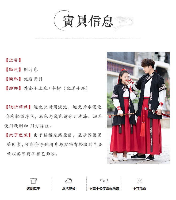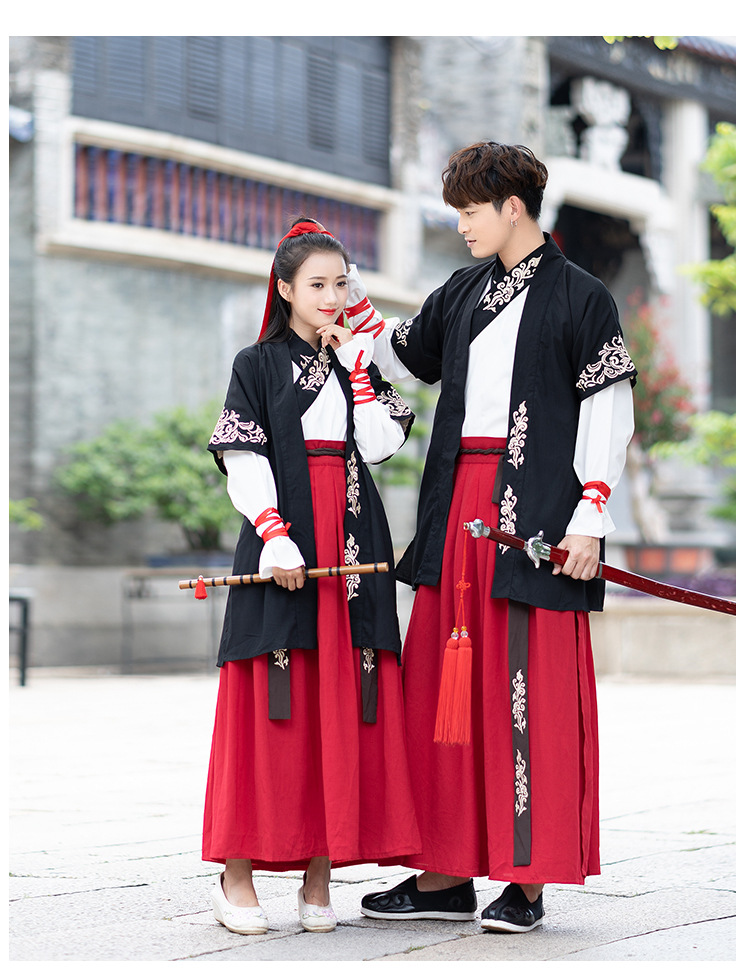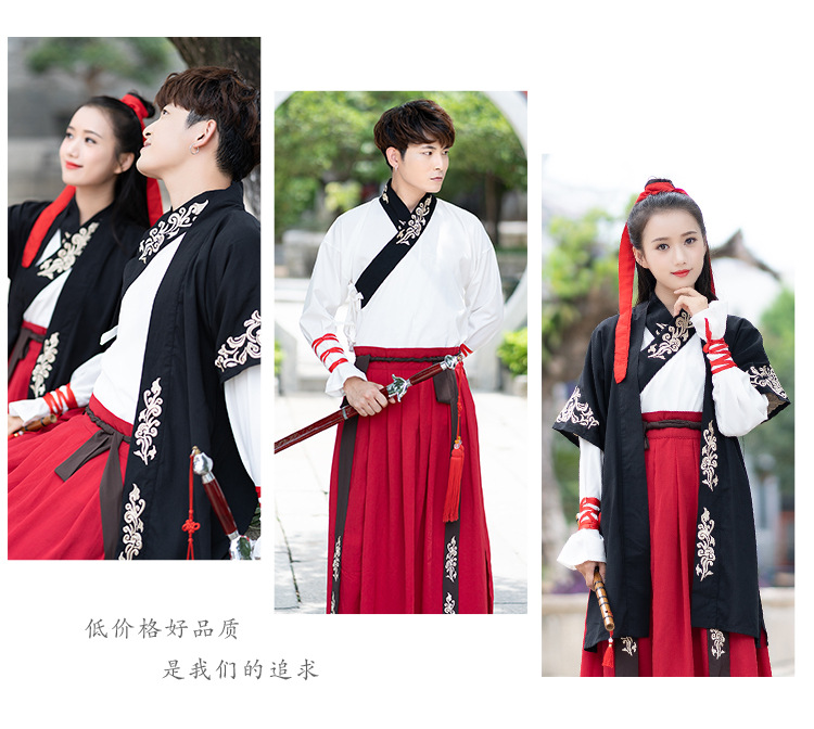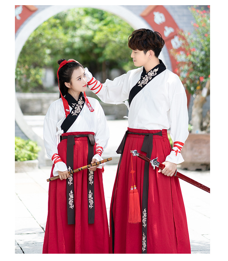 中国风春夏新款女装汉服男套装古装汉元素古风汉元素绣花白红套装