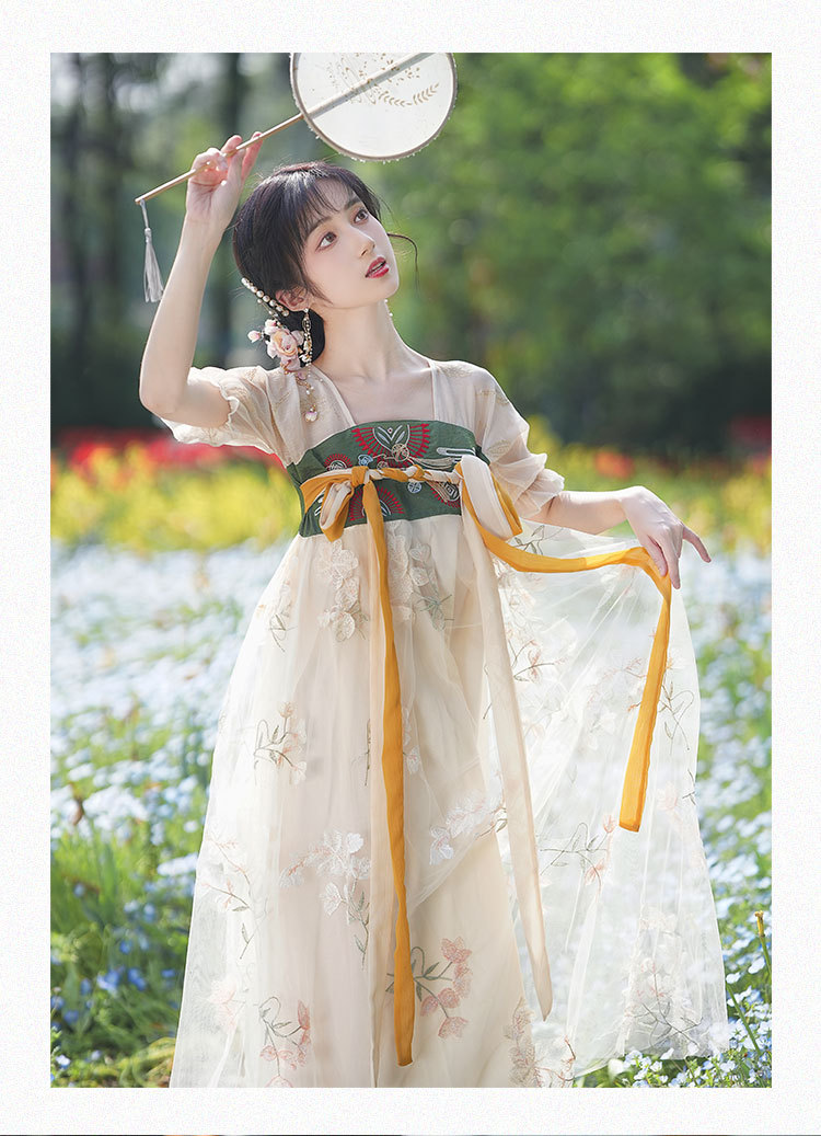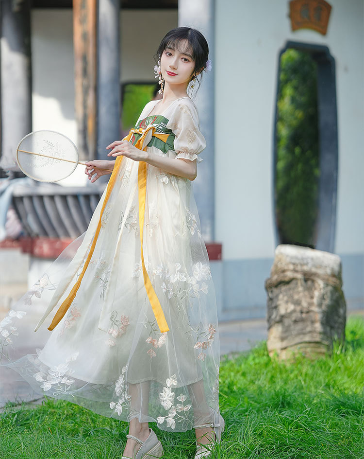 中国风改良短袖汉服仙气古风汉元素改良汉元素国风刺绣短袖连衣裙