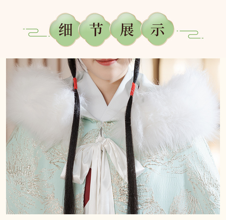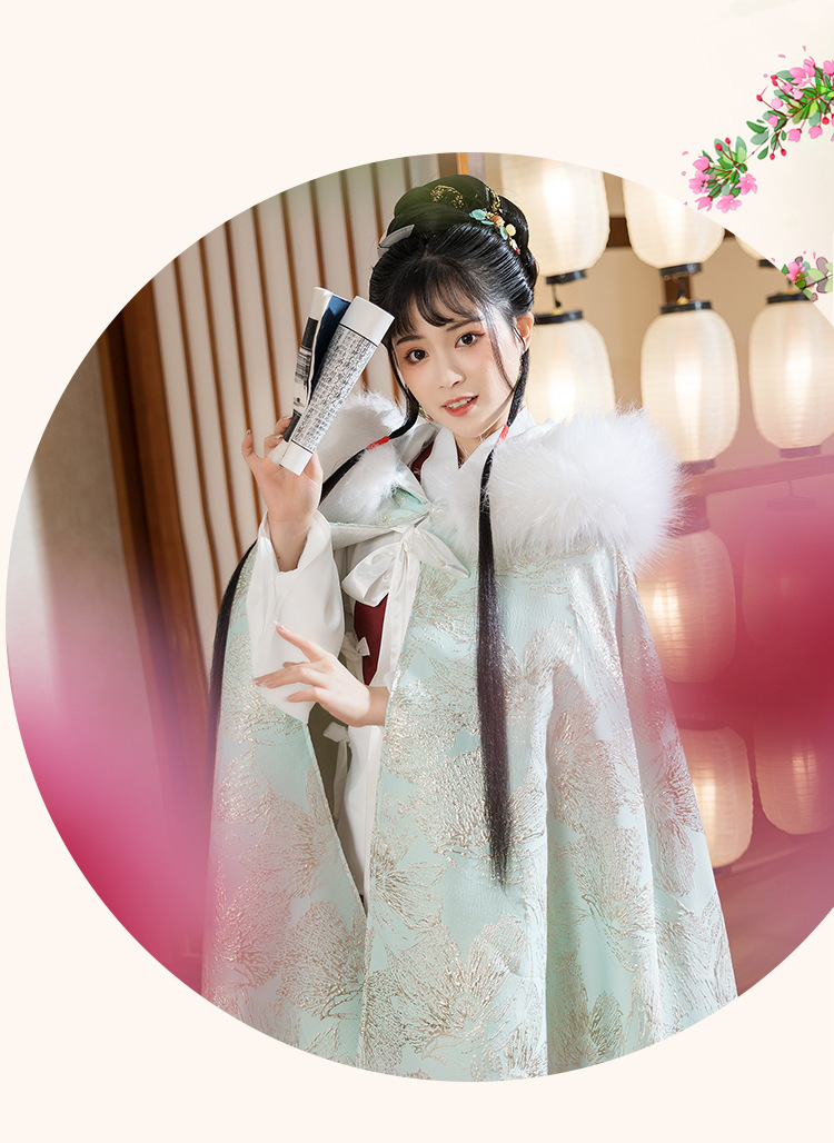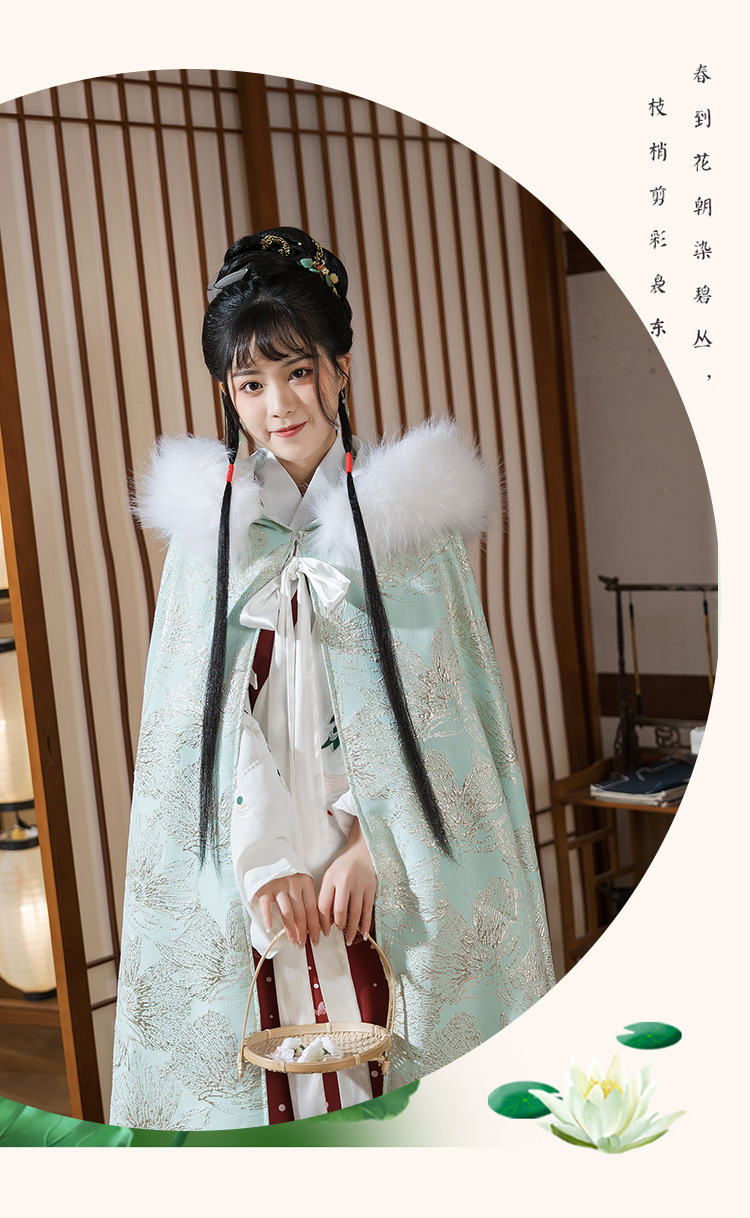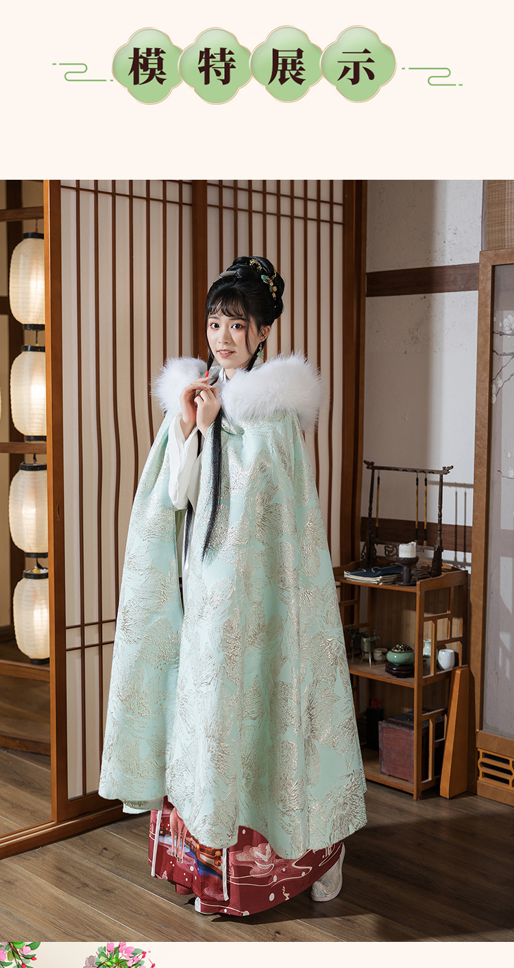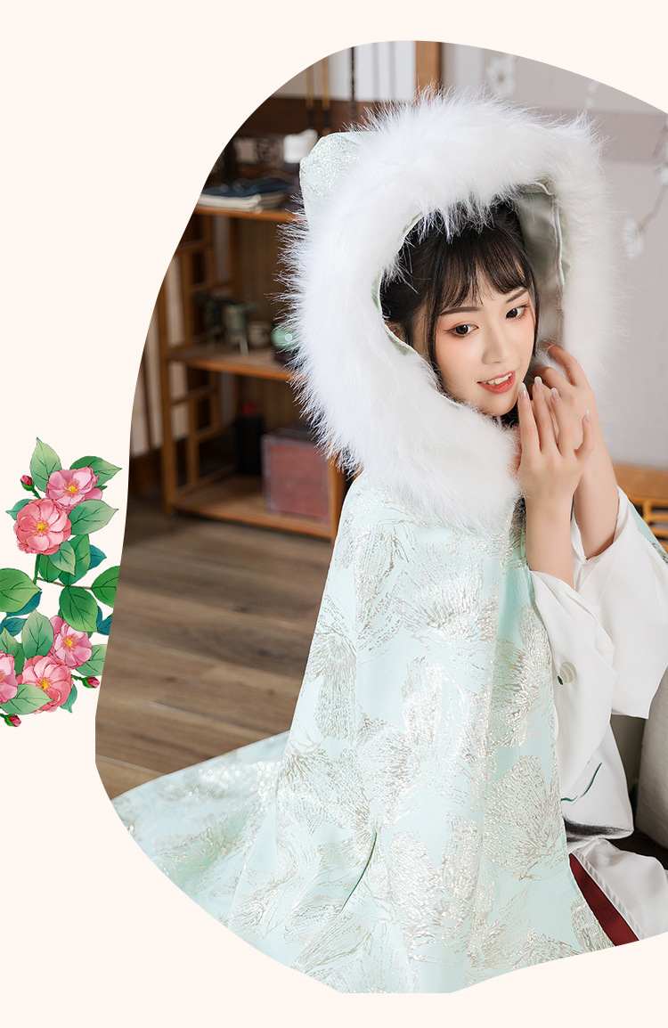 中国民族风复古淡绿织锦斗篷披风汉服女仙气加绒加厚中长款呢子大