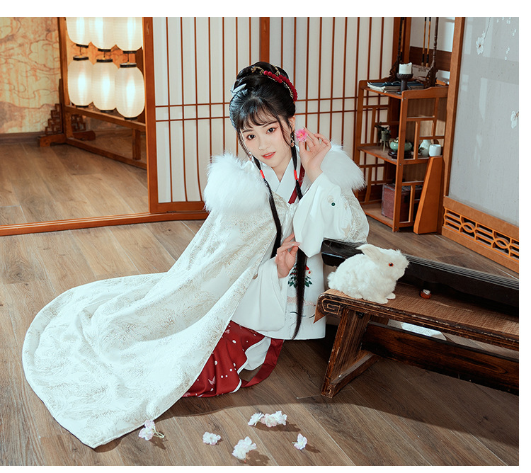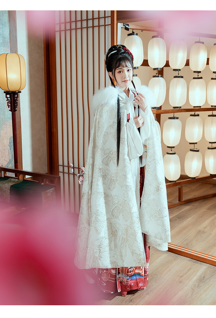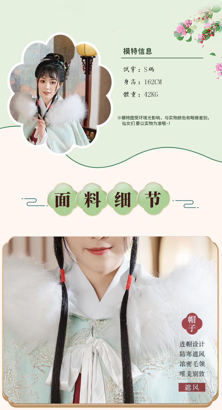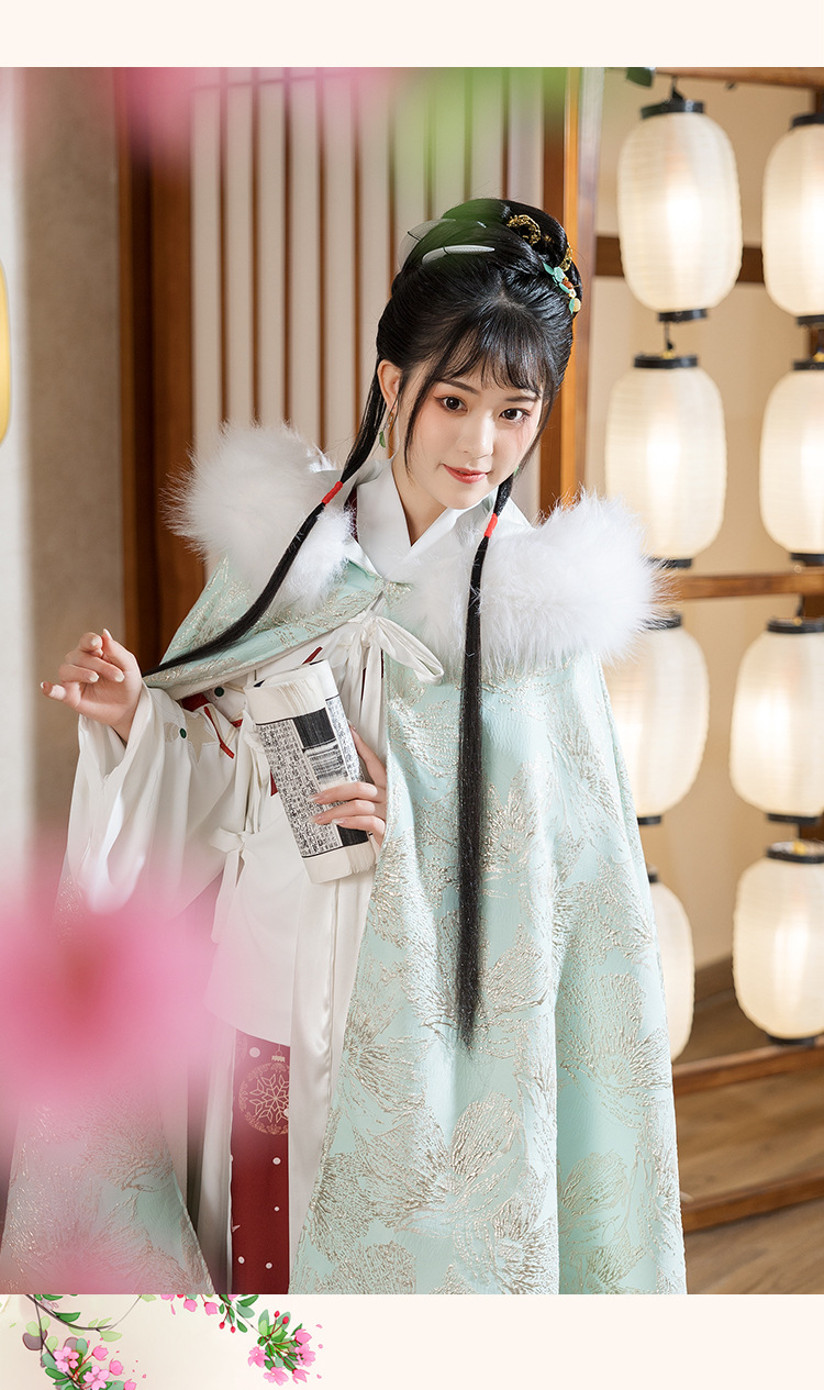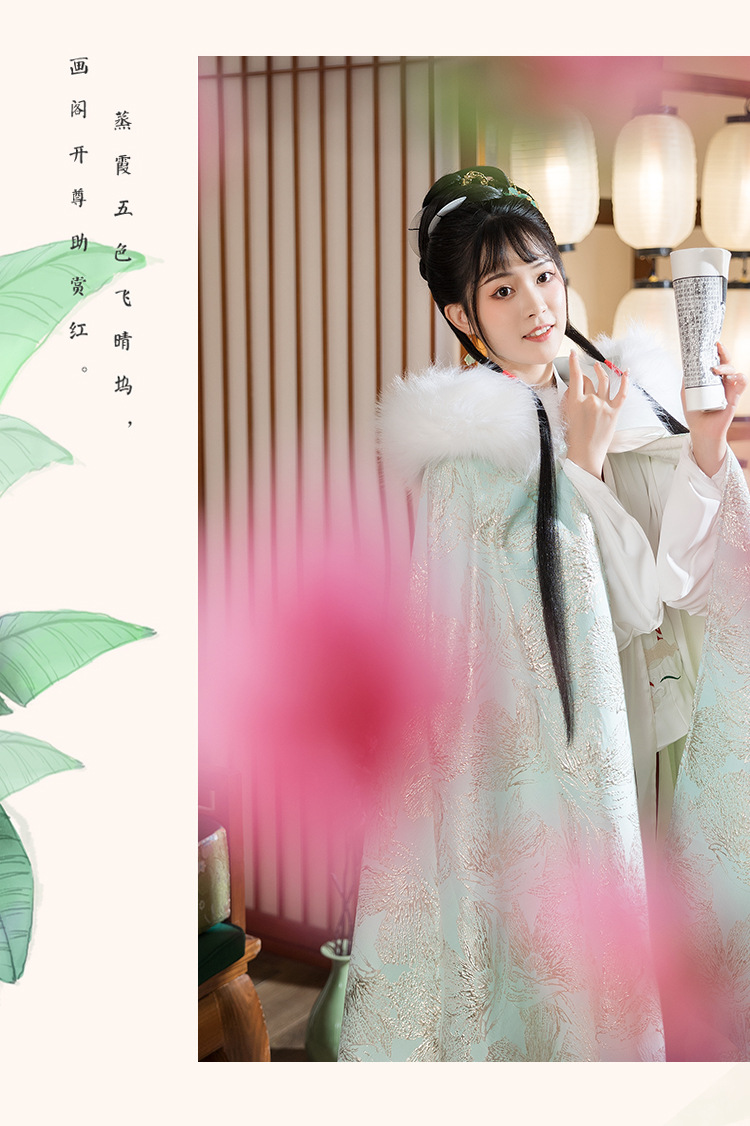 中国民族风复古淡绿织锦斗篷披风汉服女仙气加绒加厚中长款呢子大