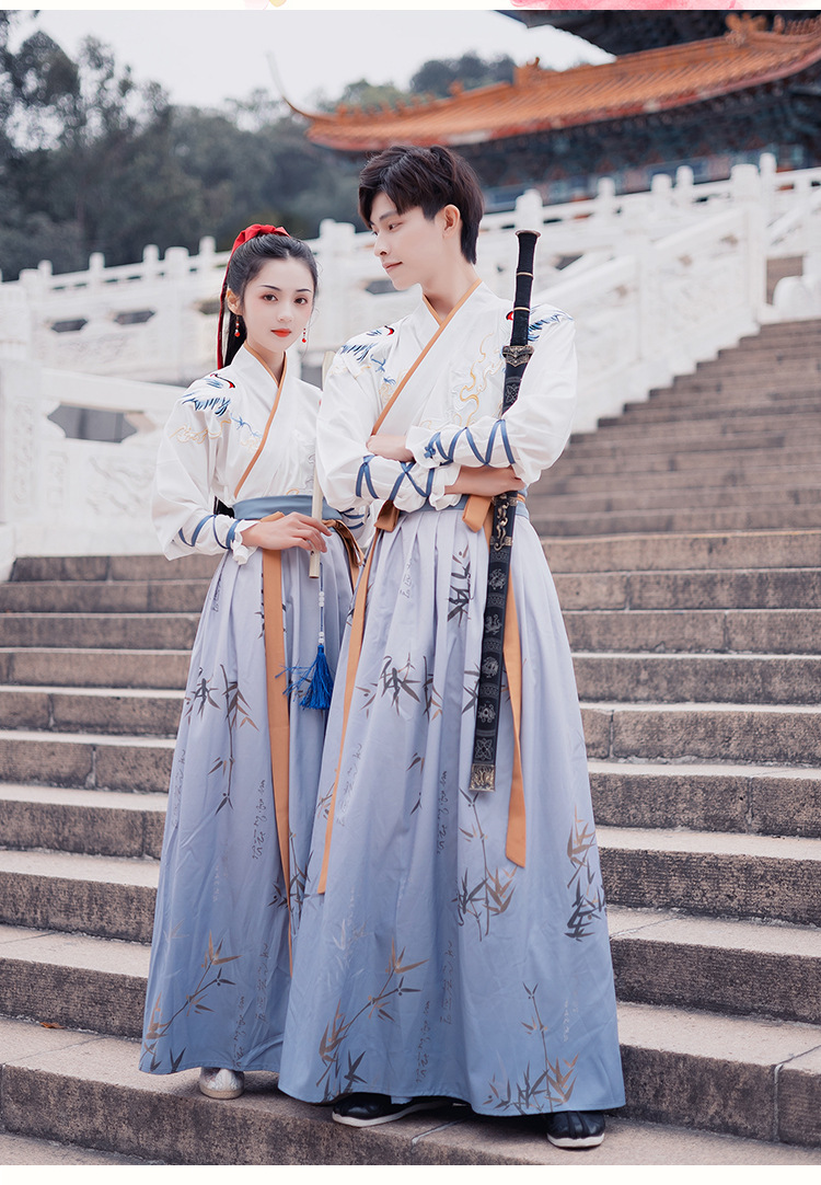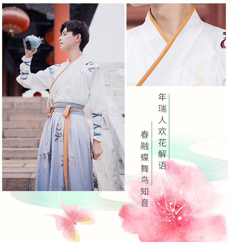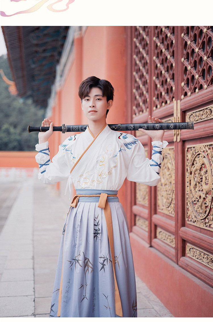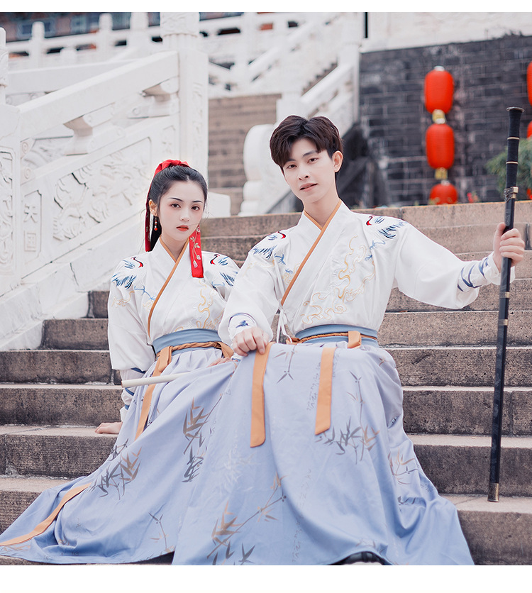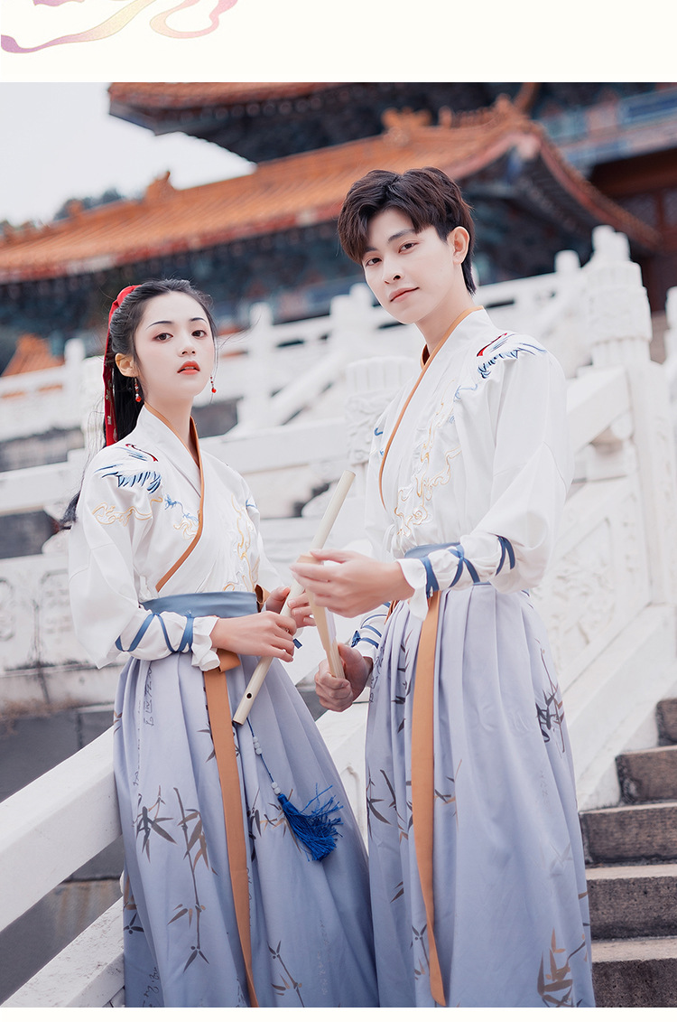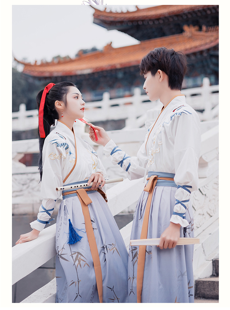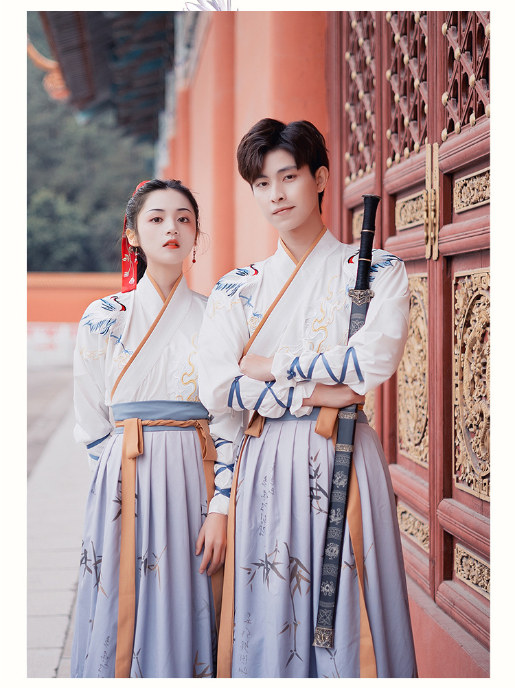中国风仙鹤绣花传统交领汉服男女套装古装CP情侣套装汉元素二件套