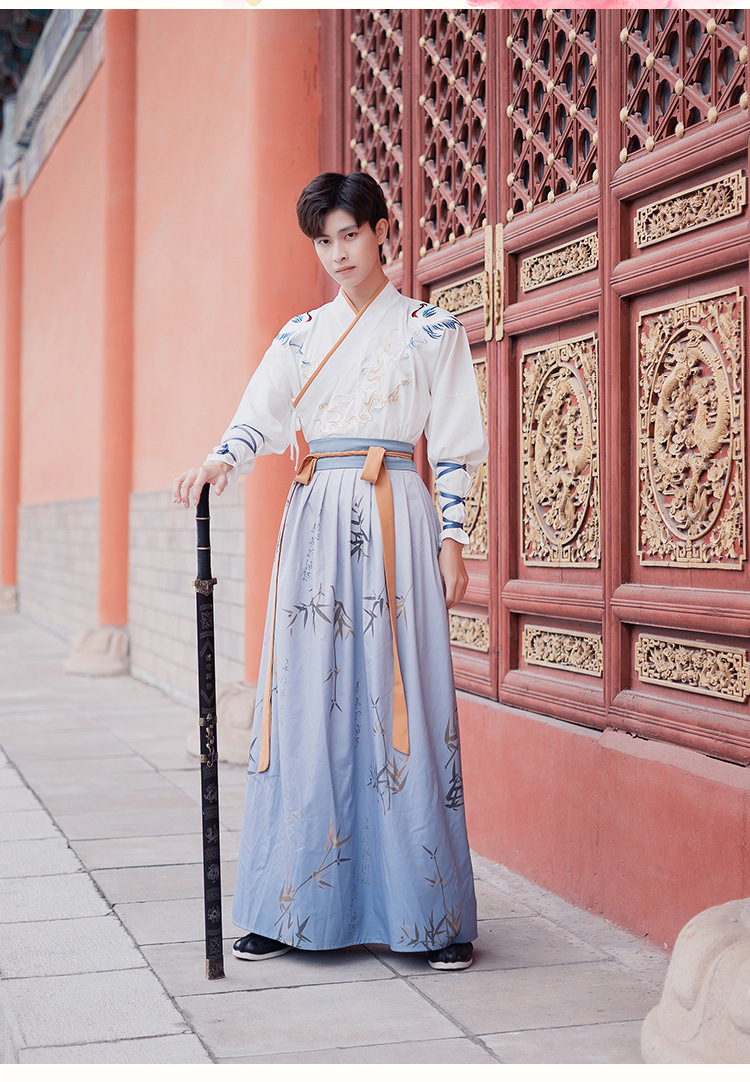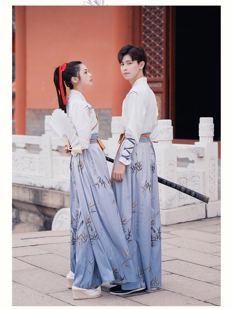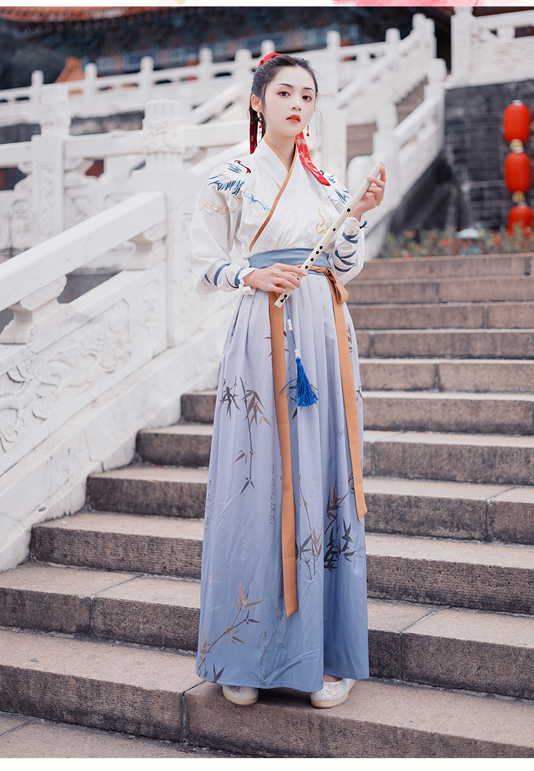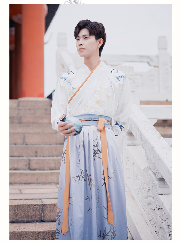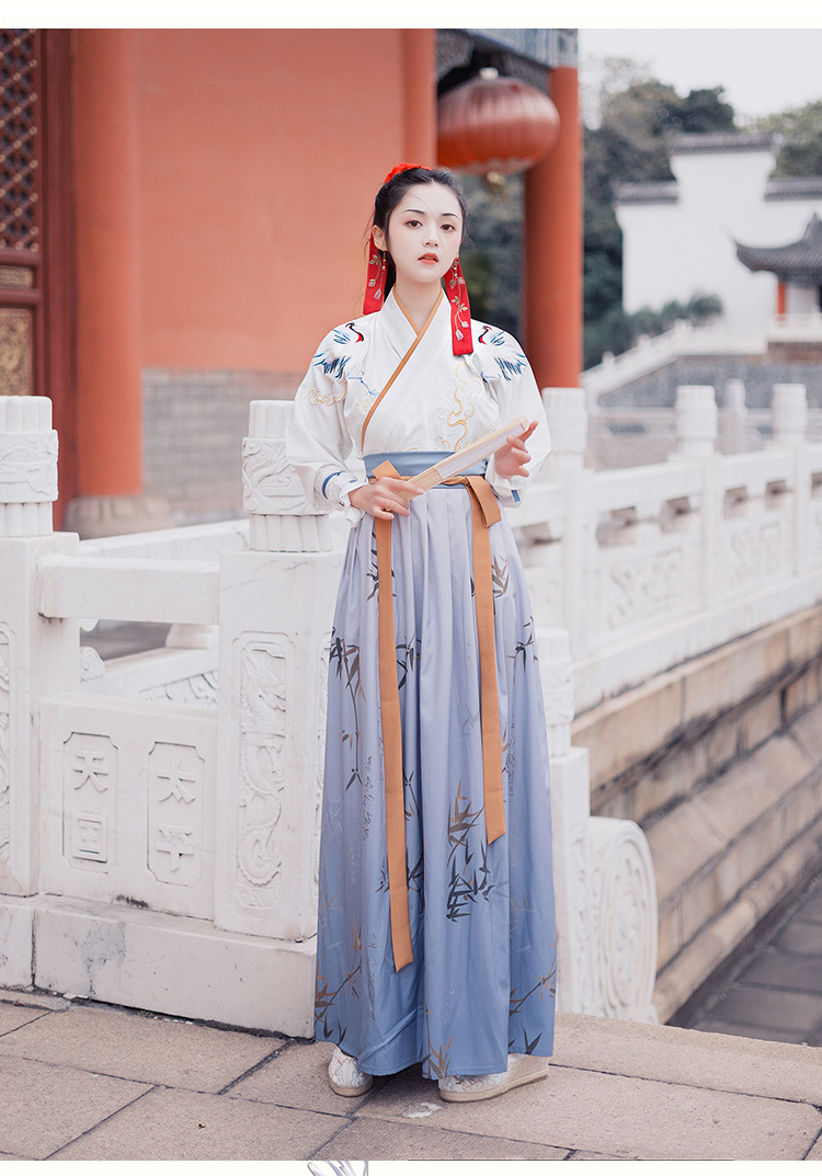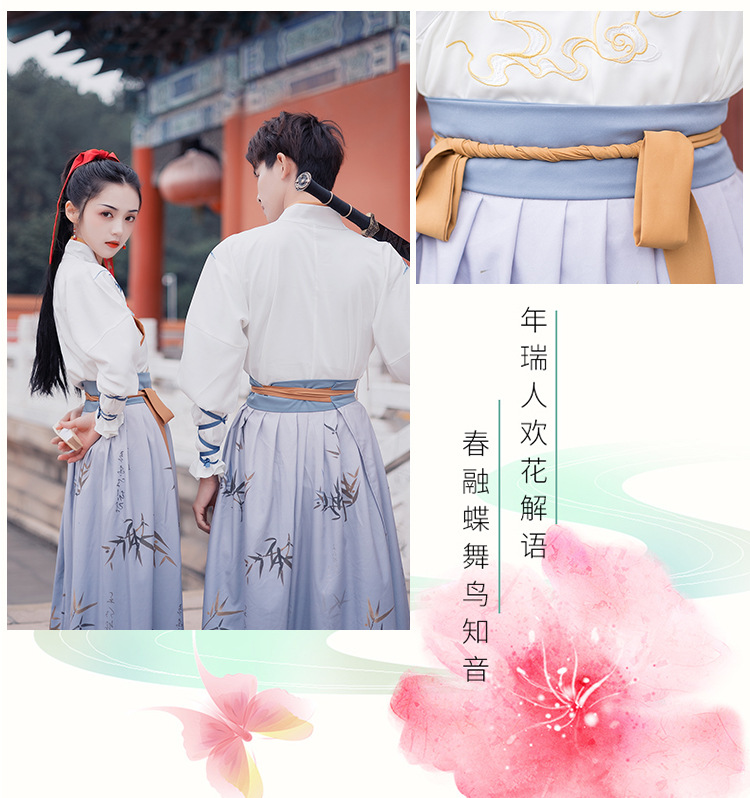 中国风仙鹤绣花传统交领汉服男女套装古装CP情侣套装汉元素二件套