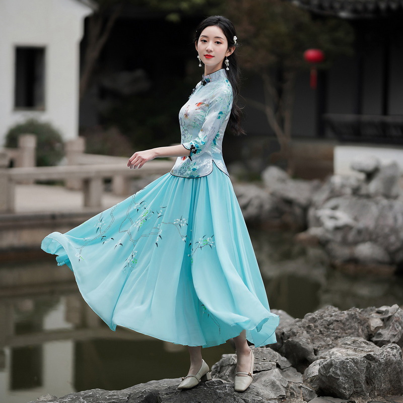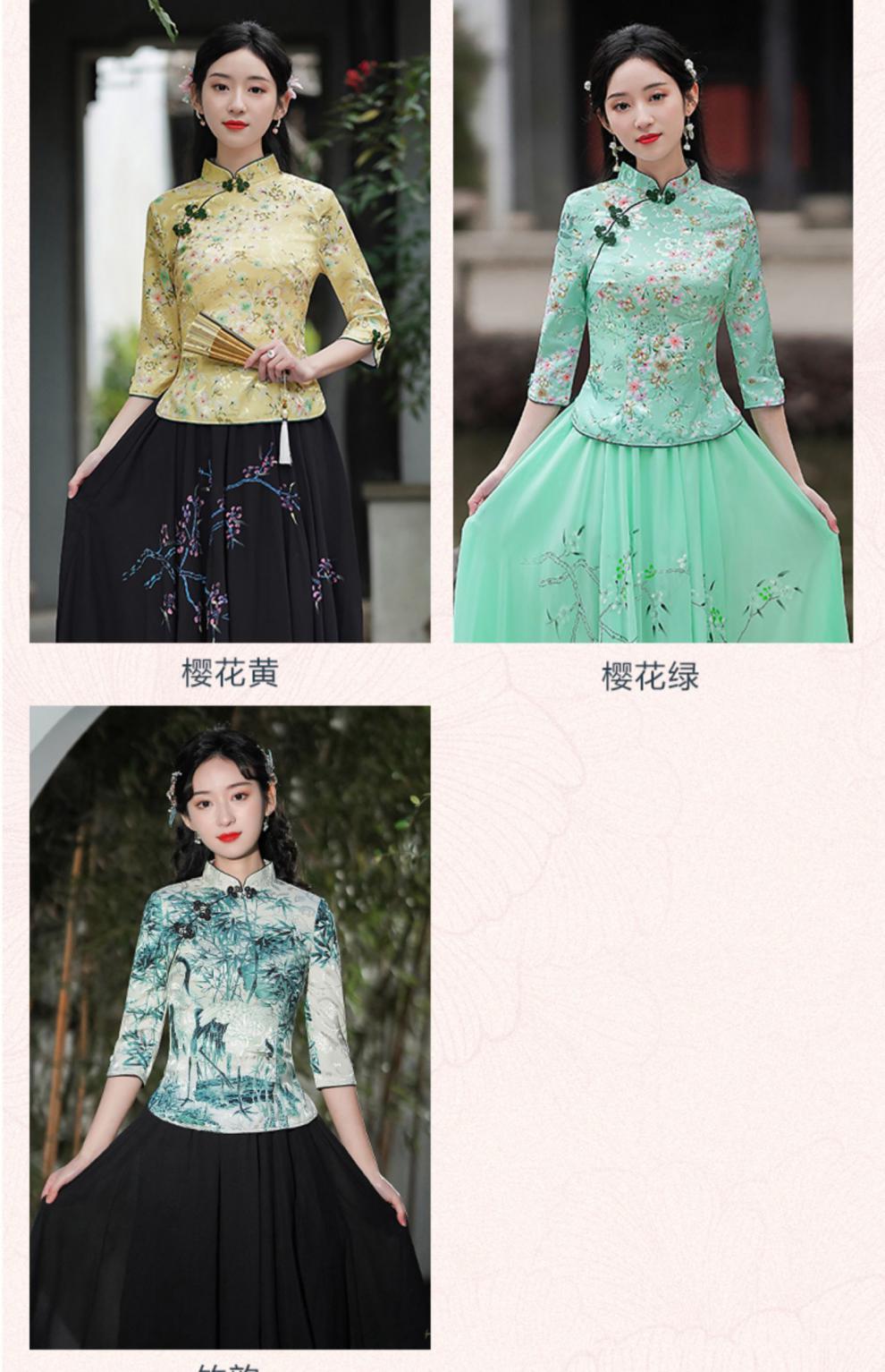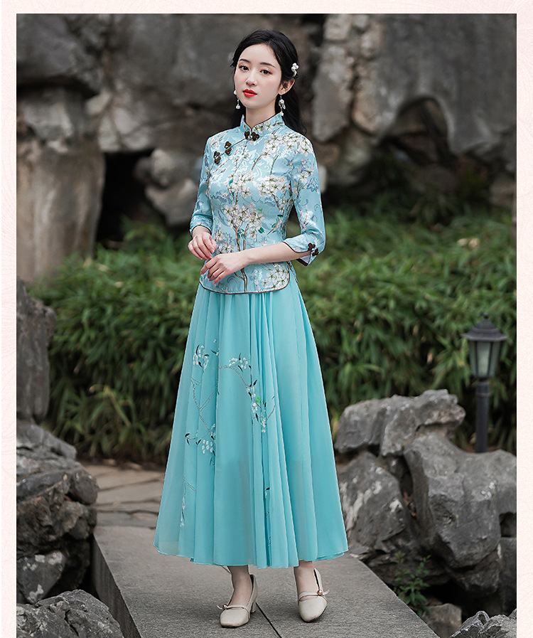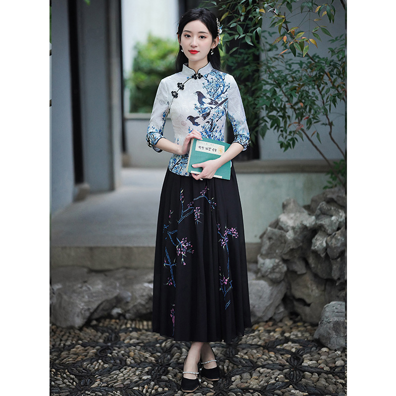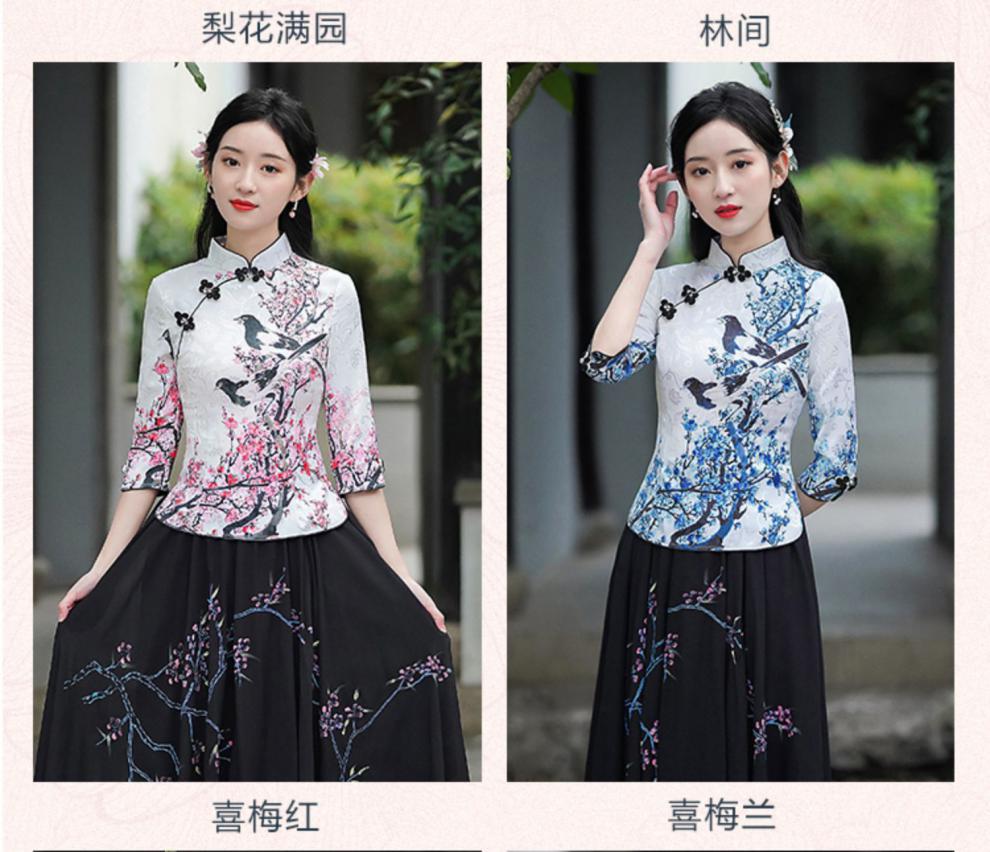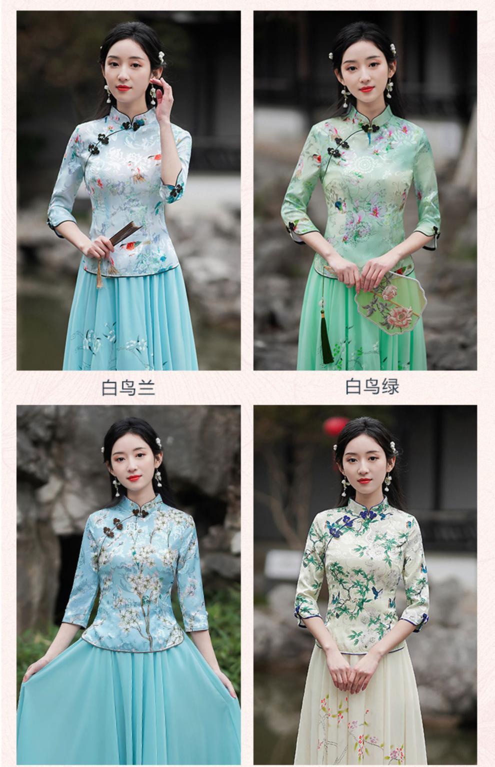 中国风大码女装复古优雅日常中式唐装立领上衣民国风旗袍裙套装女