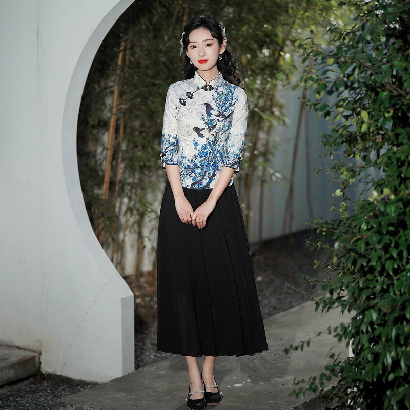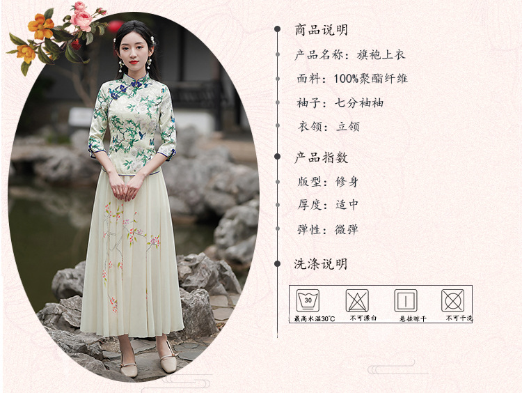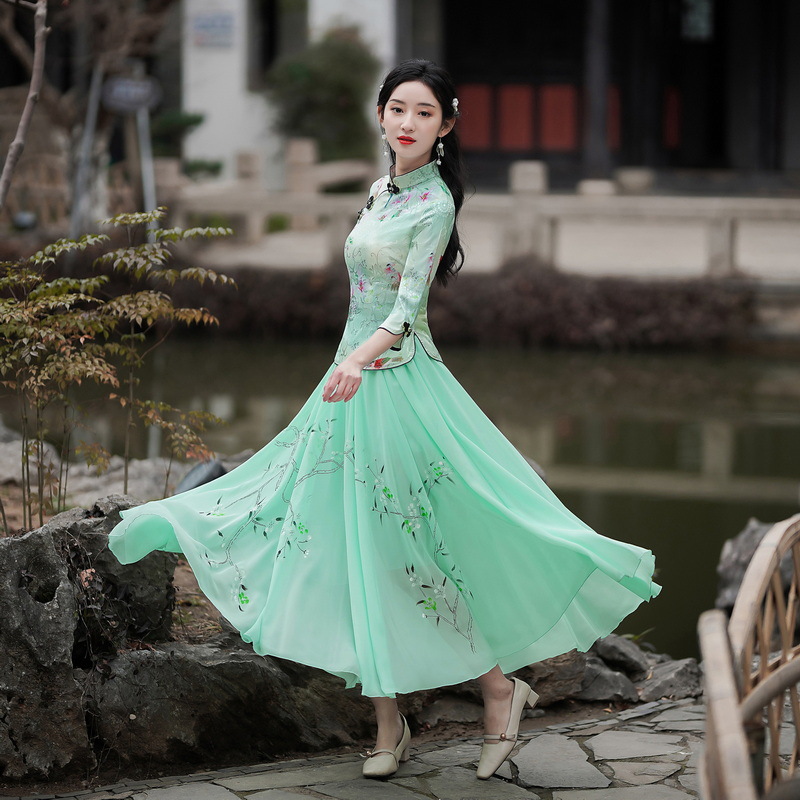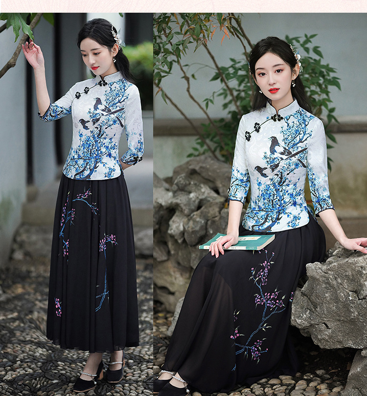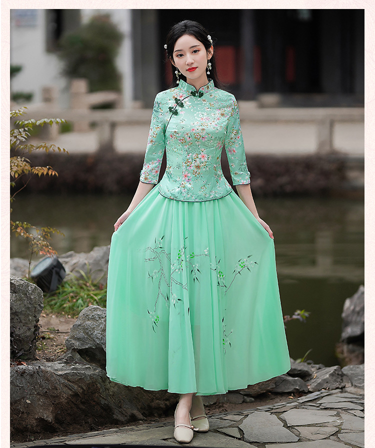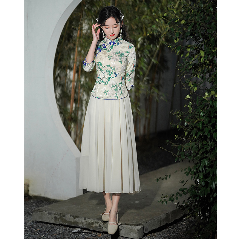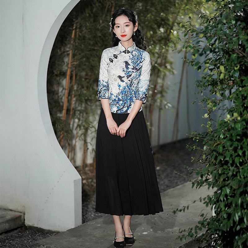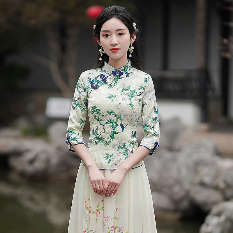 中国风大码女装复古优雅日常中式唐装立领上衣民国风旗袍裙套装女