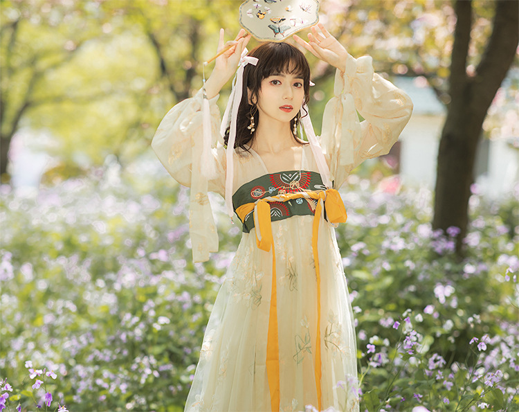 传统日常女生淡雅仙气汉服中国风连衣裙汉元素刺绣连衣裙国风套装