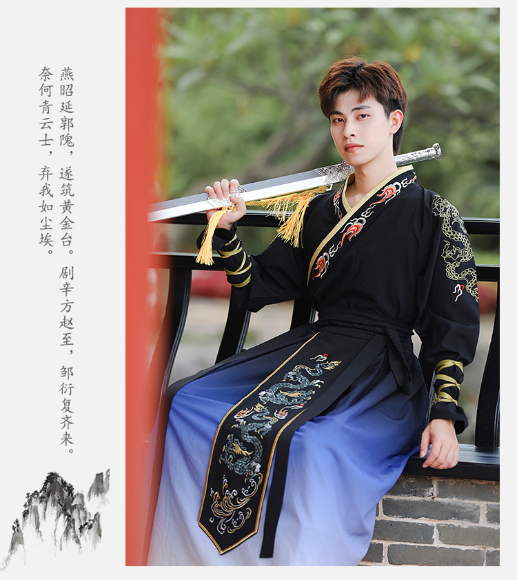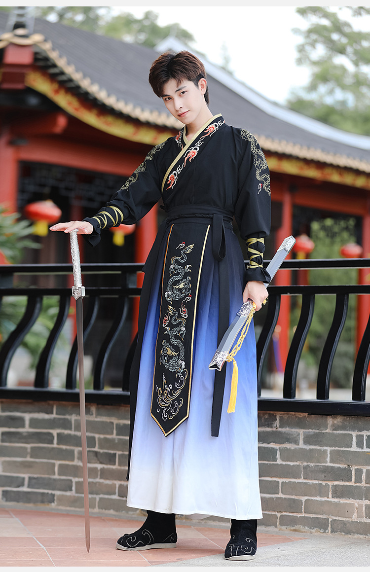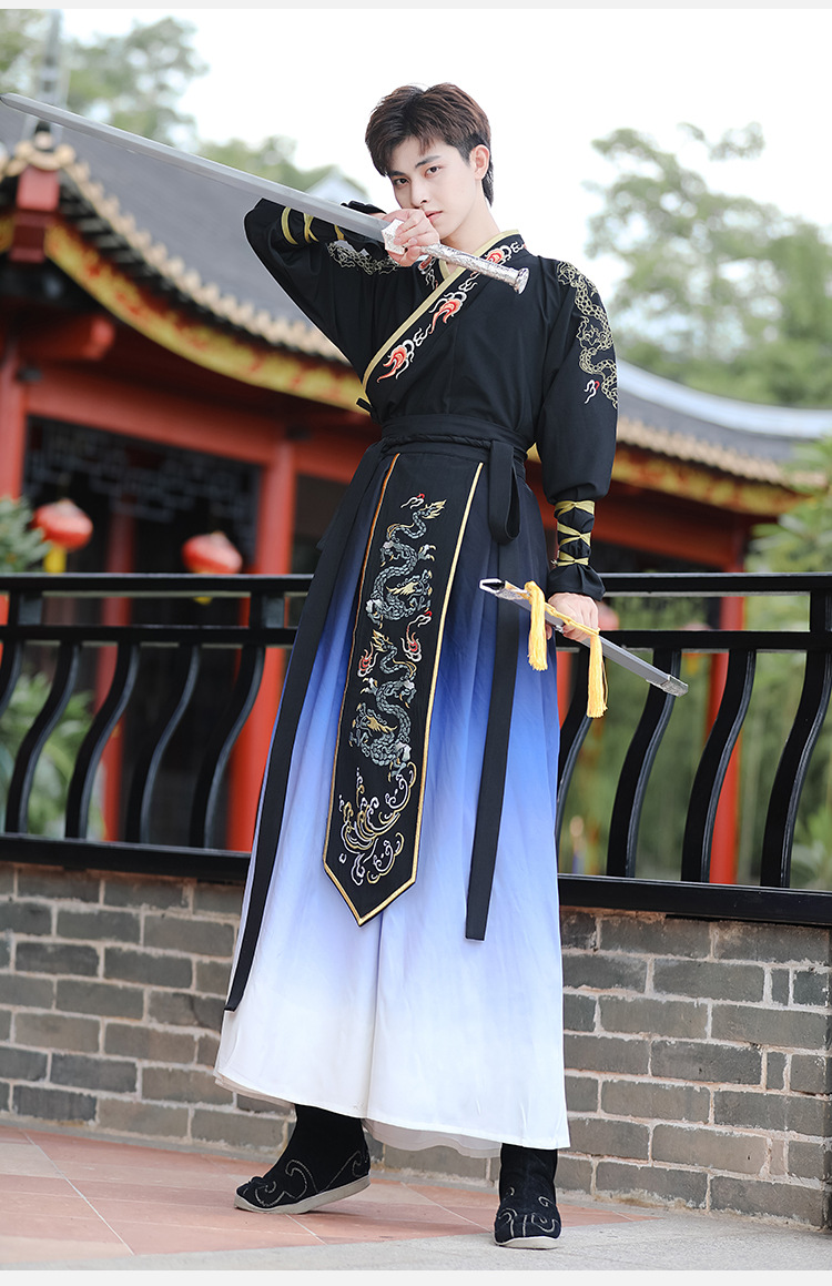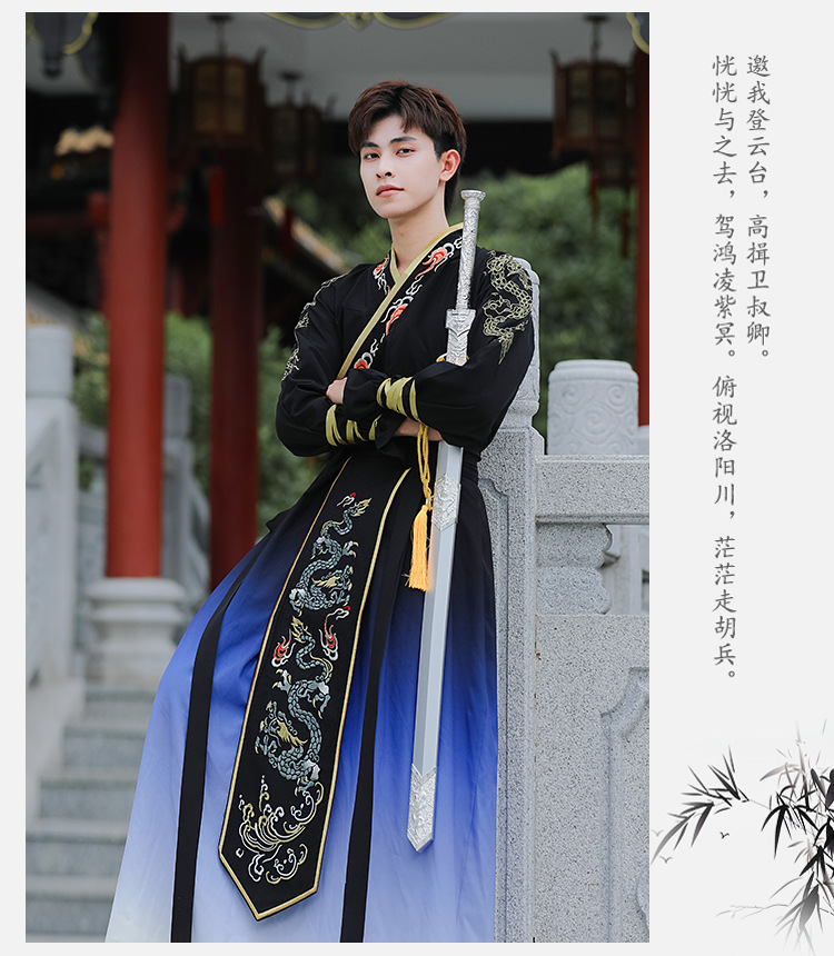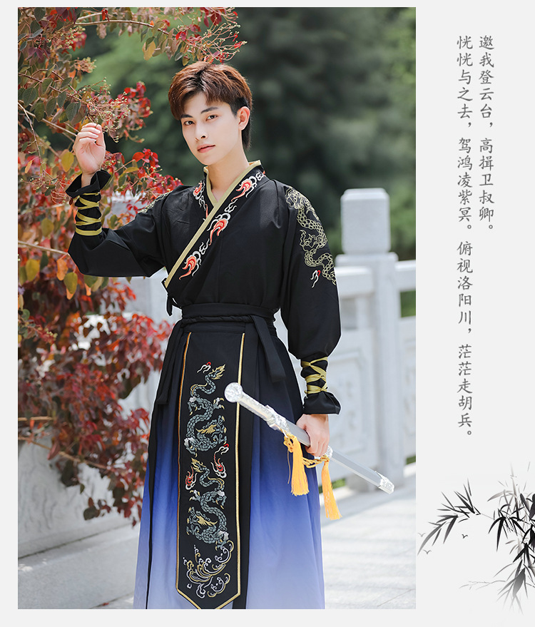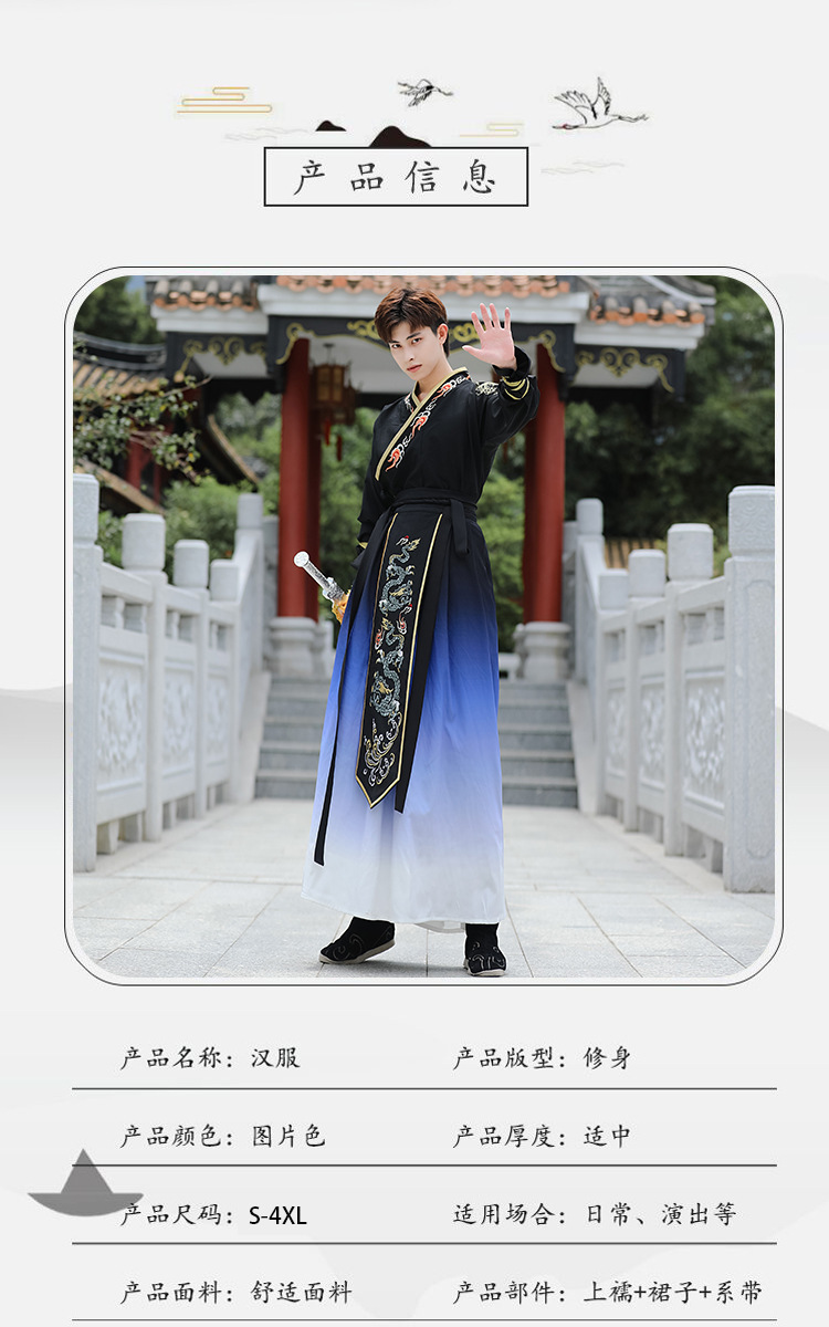 中国风秋季新款汉服大码套装男士帅气古装武侠学生日常表演服班服