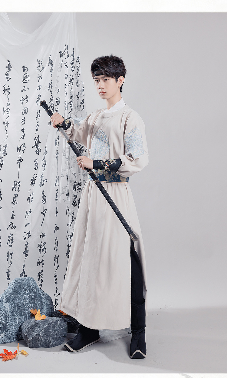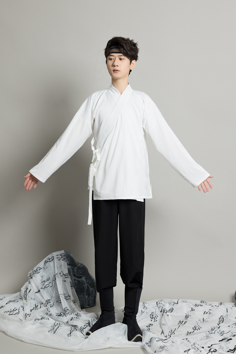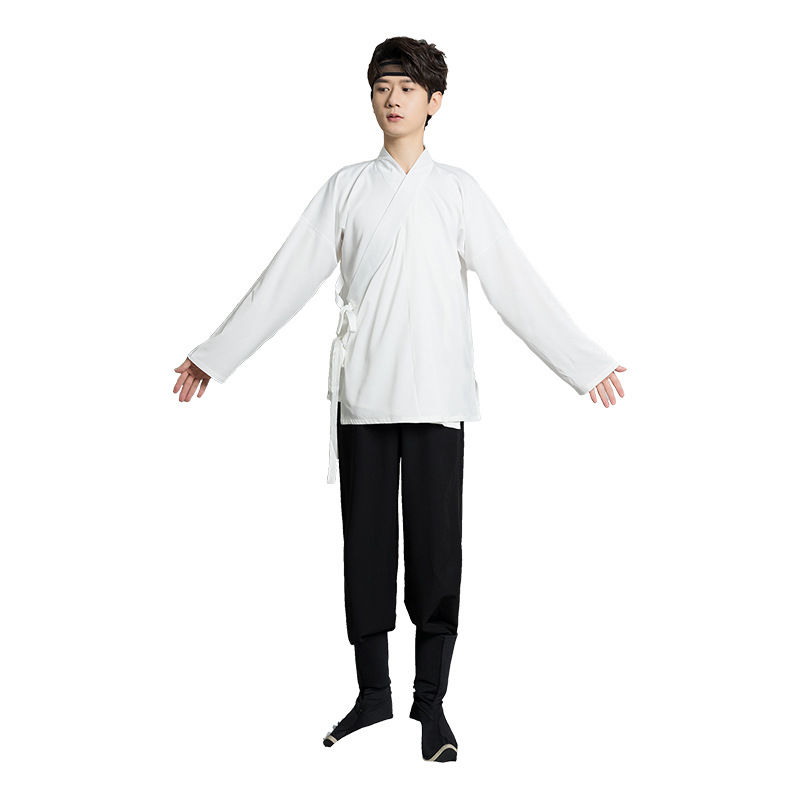 中国风汉服内搭打底交领白色上衣松紧黑色长裤套装打底衫套装男女