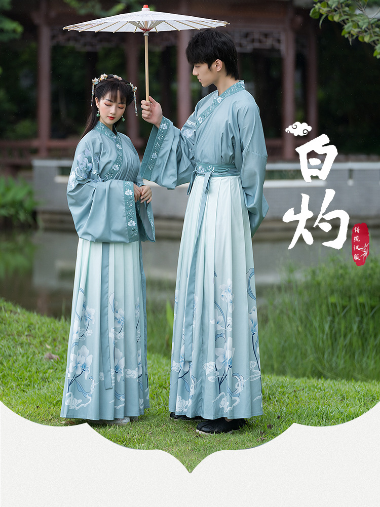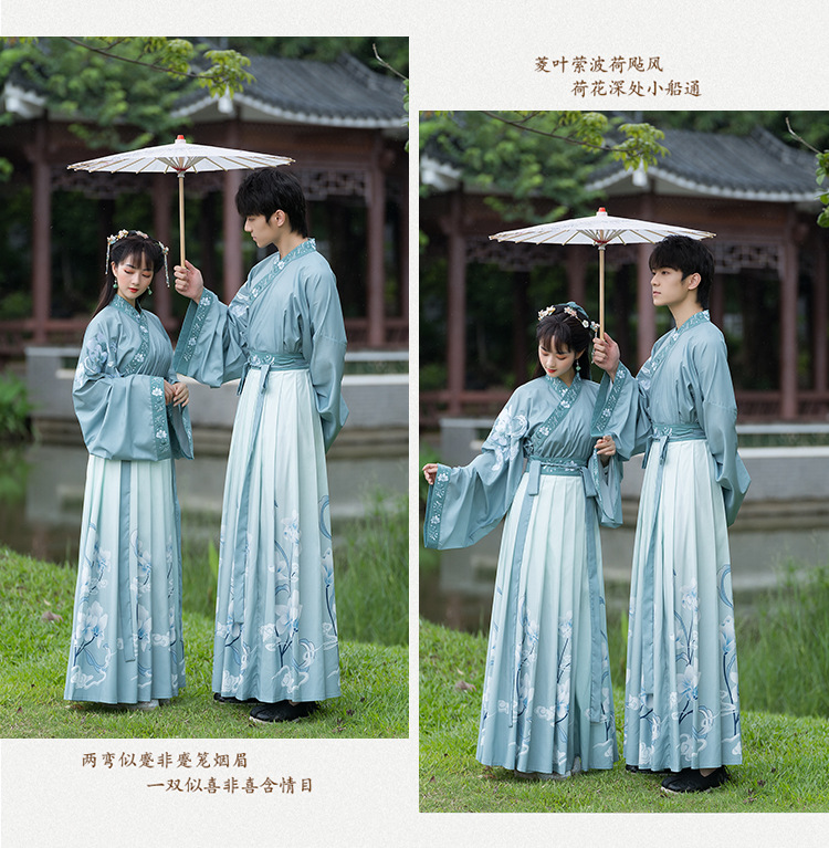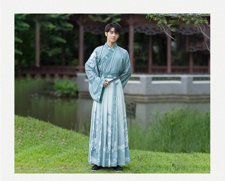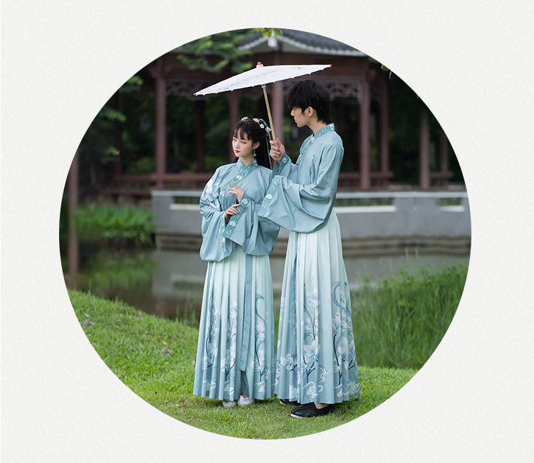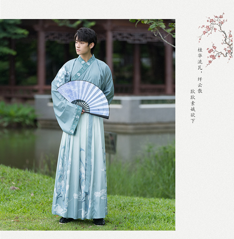 中国风流花汉服古风男女绣花渐变淡雅飘逸晋制交领4.5米摆大袖衫