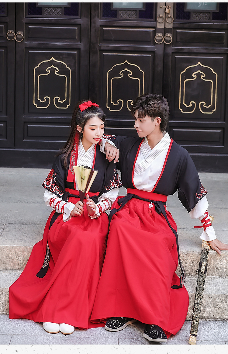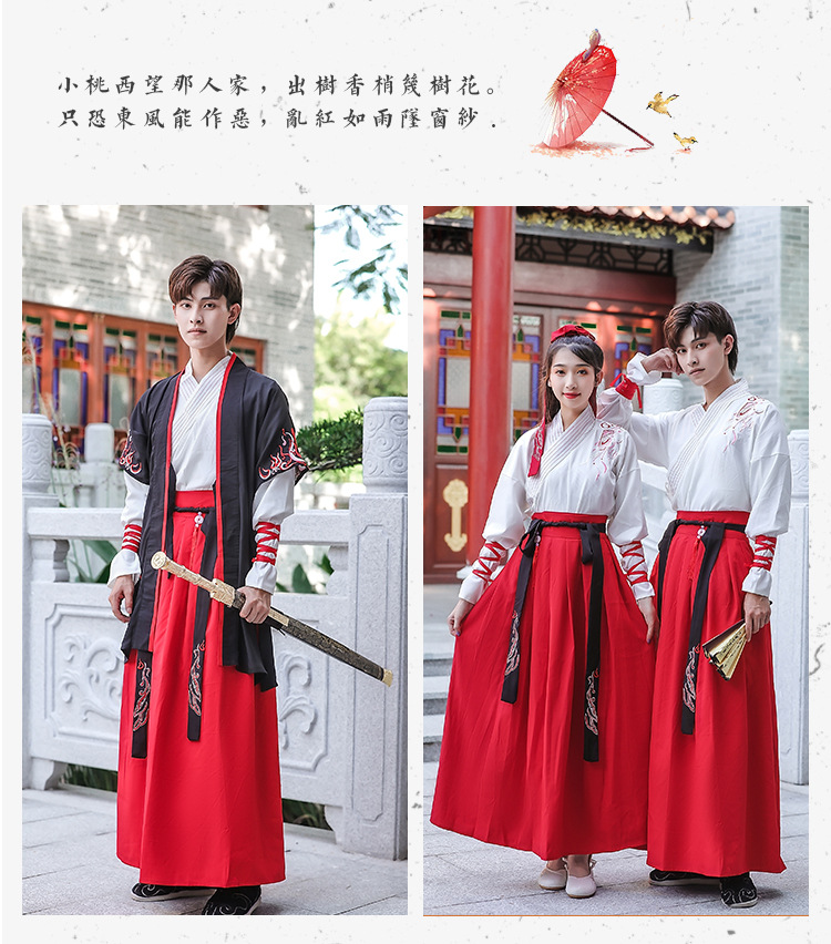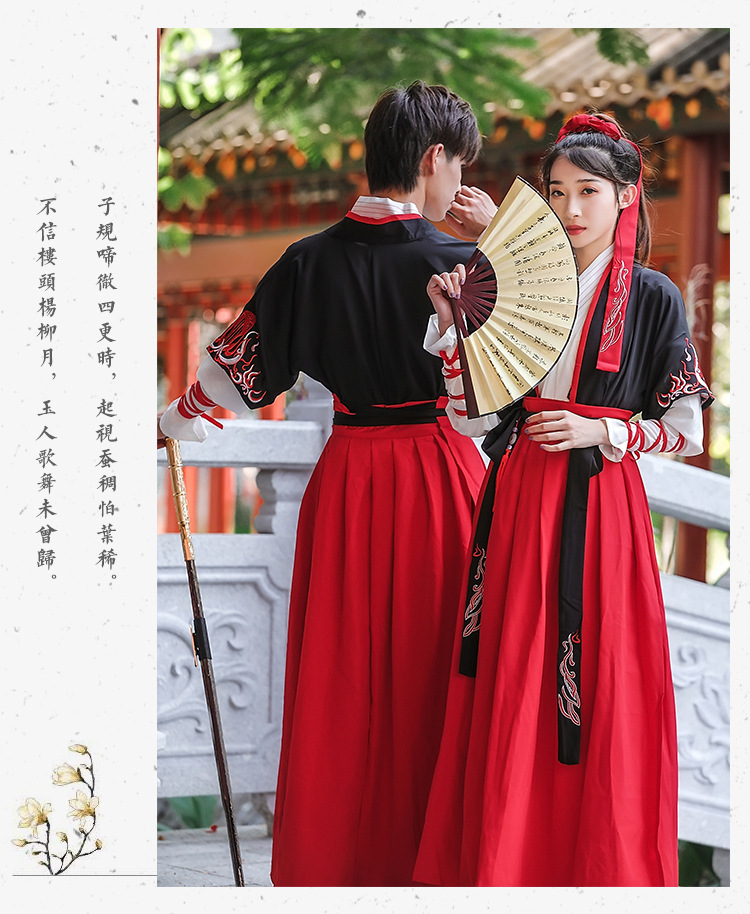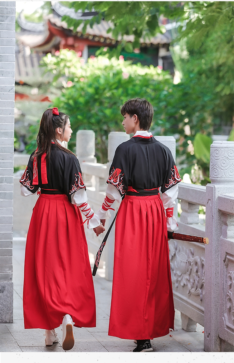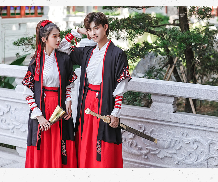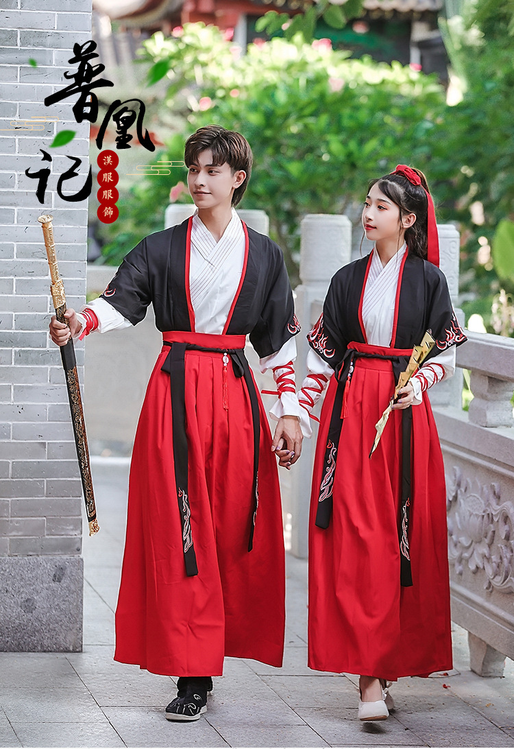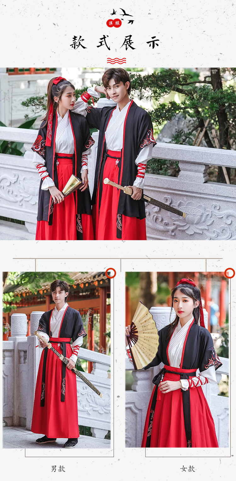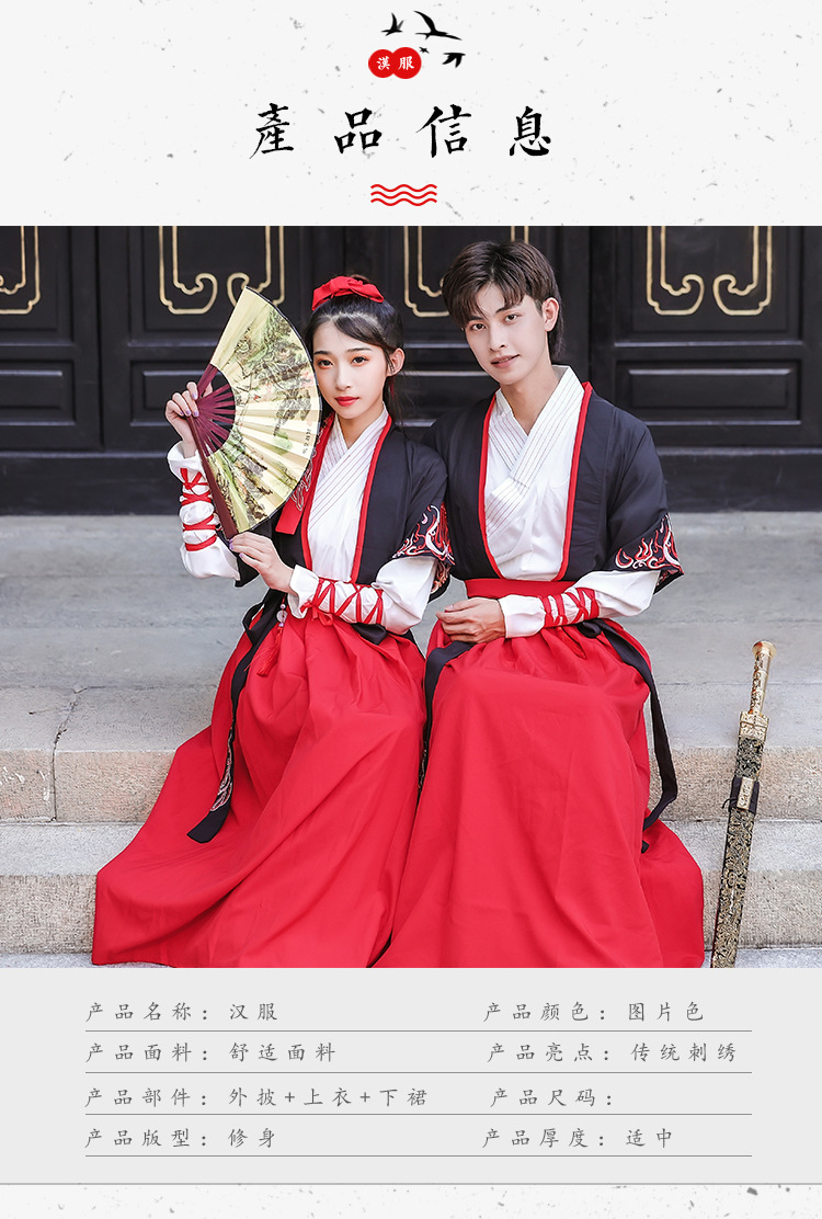 中国风大码古装火云半臂开衫绣花交领长袖汉服三件套男女情侣CP装