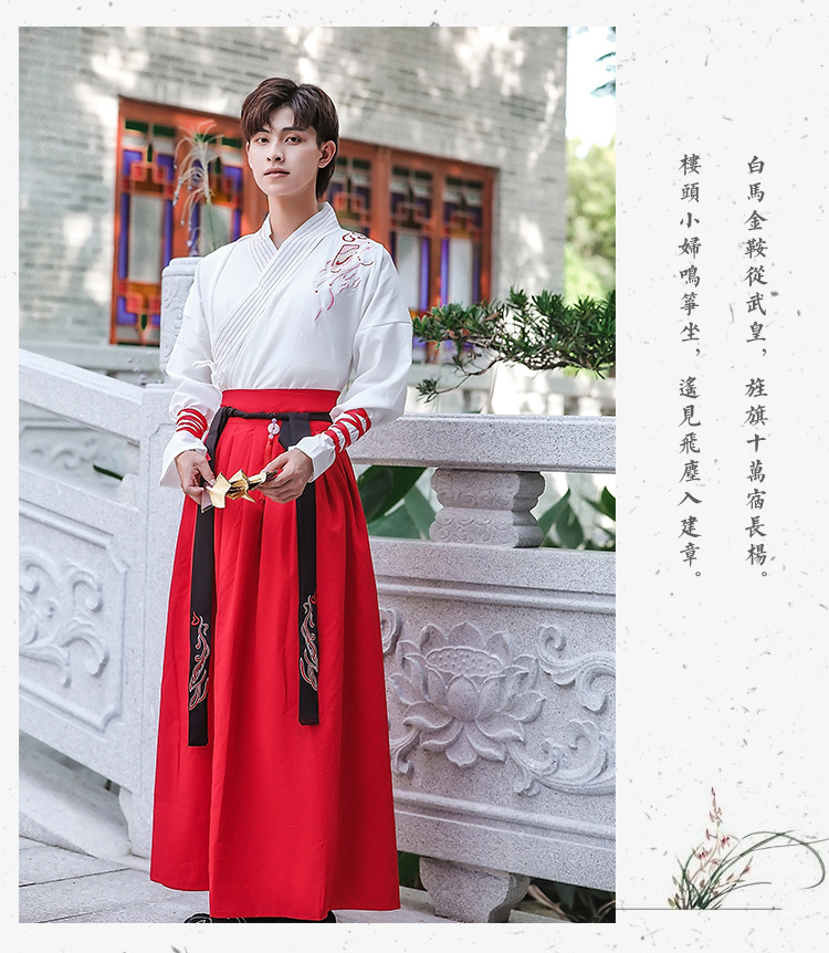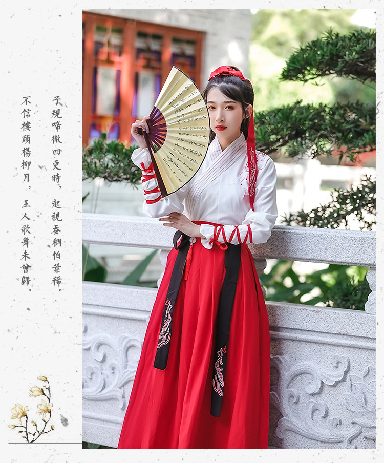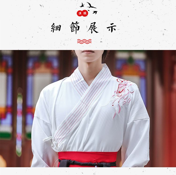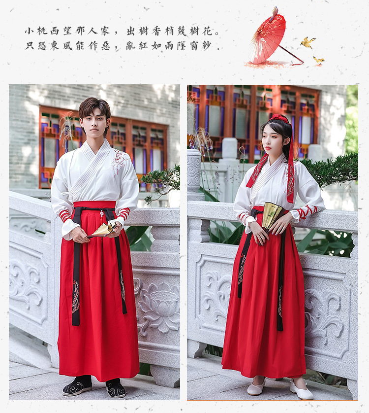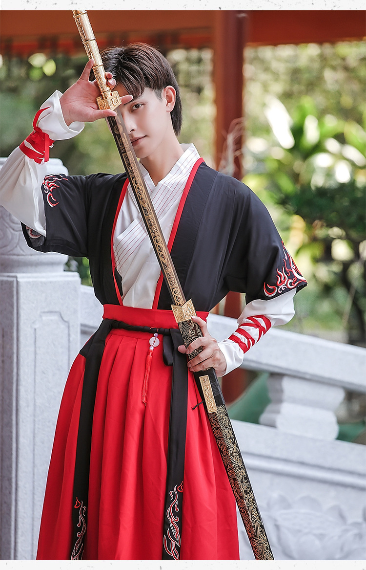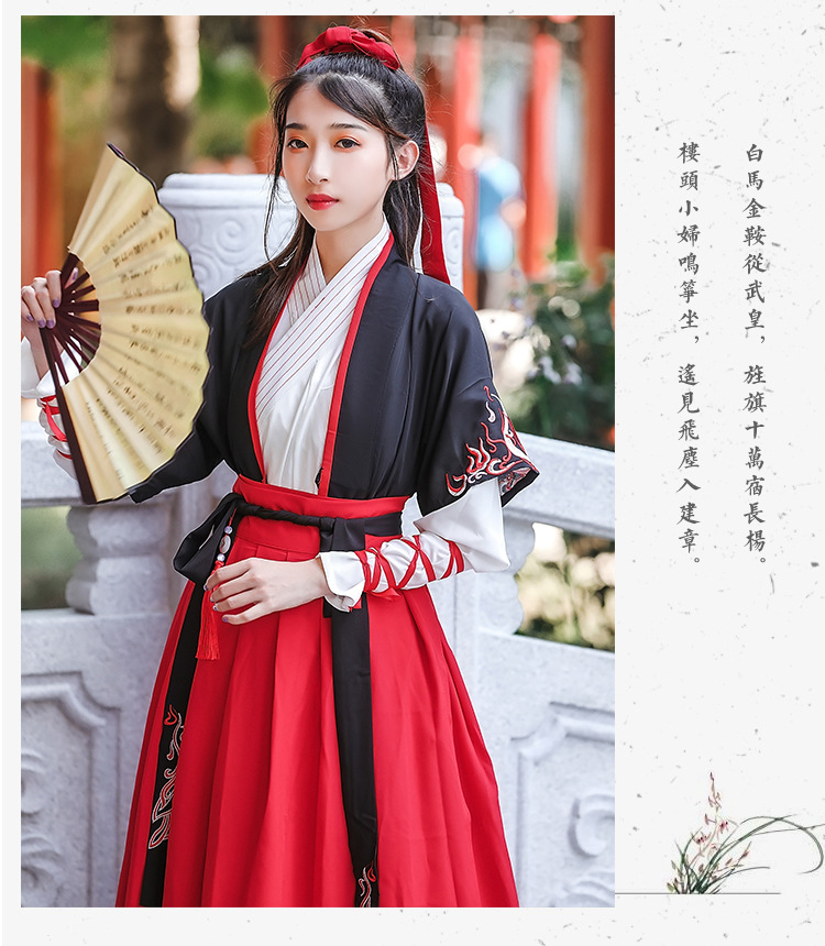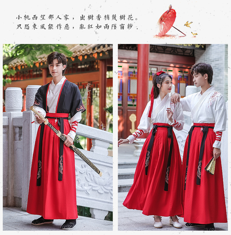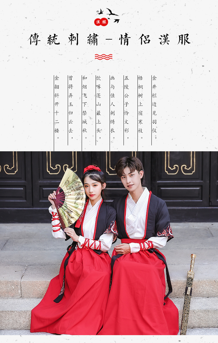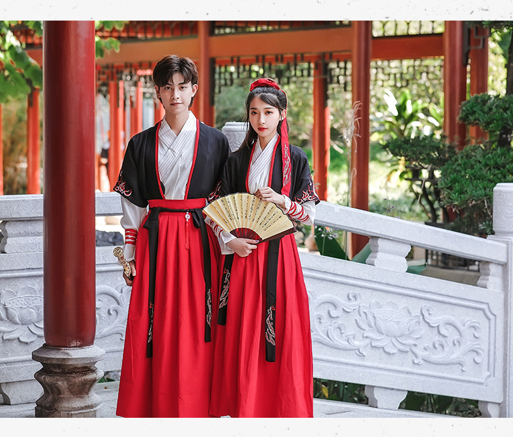 中国风大码古装火云半臂开衫绣花交领长袖汉服三件套男女情侣CP装