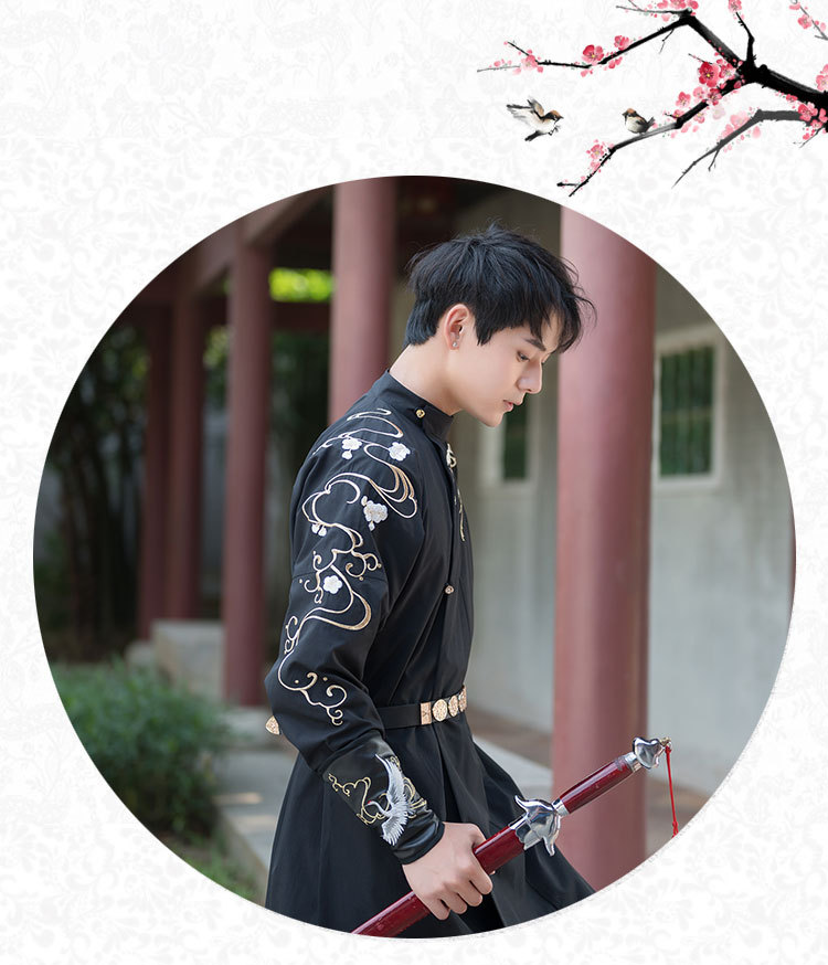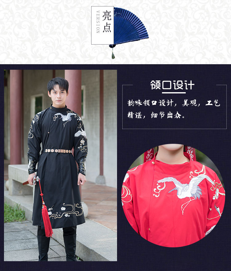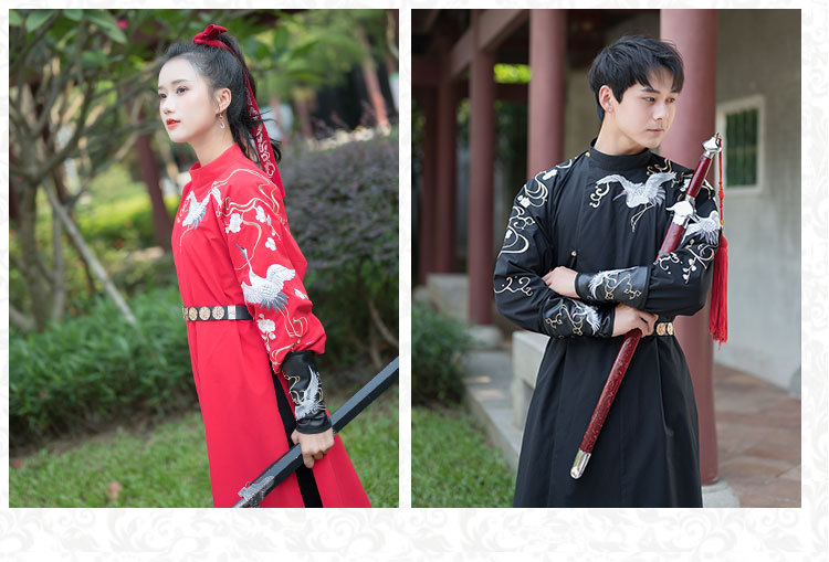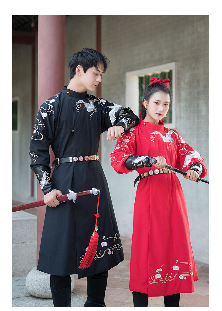 锦衣卫仙鹤圆领袍绣花汉服日常情侣CP装搭配革带男女古装侠侣风秋