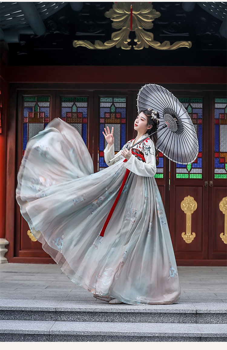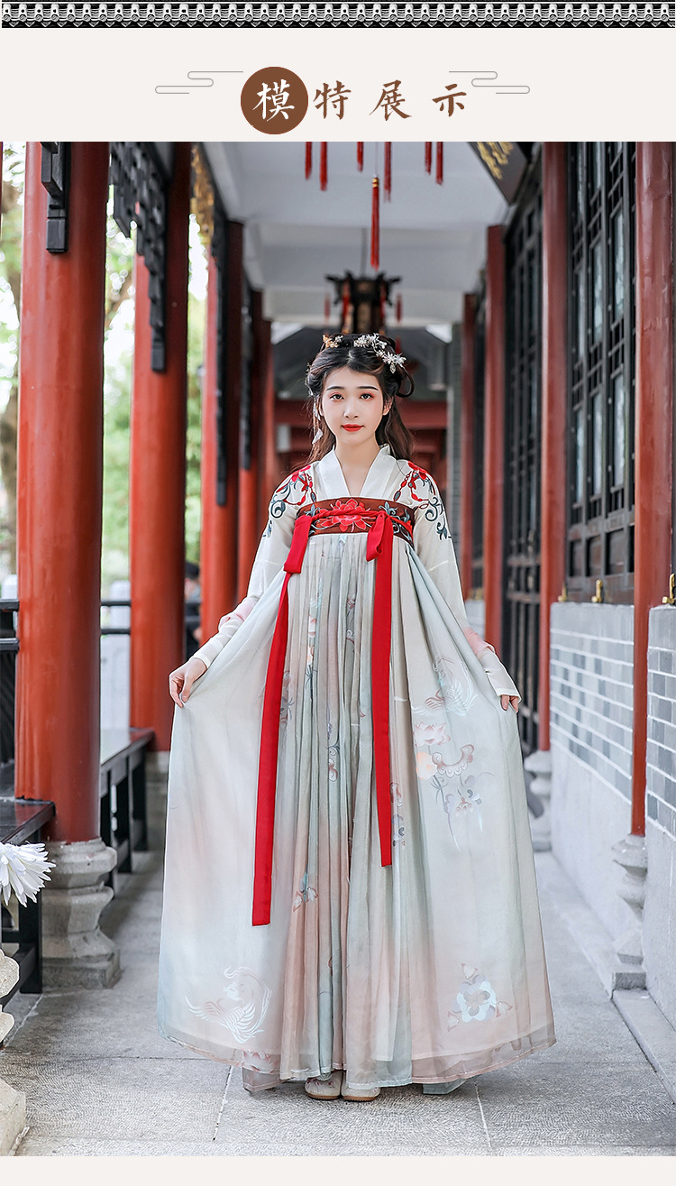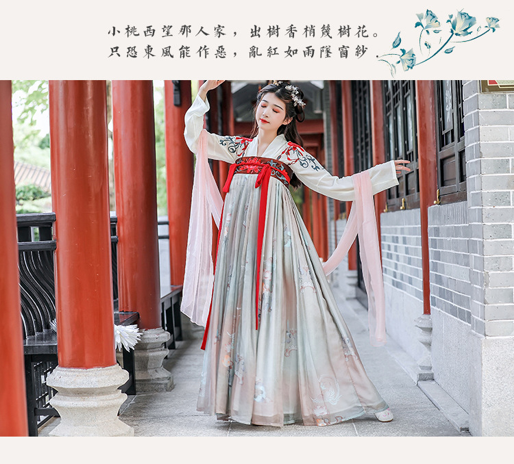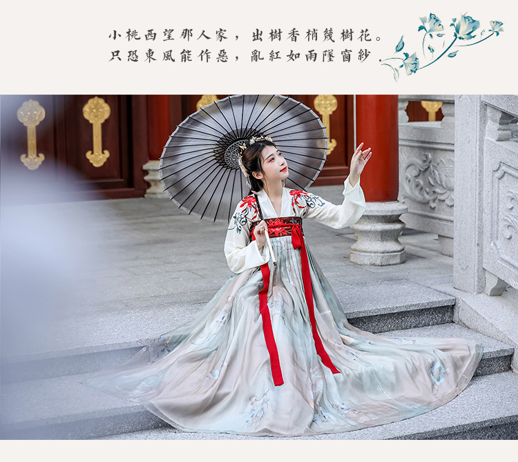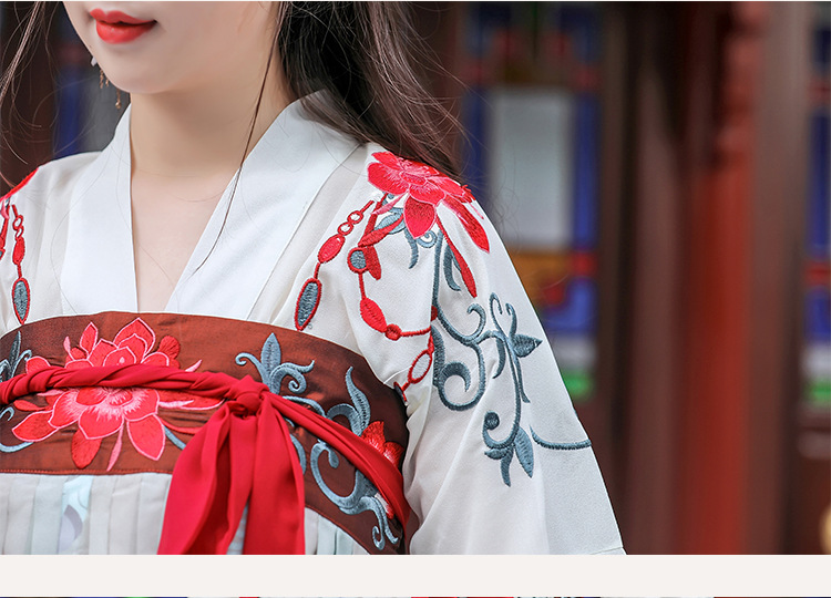 改良汉服女中国风女装对襟衫印花刺绣花大摆齐胸襦裙舞蹈演出春夏