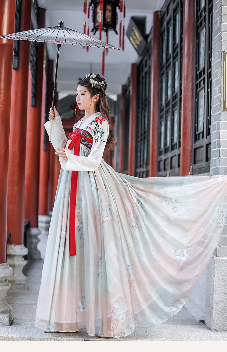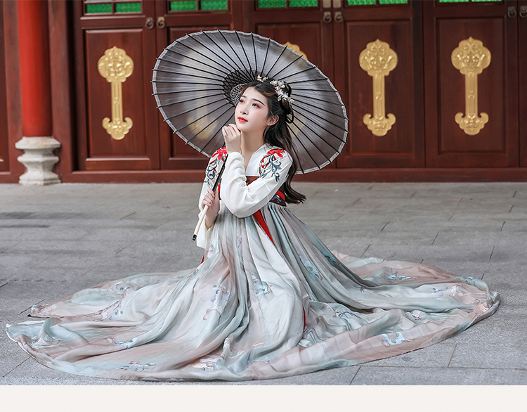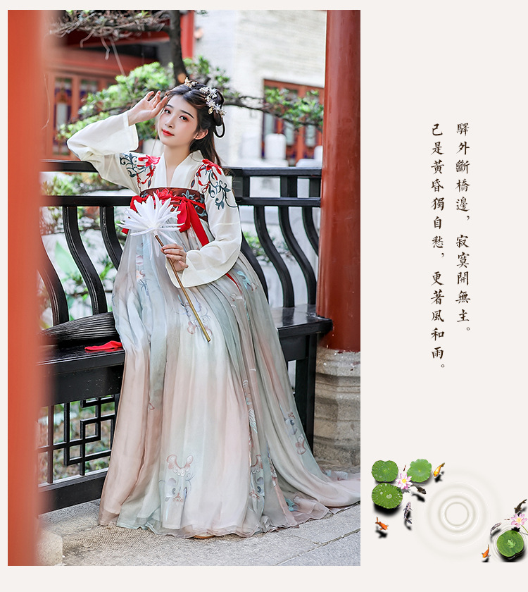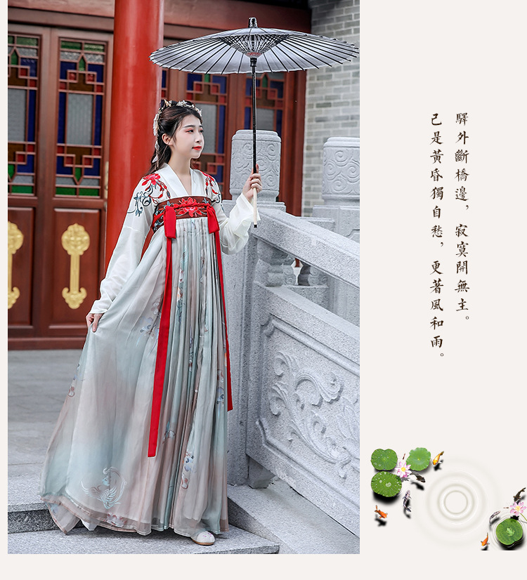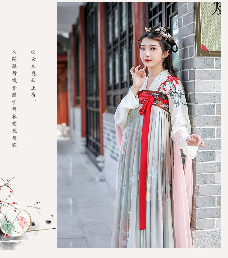 改良汉服女中国风女装对襟衫印花刺绣花大摆齐胸襦裙舞蹈演出春夏