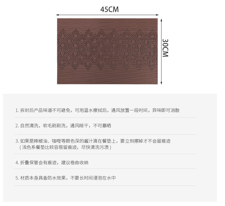 特斯林pvc餐垫隔热餐桌垫防水防油酒店跨境亚马逊菱形提花西餐垫