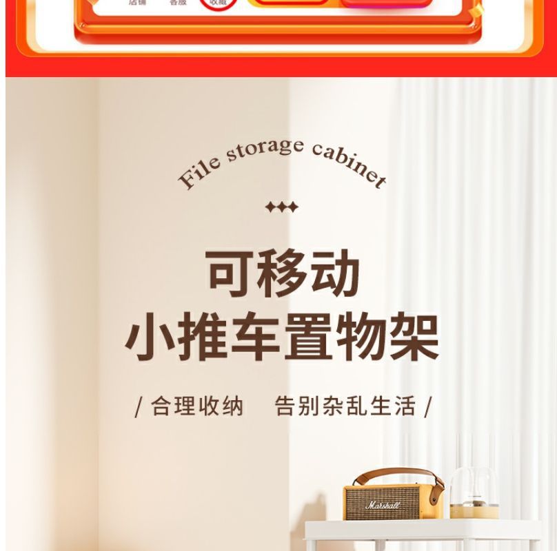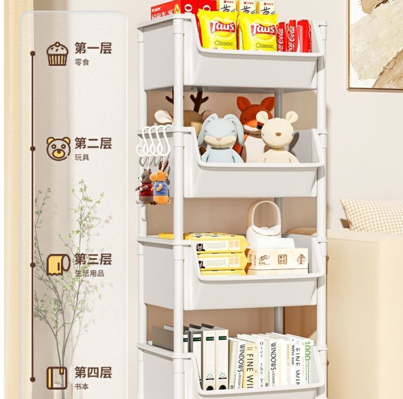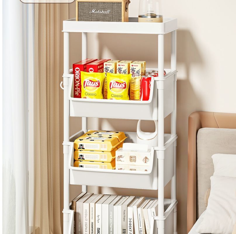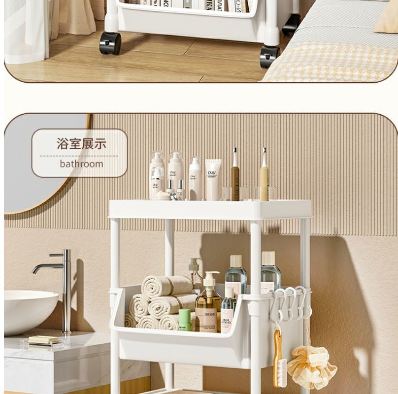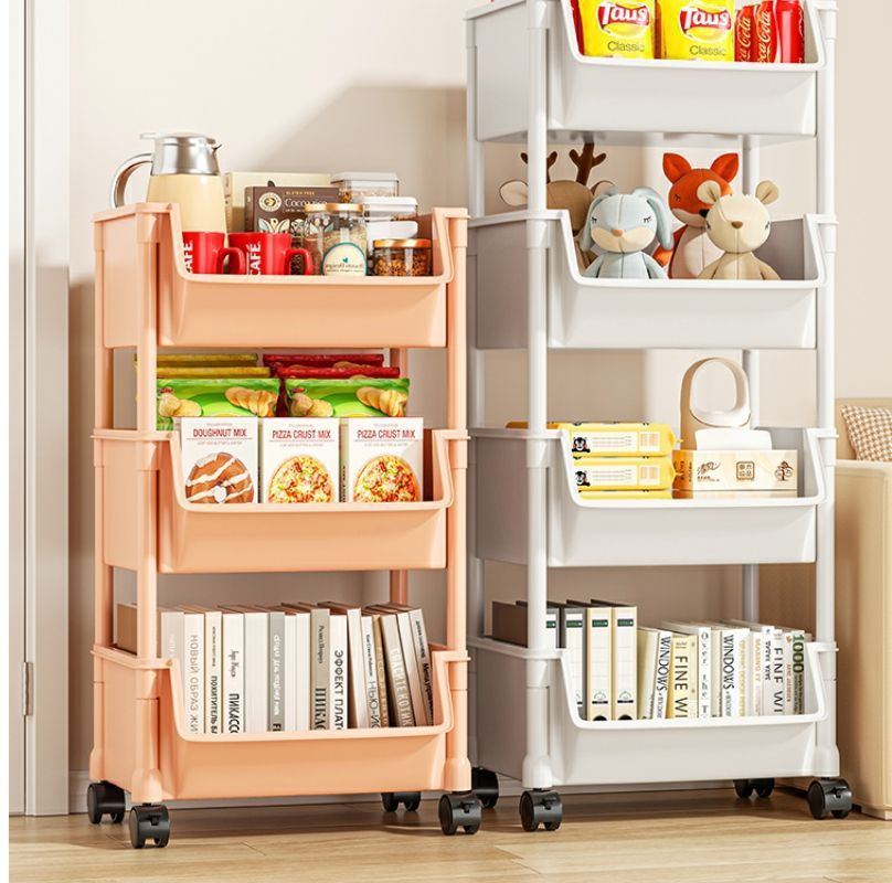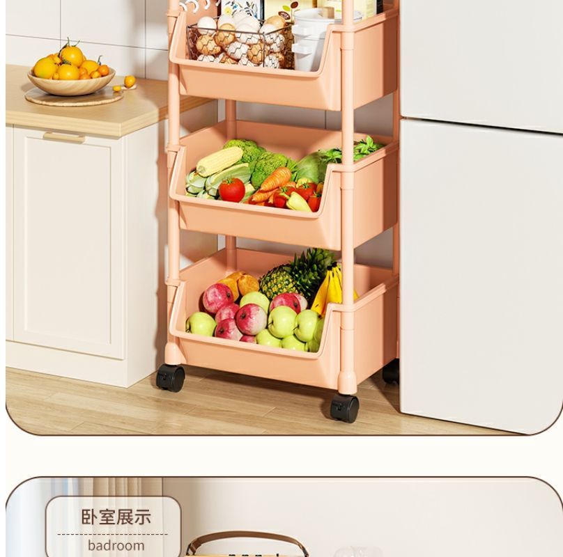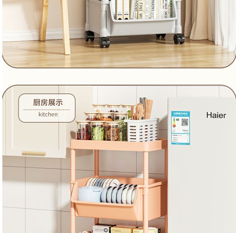 小推车置物架家用零食落地多层客厅收纳书架移动厨房果蔬菜篮架子