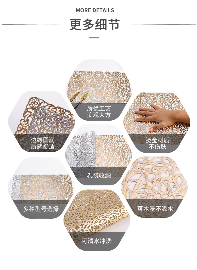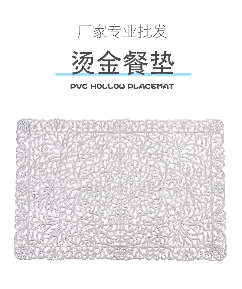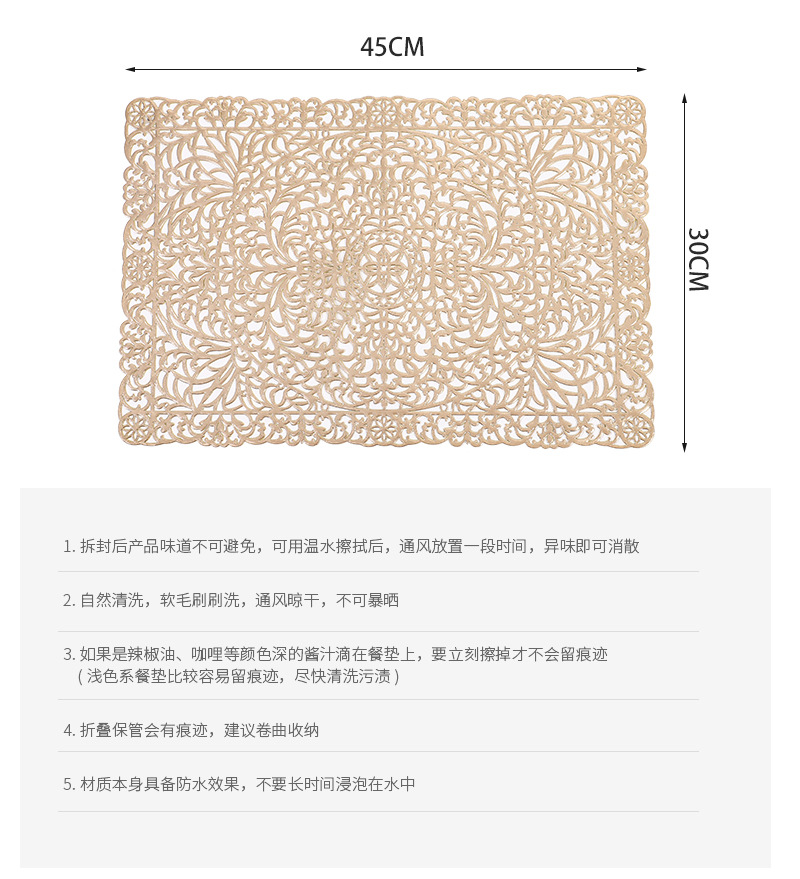 轻奢镂空家用餐桌垫PVC烫金隔热西餐垫防水防油方形餐垫咖啡垫子