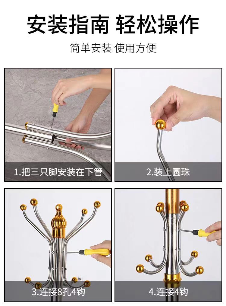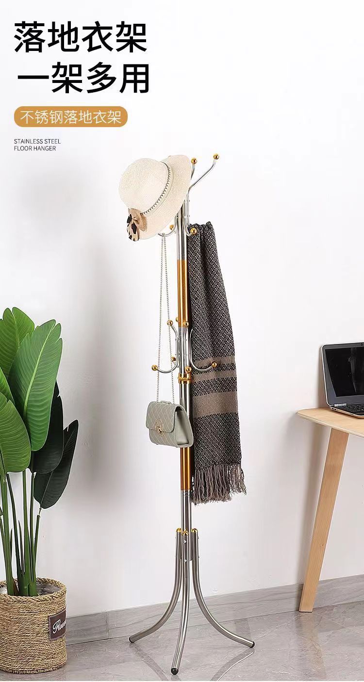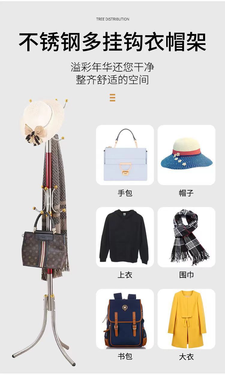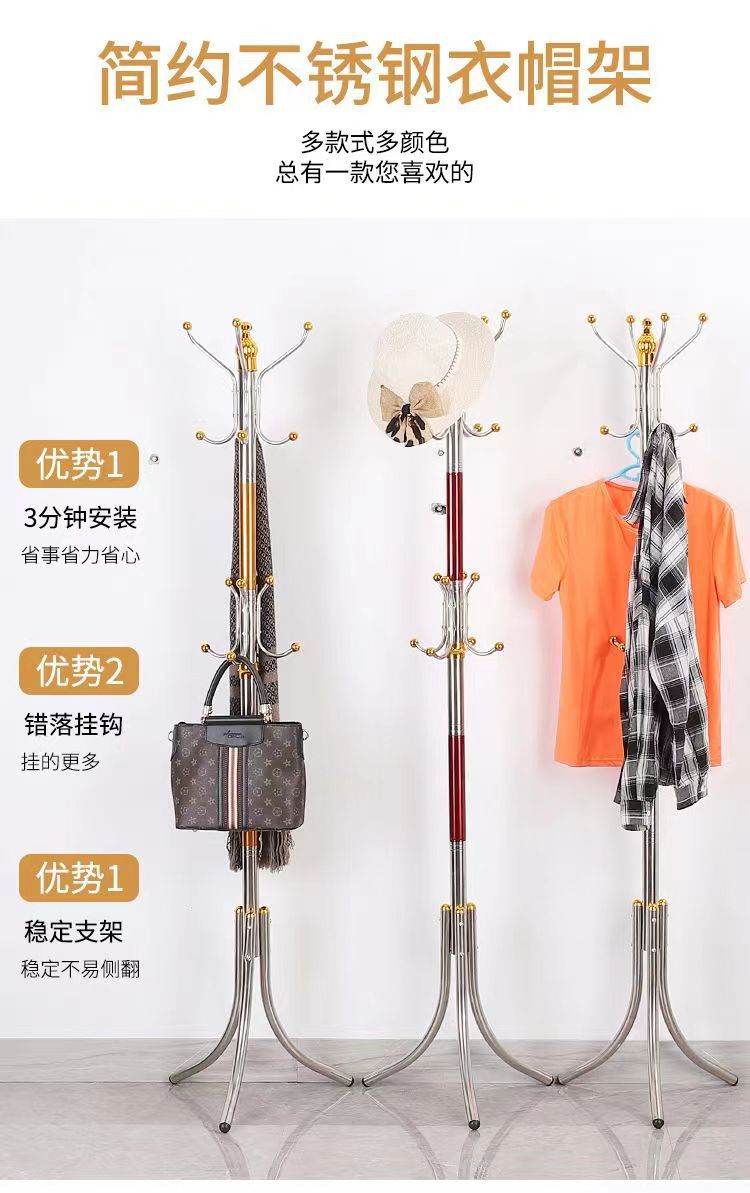 不锈钢衣帽架落地简易挂衣服架子卧室简约家用单杆式挂包置物架