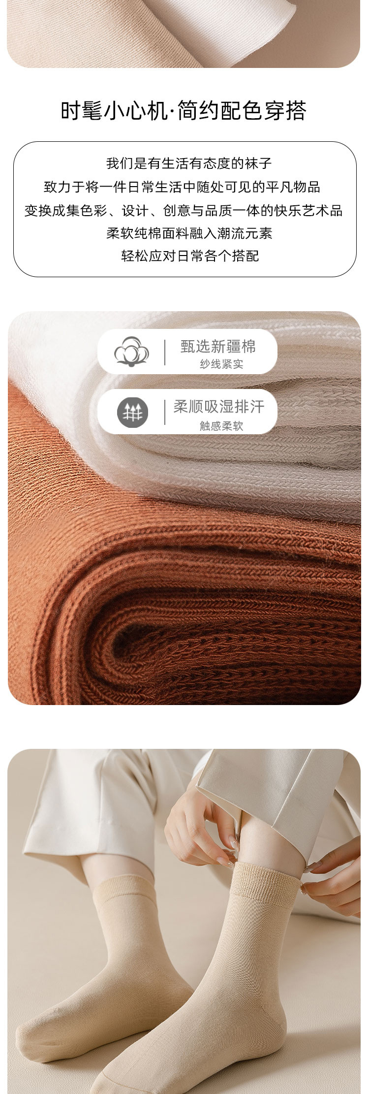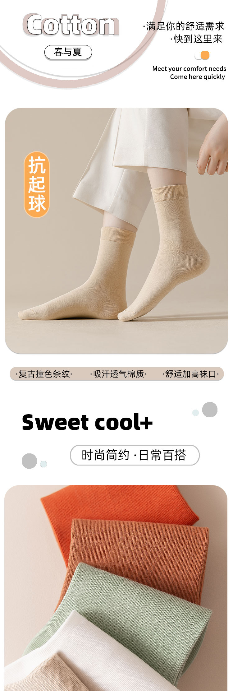 纯色无骨女袜子春夏纯棉袜中长筒袜吸汗透气防臭不起球长筒袜诸暨