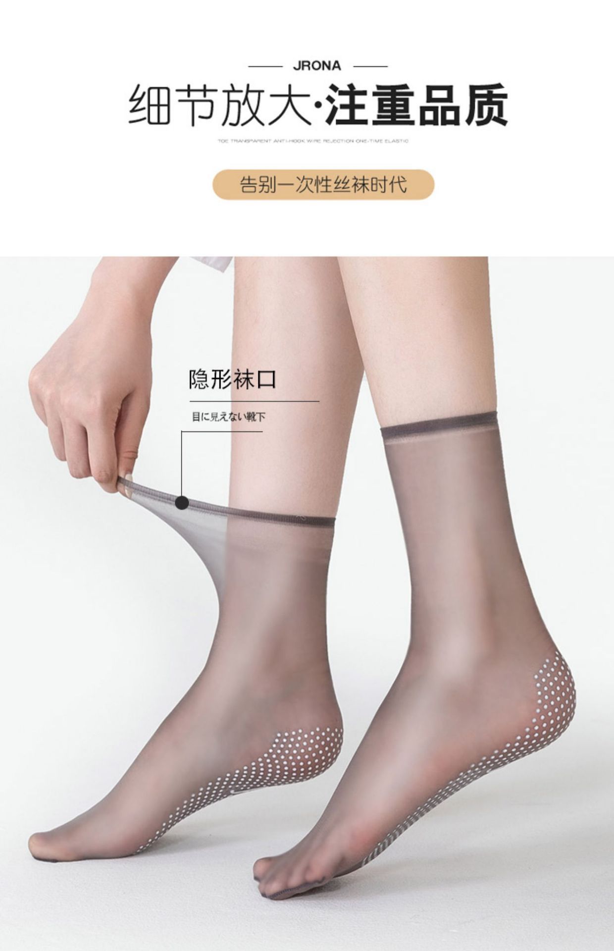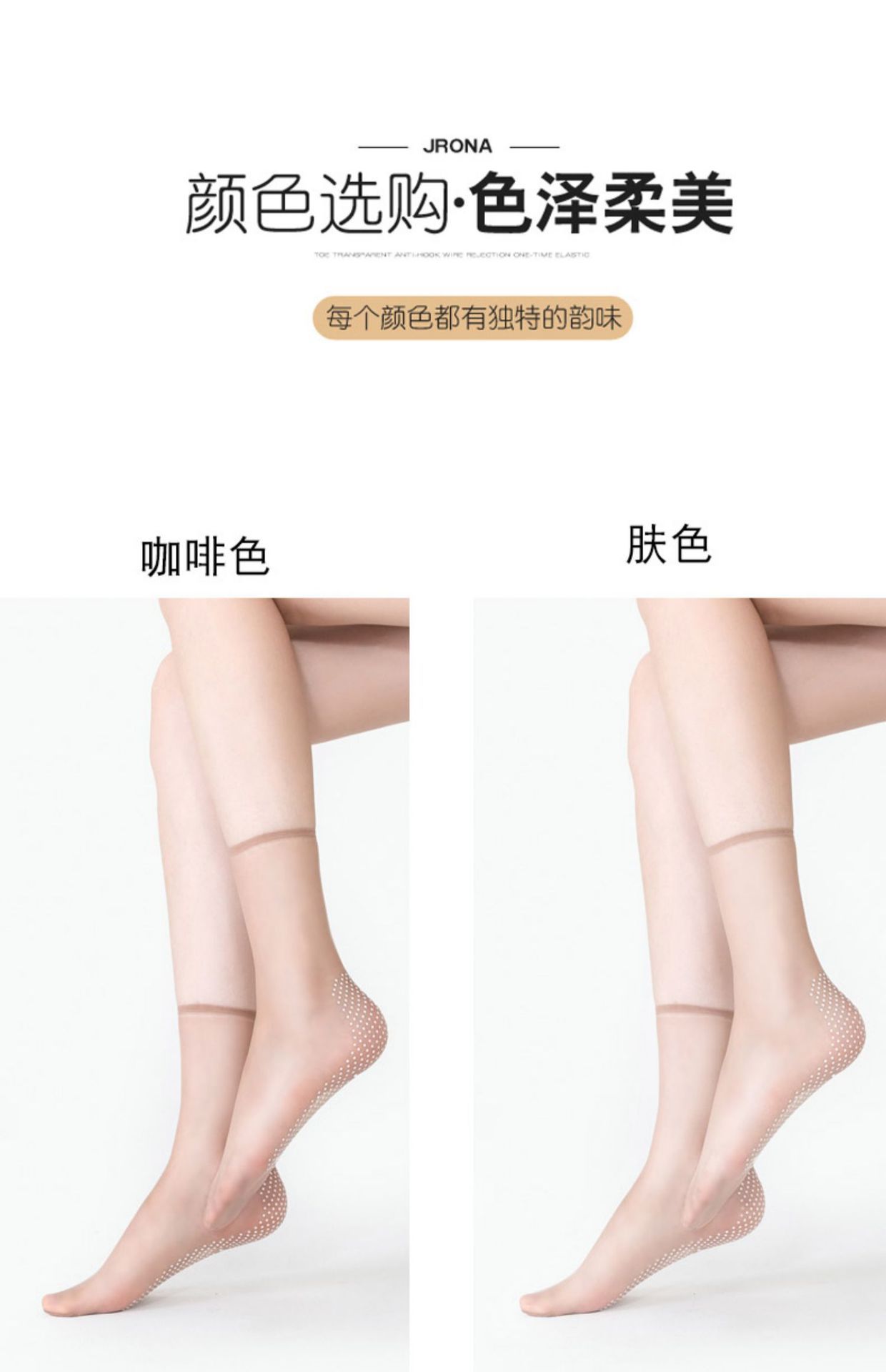 防滑丝袜女薄款袜子女夏季水晶防勾丝隐形夏天短袜子中筒袜肉色袜