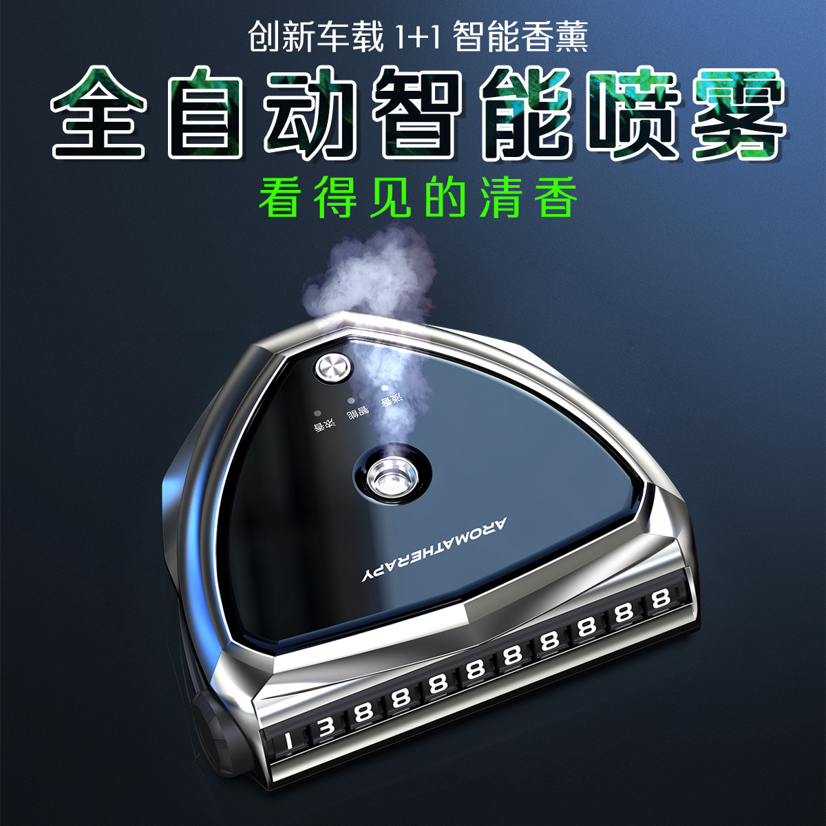 N6车载氛围灯三合一香薰仪:本产品支持各个品牌车标LOGO定制。谢谢您的支持与信任。智能香薰喷香停车牌,采用航空合金制成,防晒耐热,经久耐用。功能全面创新升级,随车启停智能喷香,自带滚轮数字多重号码调节,支持隐藏数字避免骚扰,更是新增LED拾音氛围灯,多重色彩,多种动态模式,幻彩叠加,32个独立RNG彩灯珠,2k高清OLED屏,200种色彩,自动感应旋律,高灵敏麦克风,使声光节奏同步,随音炫动,智能消噪算法,嘈杂环境精准识别声音炫动色彩。给到车内温馨灯光。无需插电使用,内置石墨烯电池,采用Type—C快充,一次充电有效续航60天左右。赠送法国曼氏精油,香味纯正,雾化细腻,留香持久,这不单是一个停车牌,更是给车内搭配一个高档智能的车载香薰,采用滚轮式换号方式,轻轻拨动,有1000亿种数字排列,临时停车更安全。而且设置了创意旋转翻盖结构,轻轻一推就能隐藏号码,非常方便!