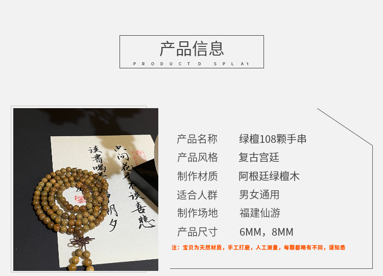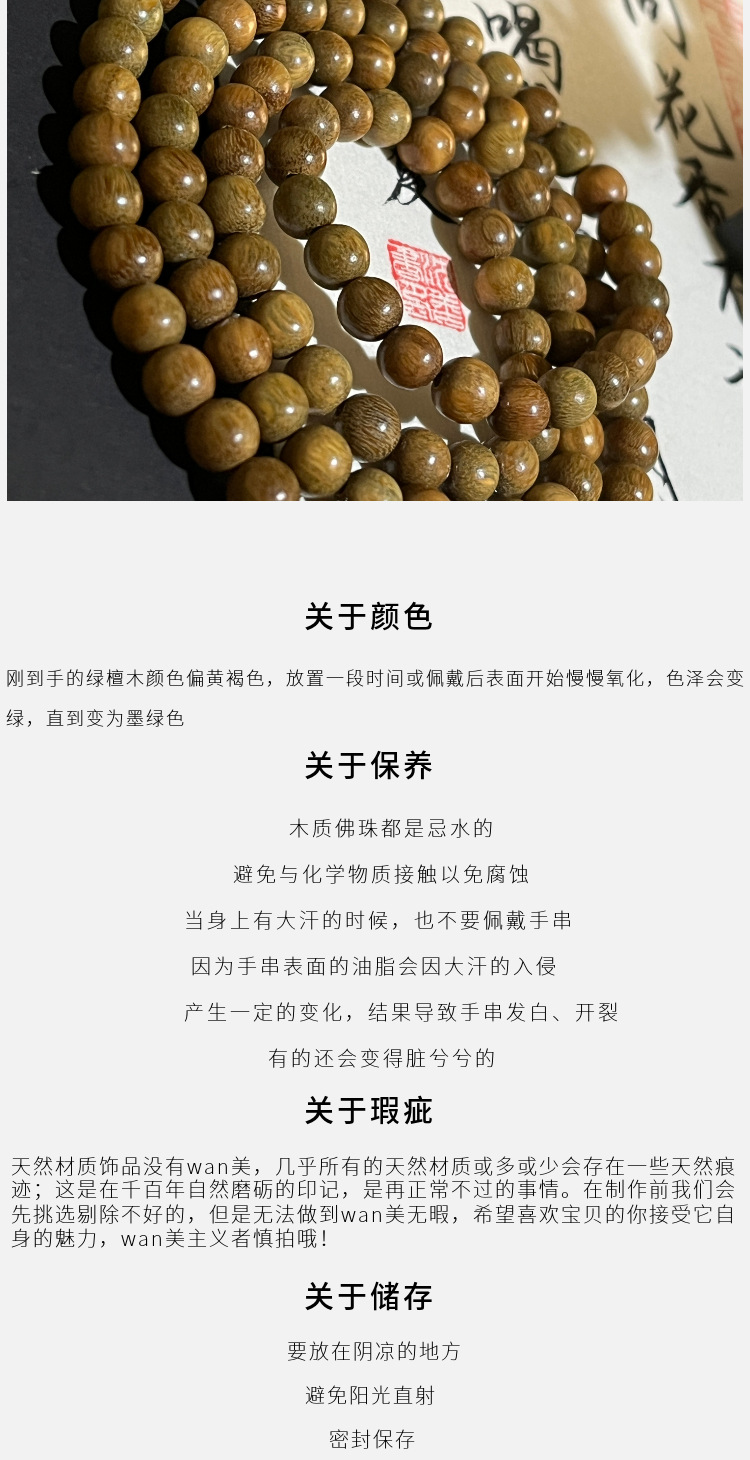 阿根廷绿檀批发108 颗男女士佛珠念珠檀香木长款手链木质文玩手串