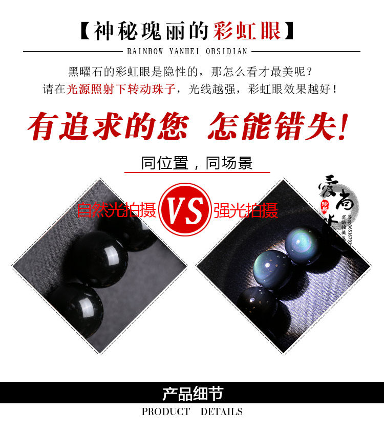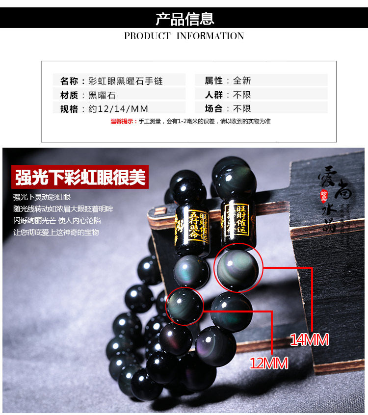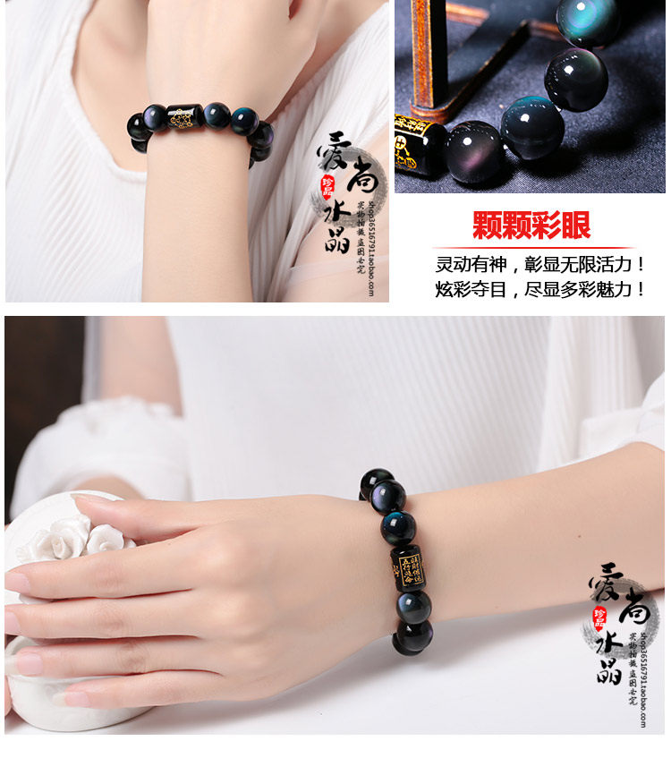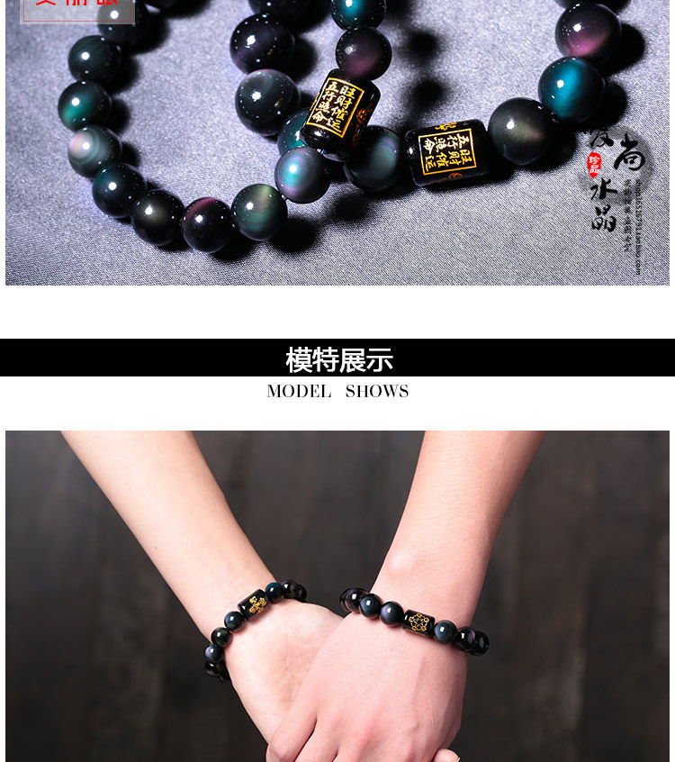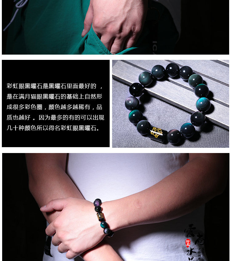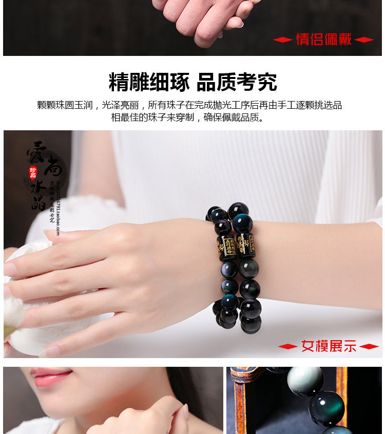 彩虹眼黑曜石手链男士手串女六字真言