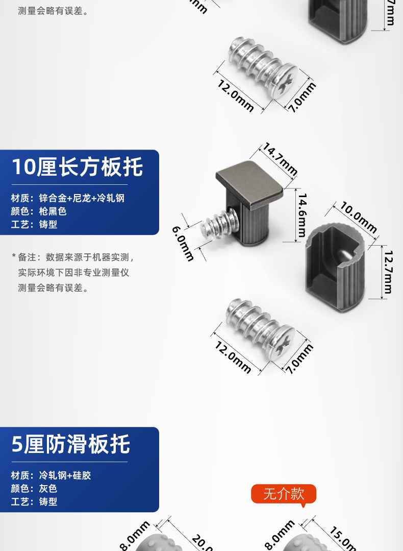 厂家直销自攻层板托玻璃橱柜十字螺丝隔板托五金配件免打孔隔板钉