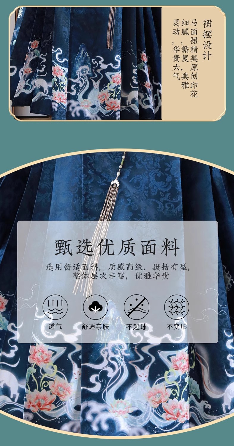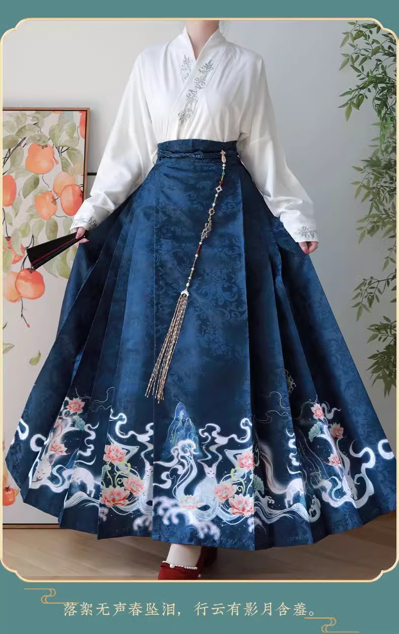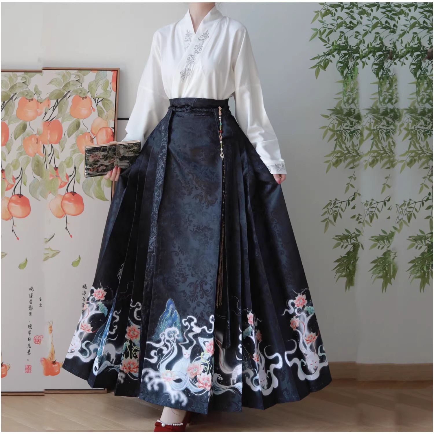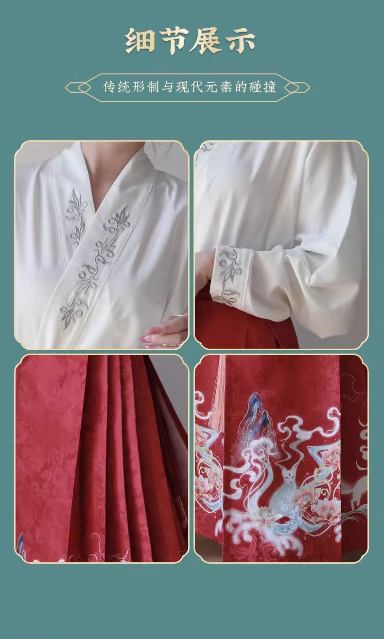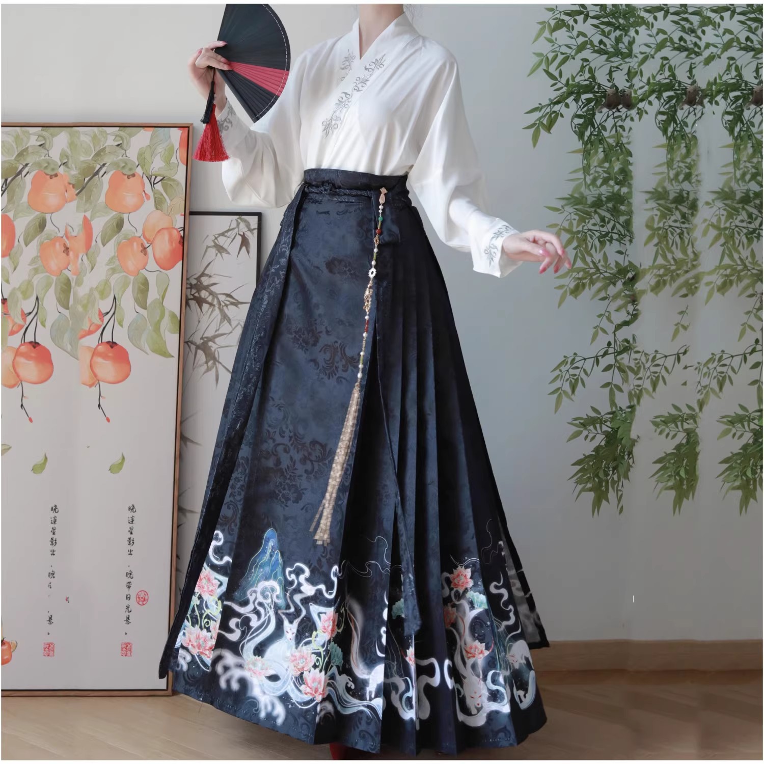 明制汉服女月狐生莲中国风刺绣飞机袖马面裙女装日常春秋款套装