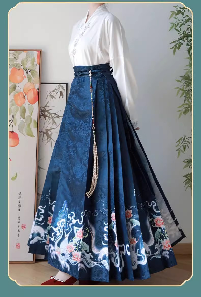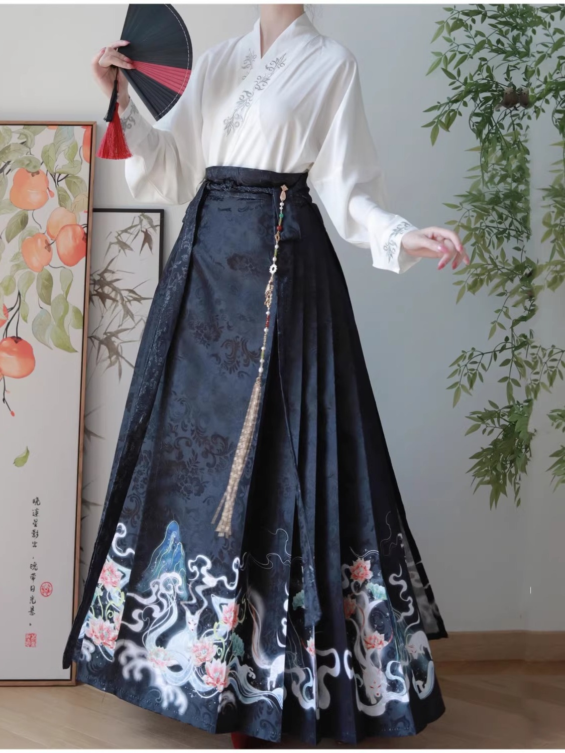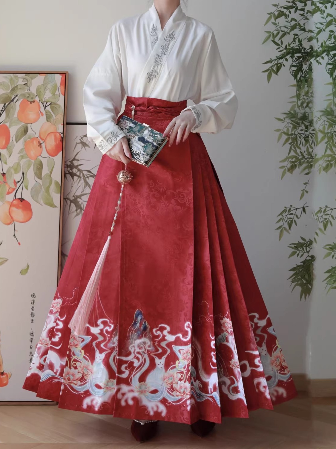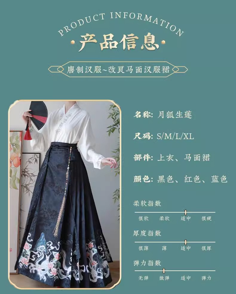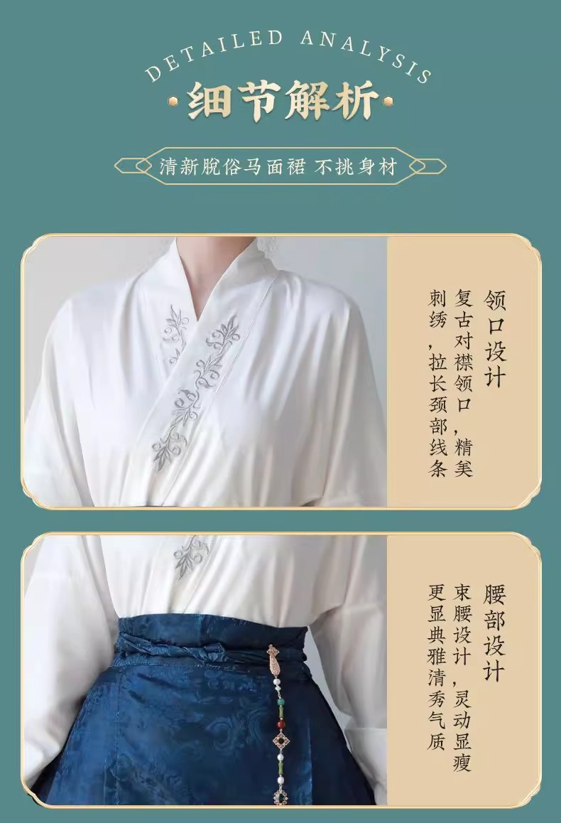 明制汉服女月狐生莲中国风刺绣飞机袖马面裙女装日常春秋款套装