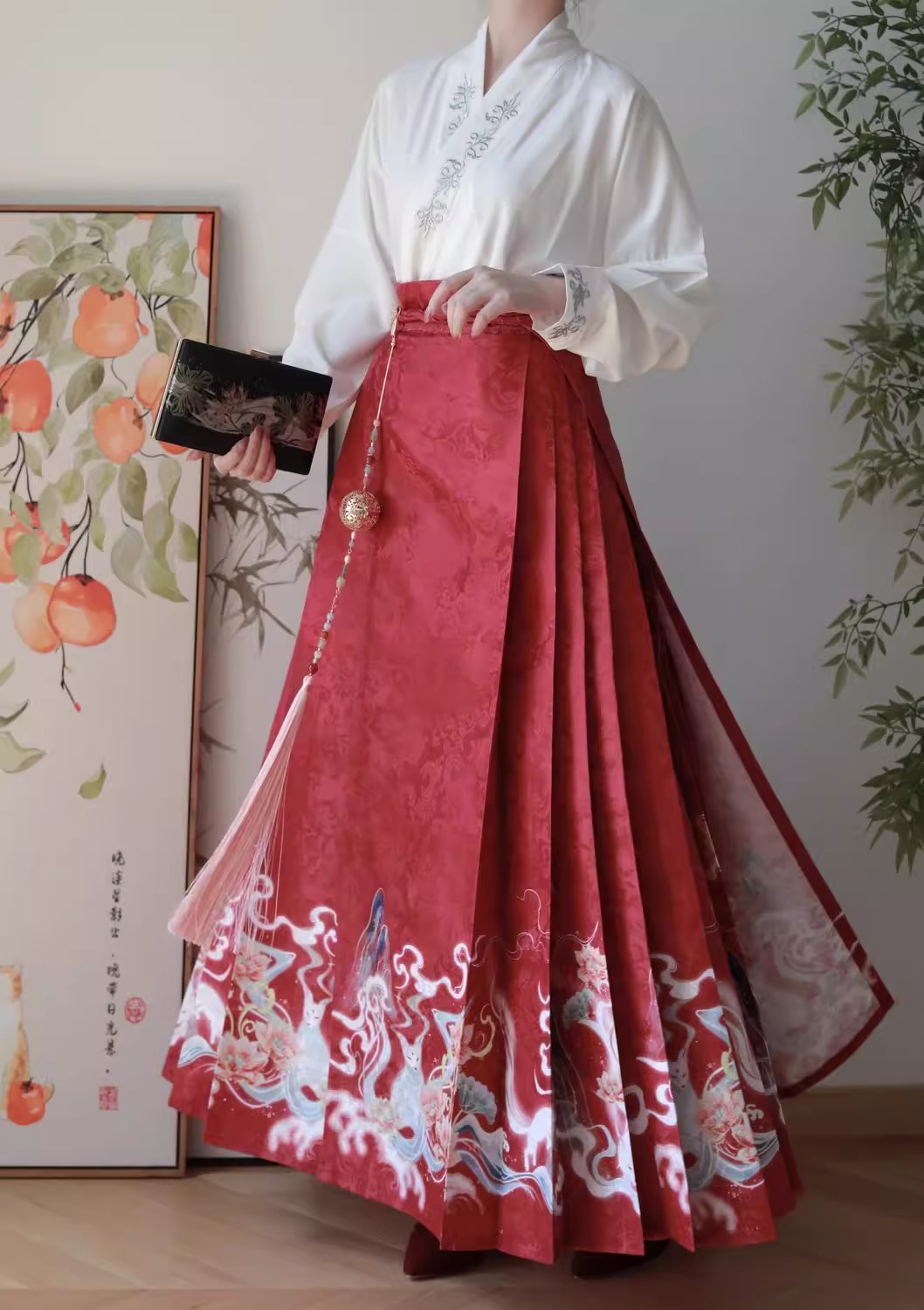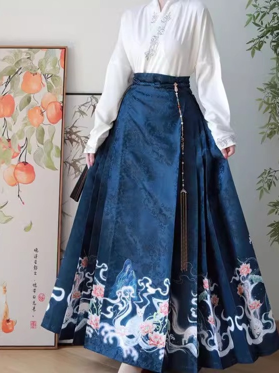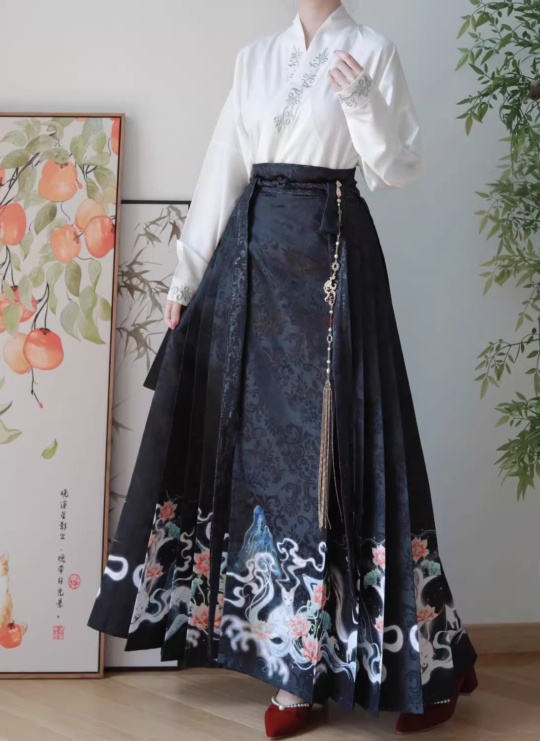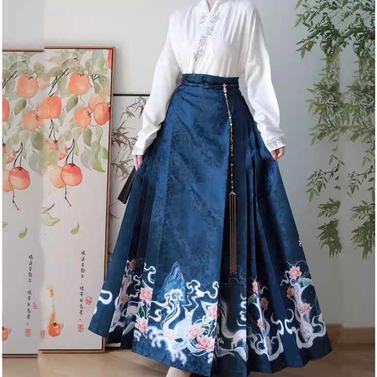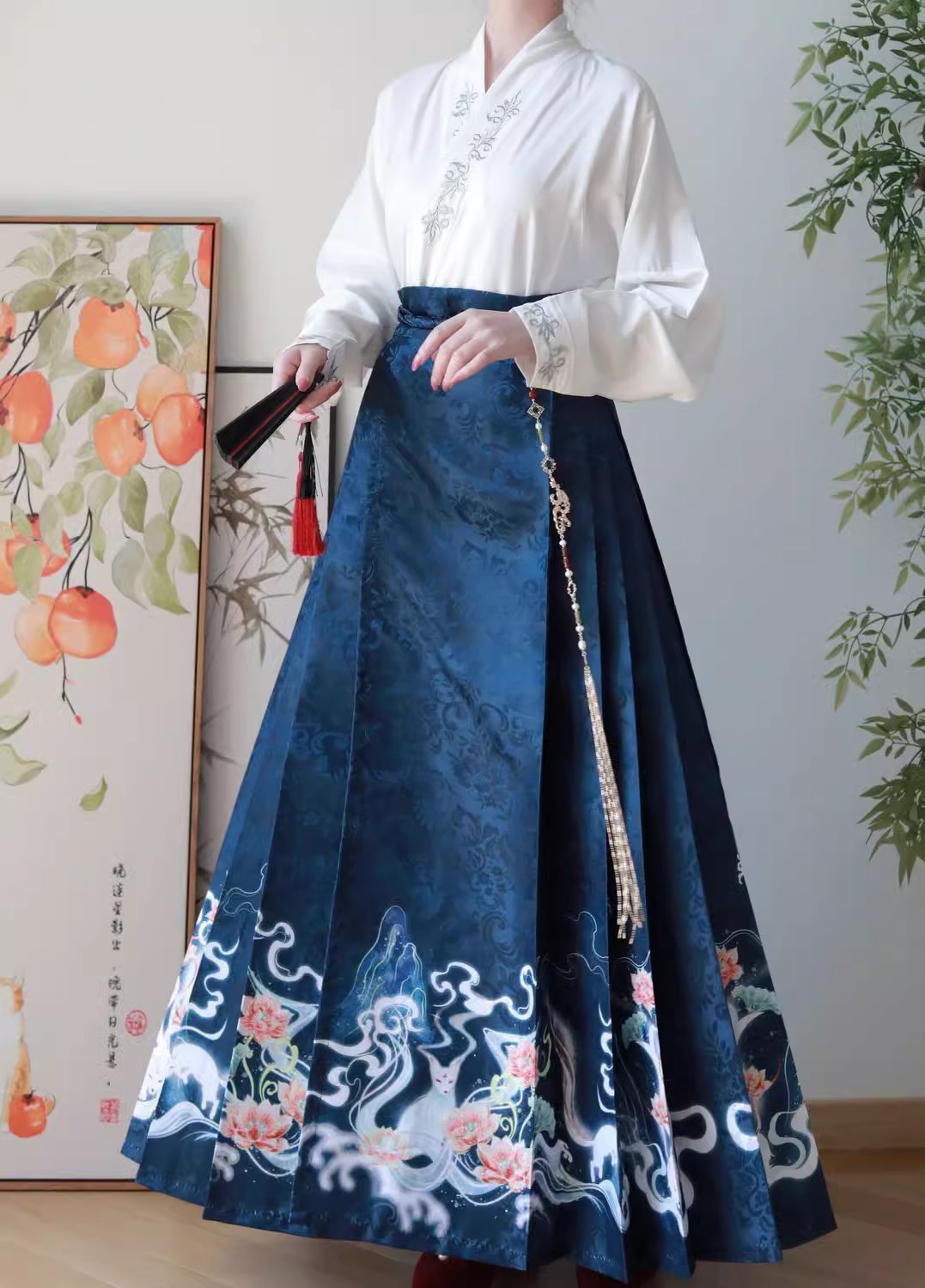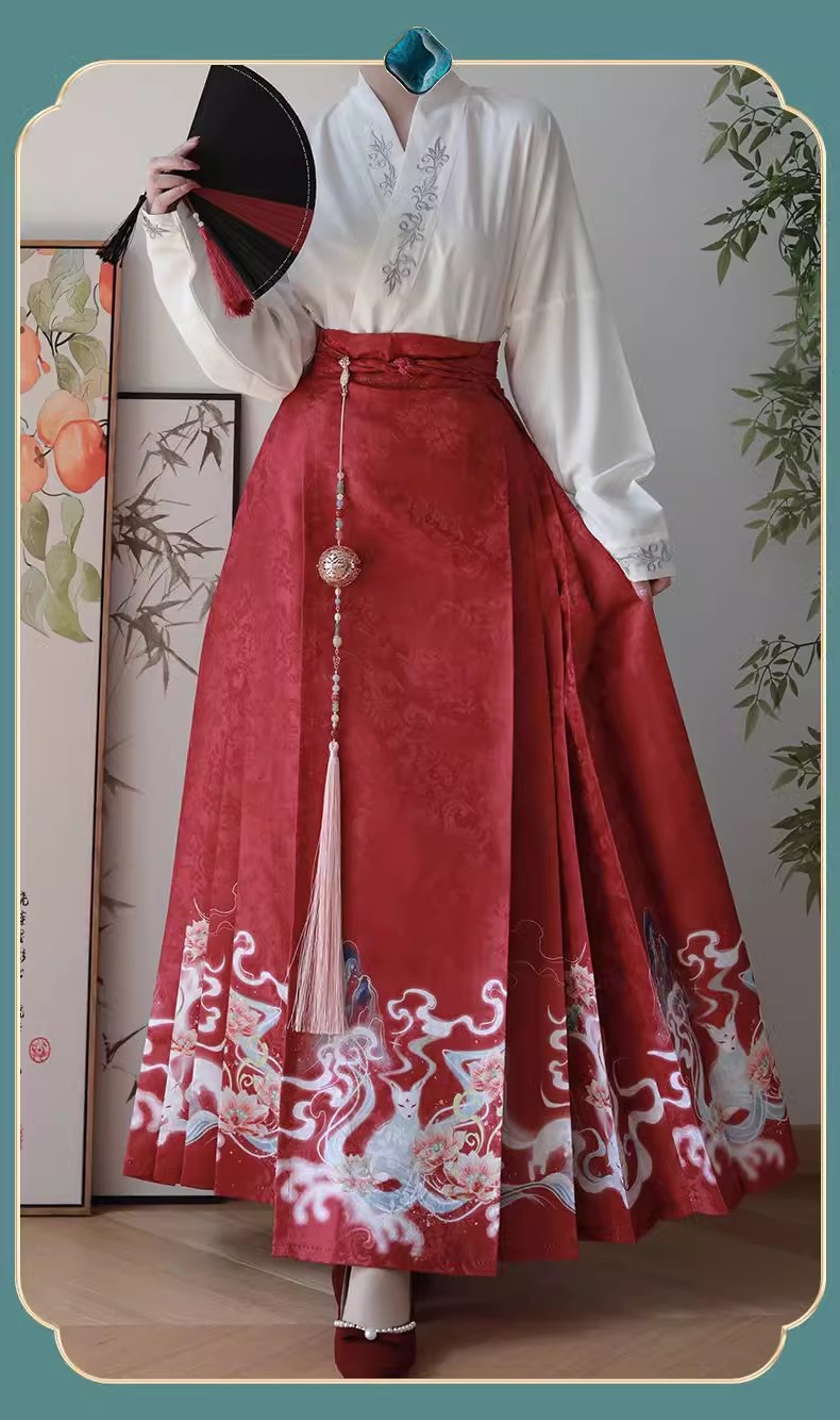 明制汉服女月狐生莲中国风刺绣飞机袖马面裙女装日常春秋款套装