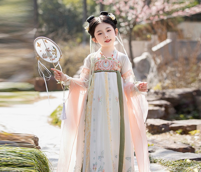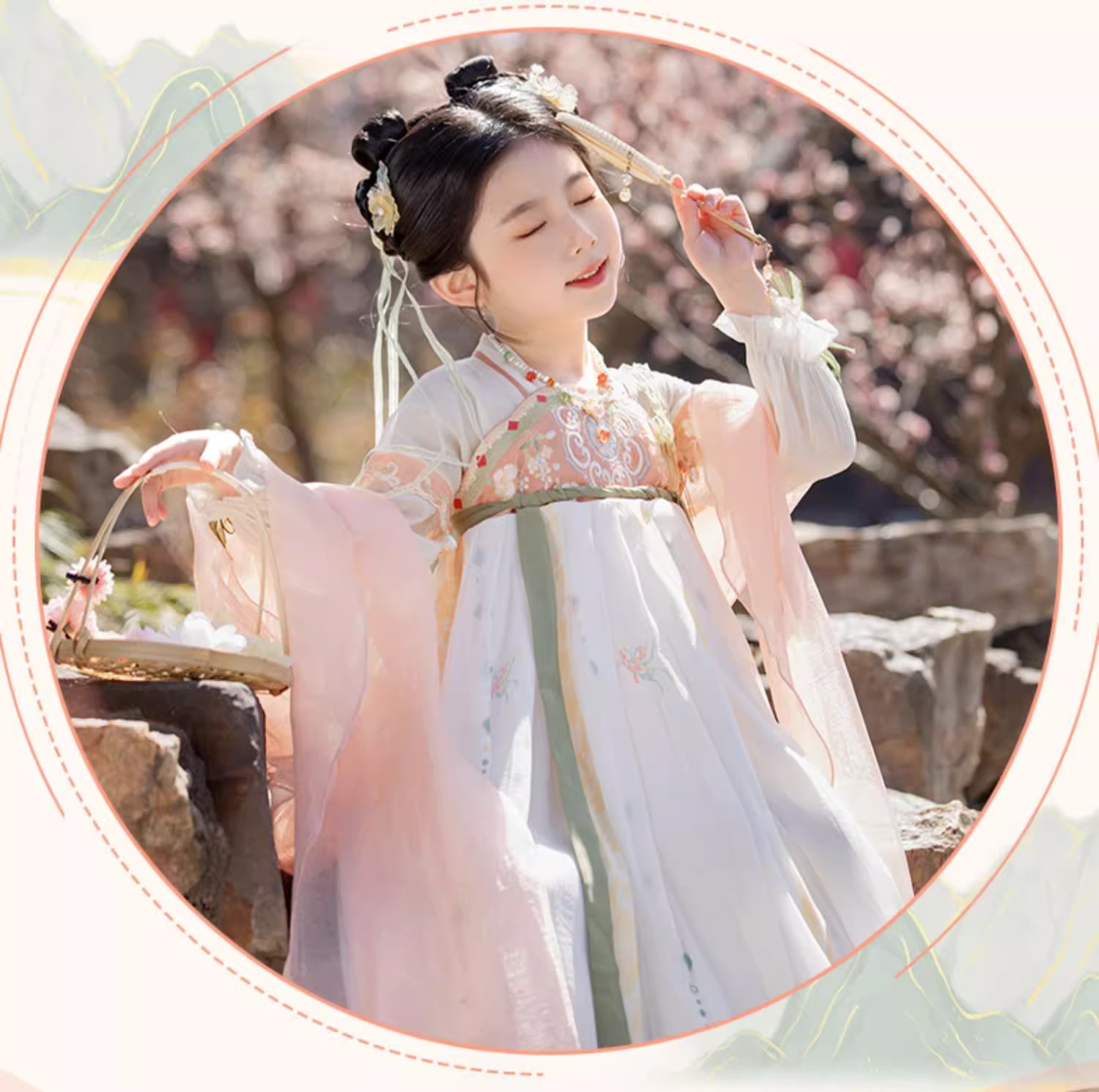 儿童汉服女童夏秋季新款古风中国风刺绣唐装超仙小女孩连衣裙襦裙