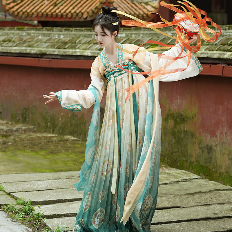 成人汉服女装中国风唐制半臂上襦齐胸襦裙套装刺绣改良夏季四件套