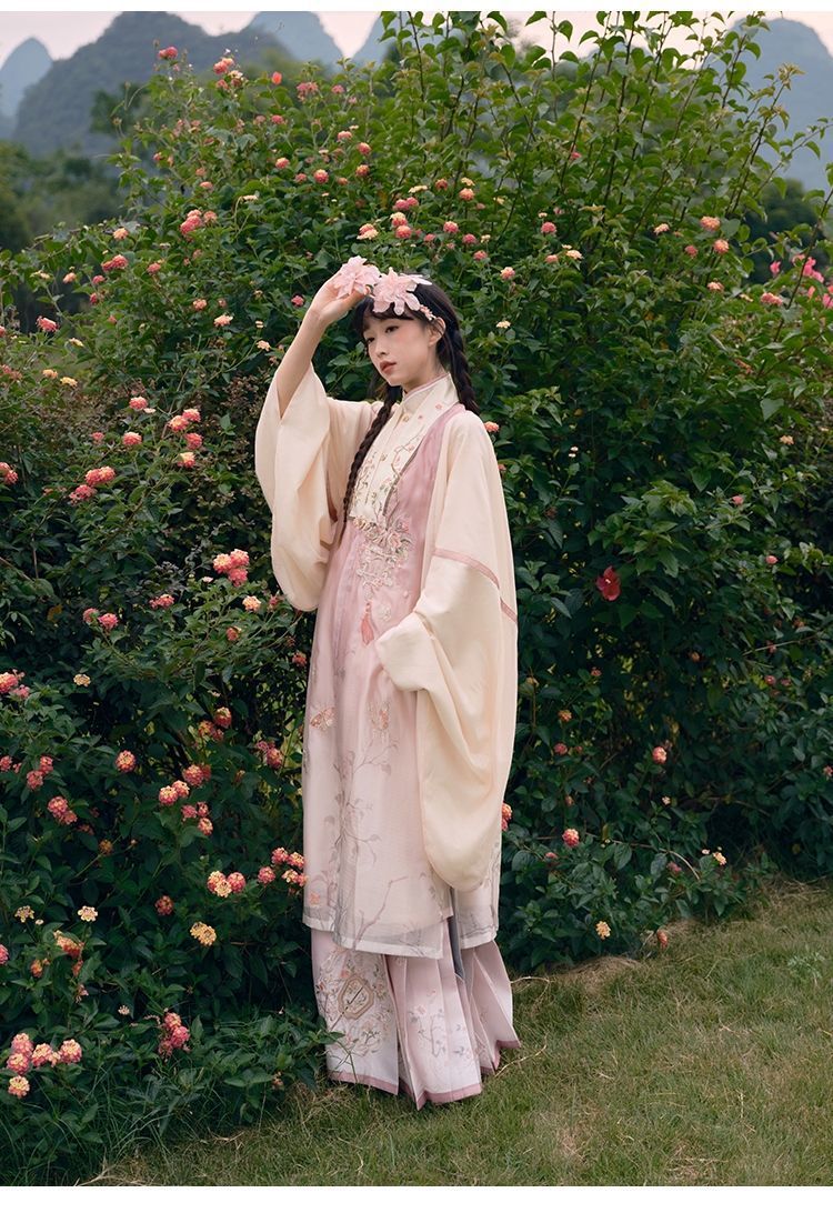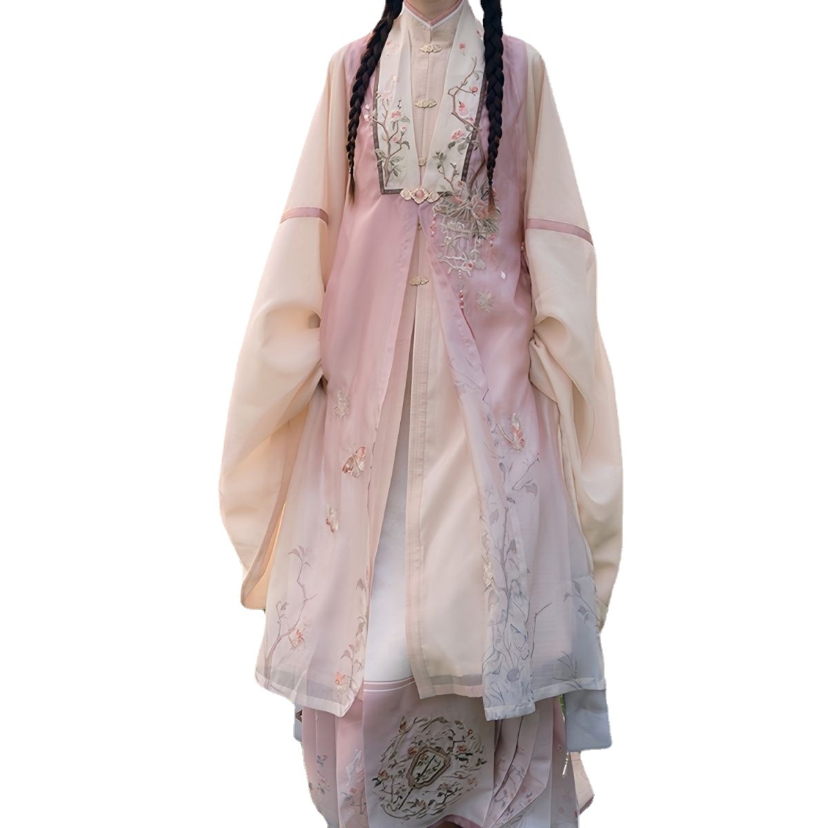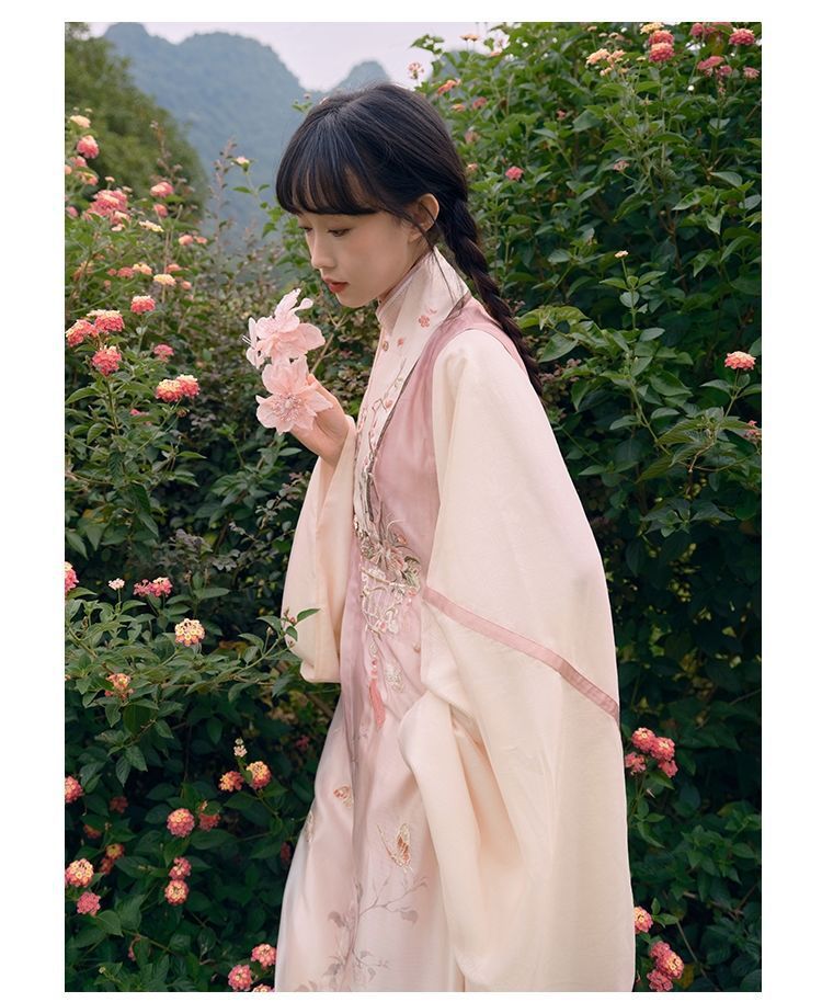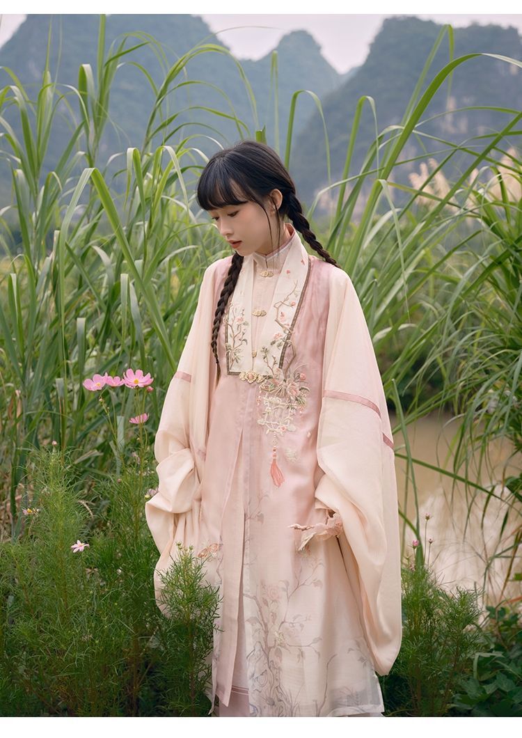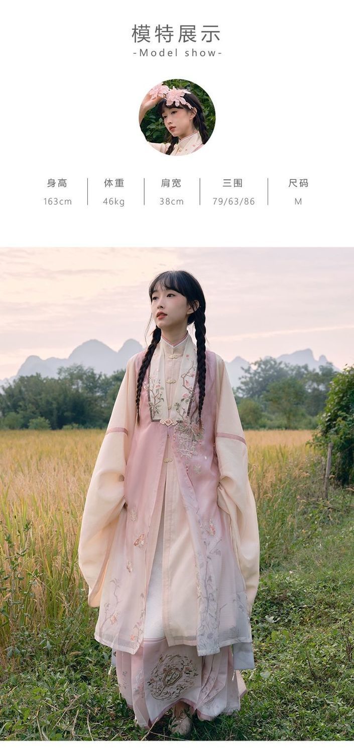 七月夕成人汉服女装新款明制汉服【鹊踏枝】绣花立领长衫三件套装