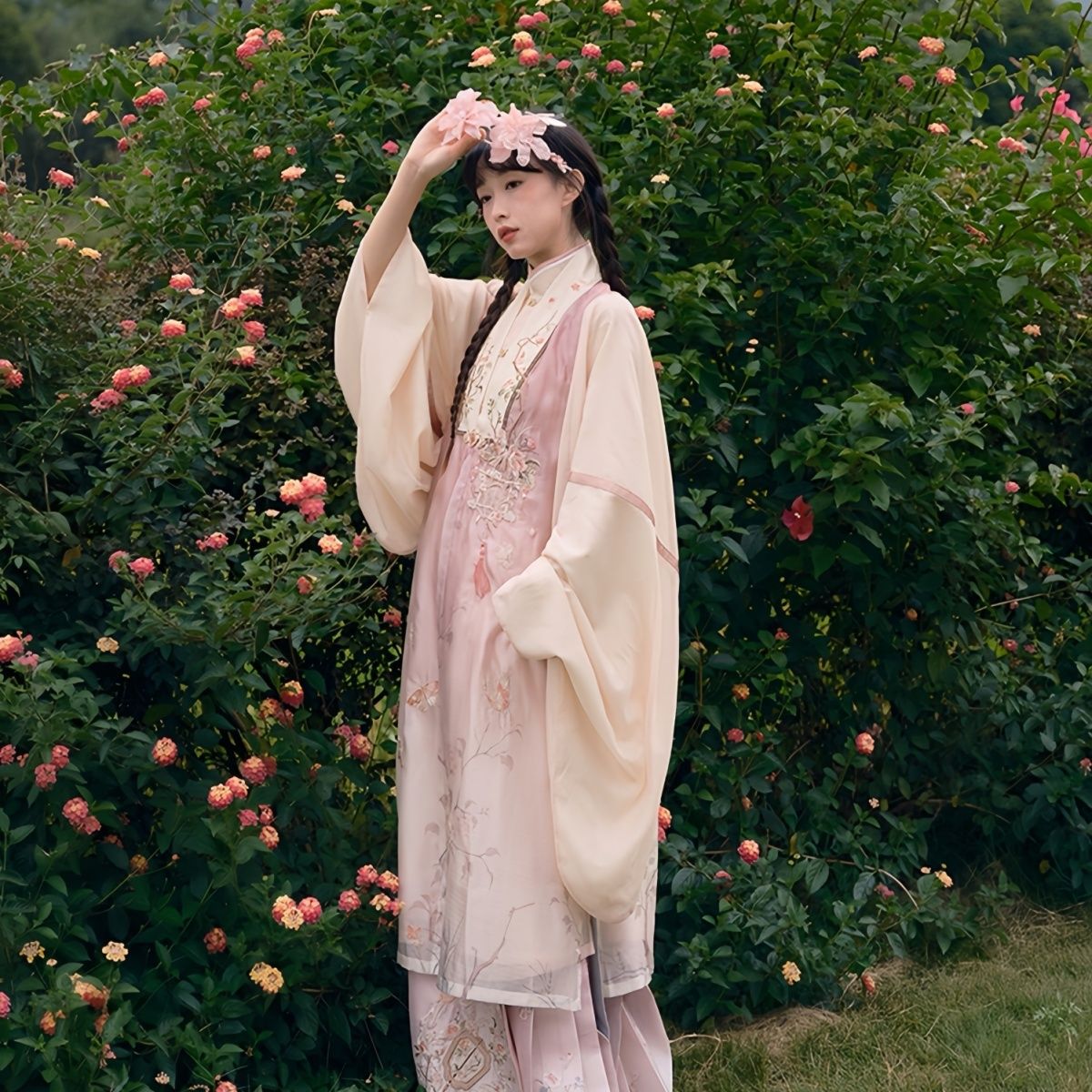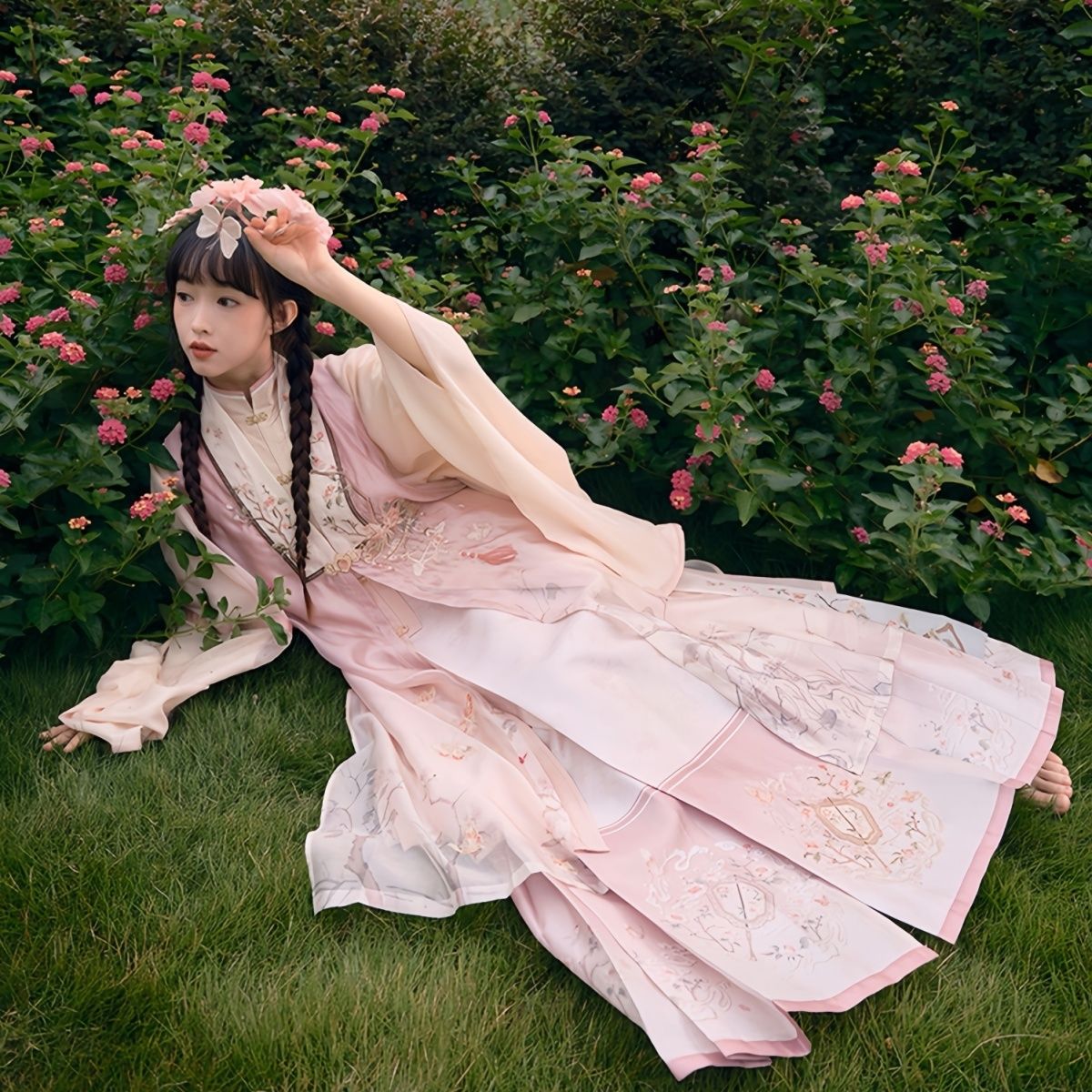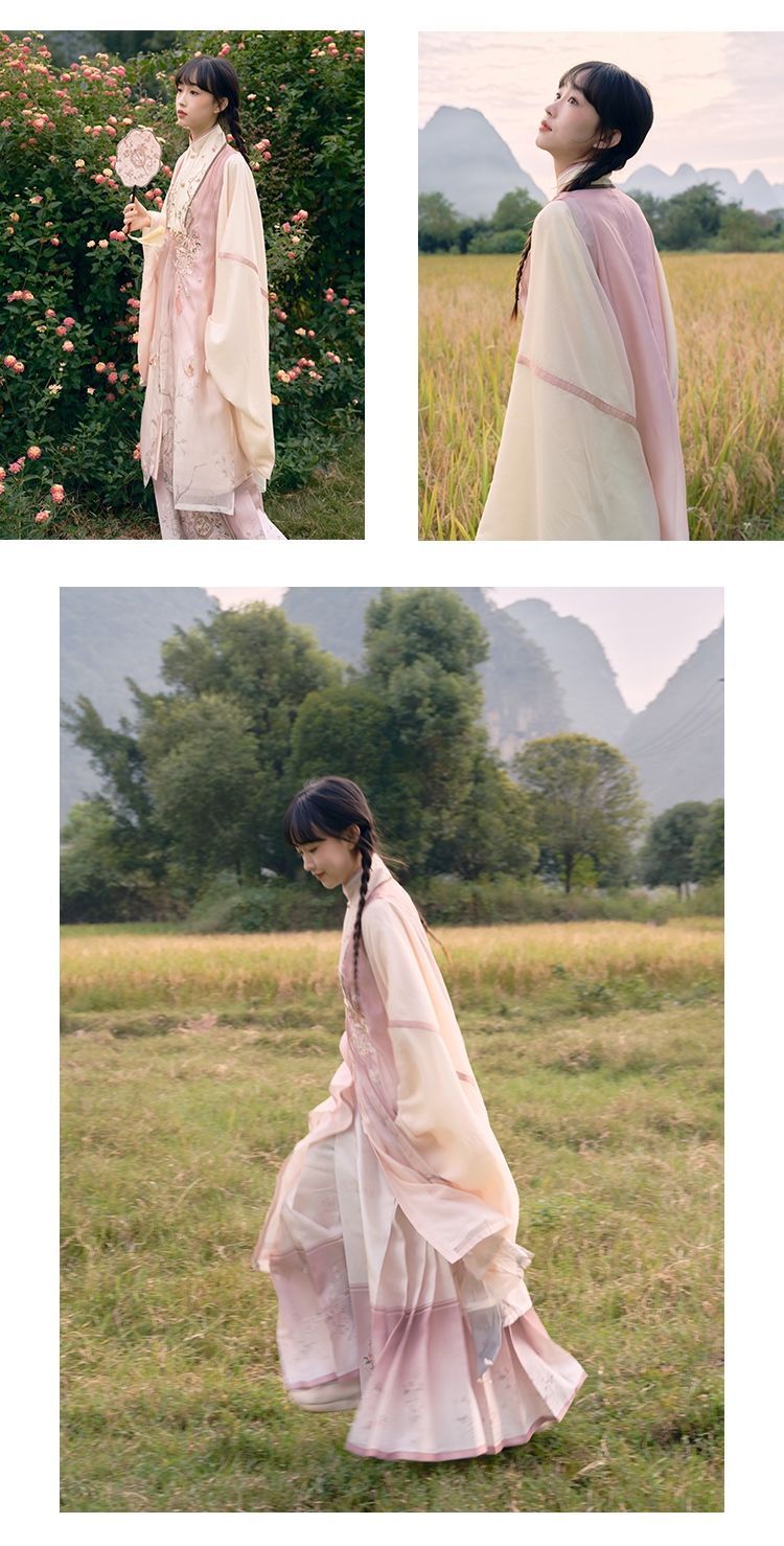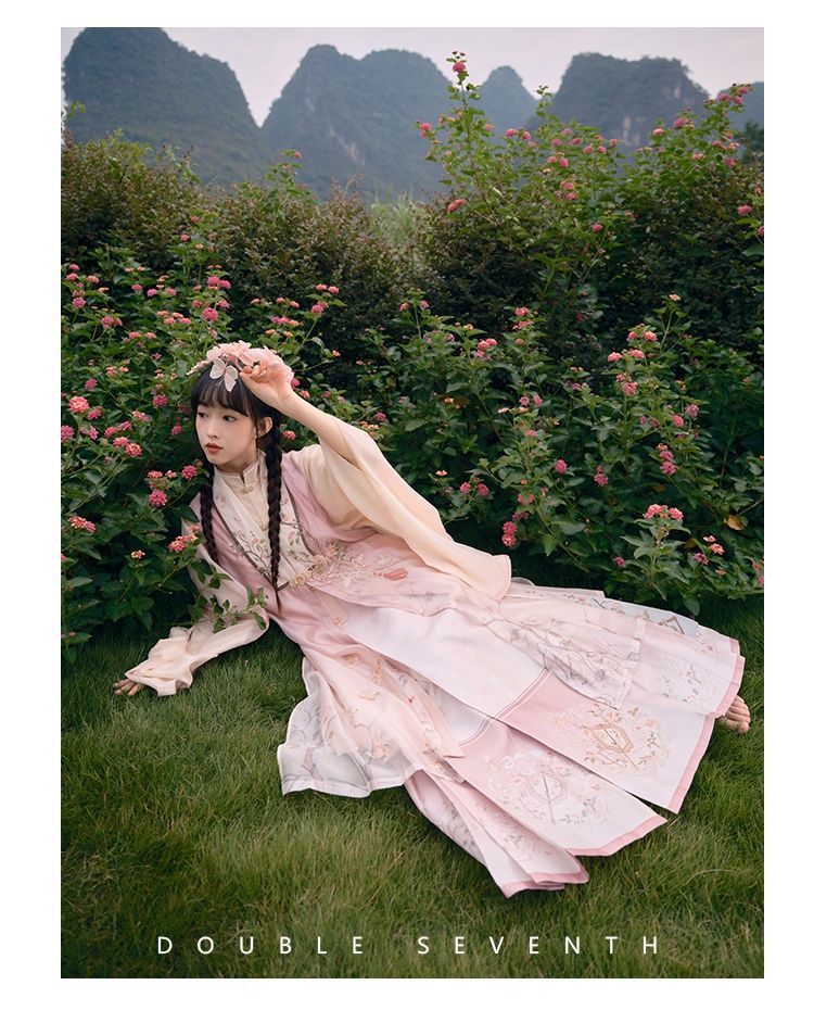 七月夕成人汉服女装新款明制汉服【鹊踏枝】绣花立领长衫三件套装