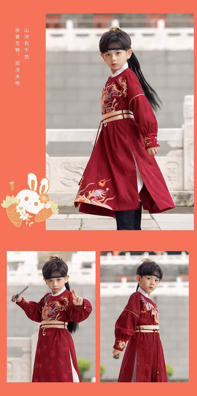 儿童古装汉服男童套装唐装夏季改良汉元素少爷服演出服舒适两件套