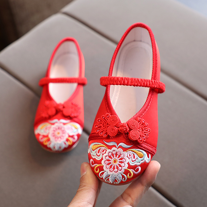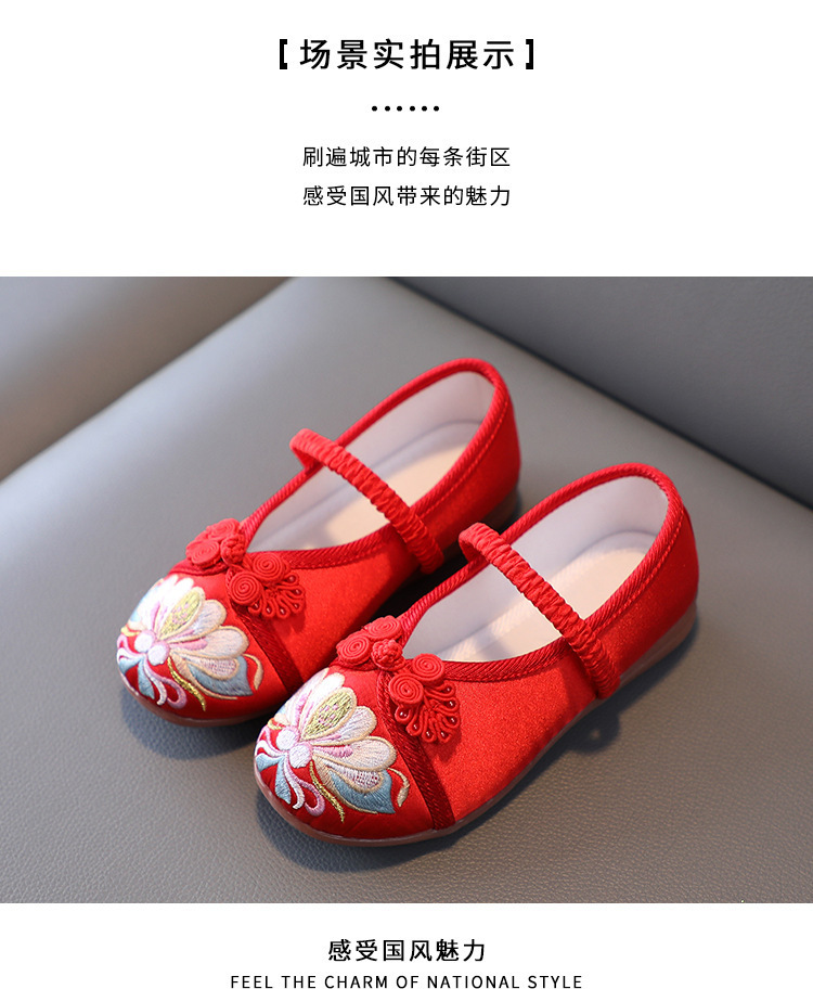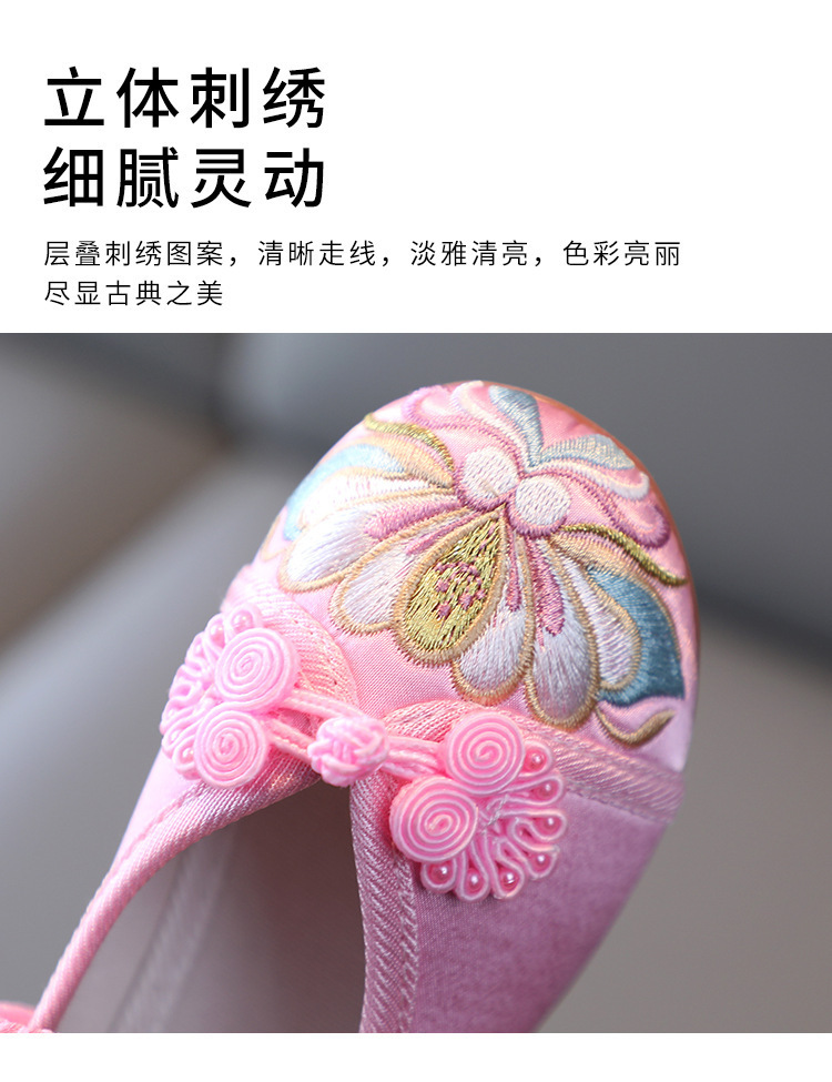 汉服鞋女童老北京布鞋绣花鞋古代学生表演出鞋复古民族风儿童布鞋