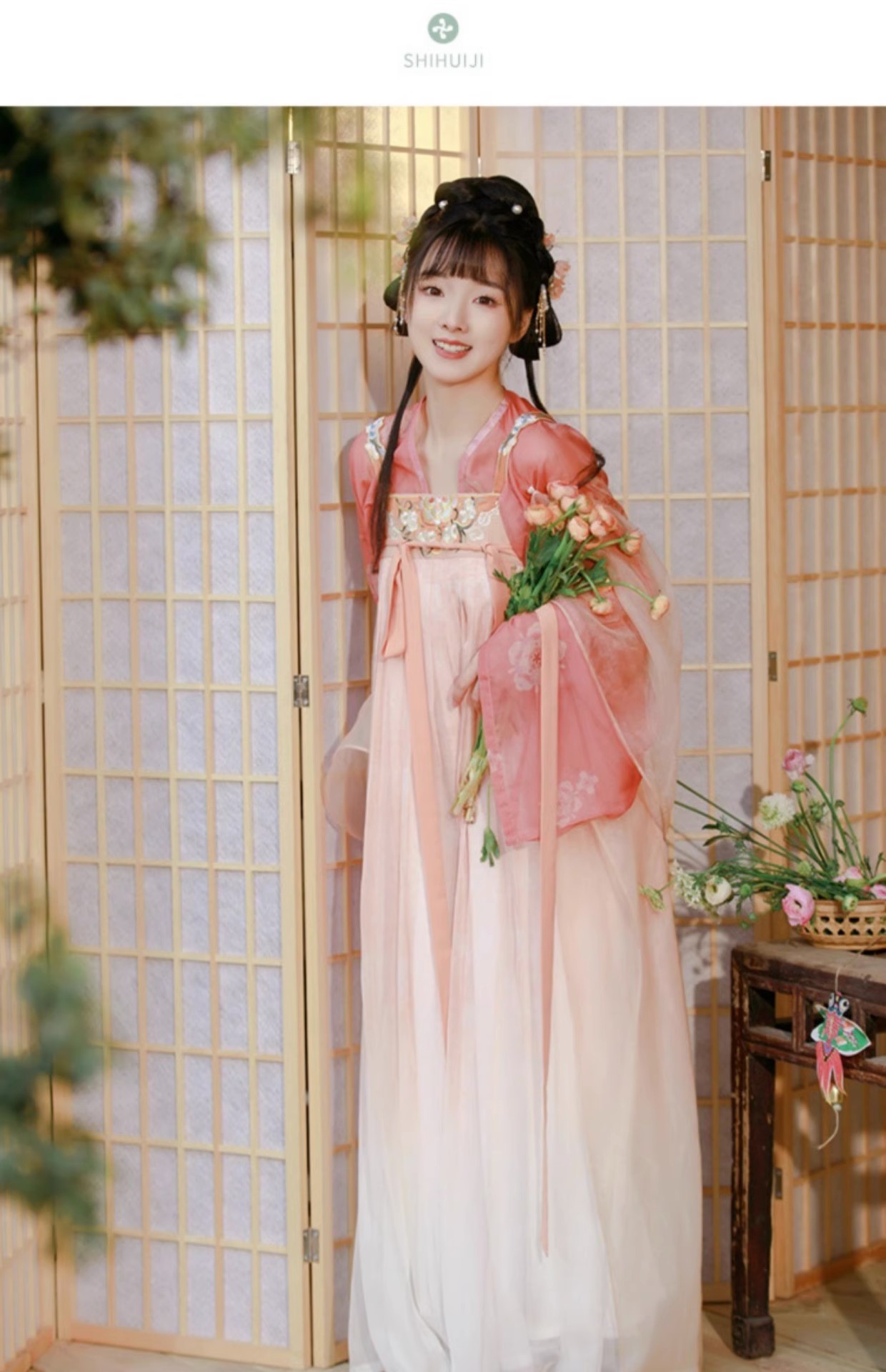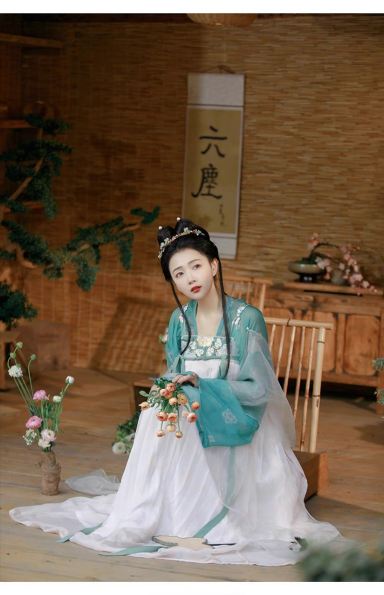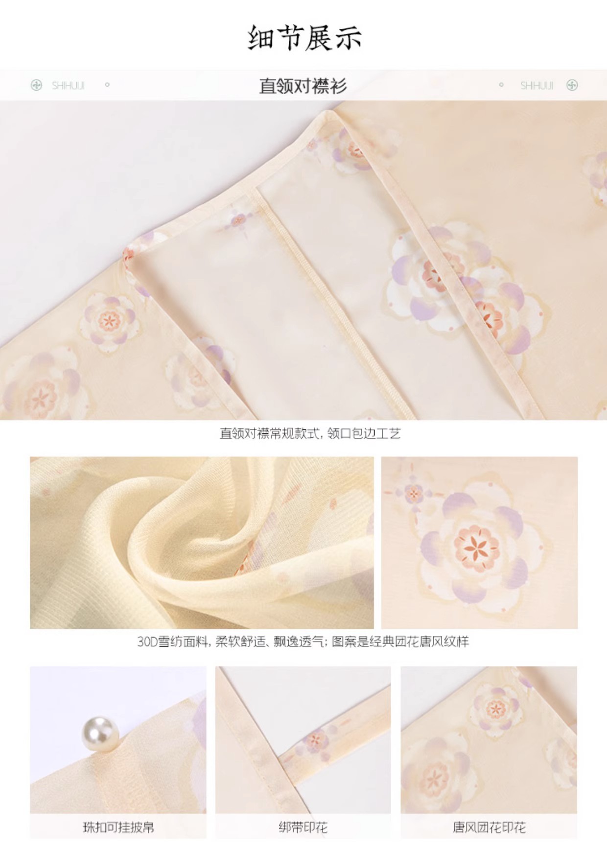 成人汉服女装2023夏秋季新款中国风唐制直领对襟衫齐胸襦裙两件套