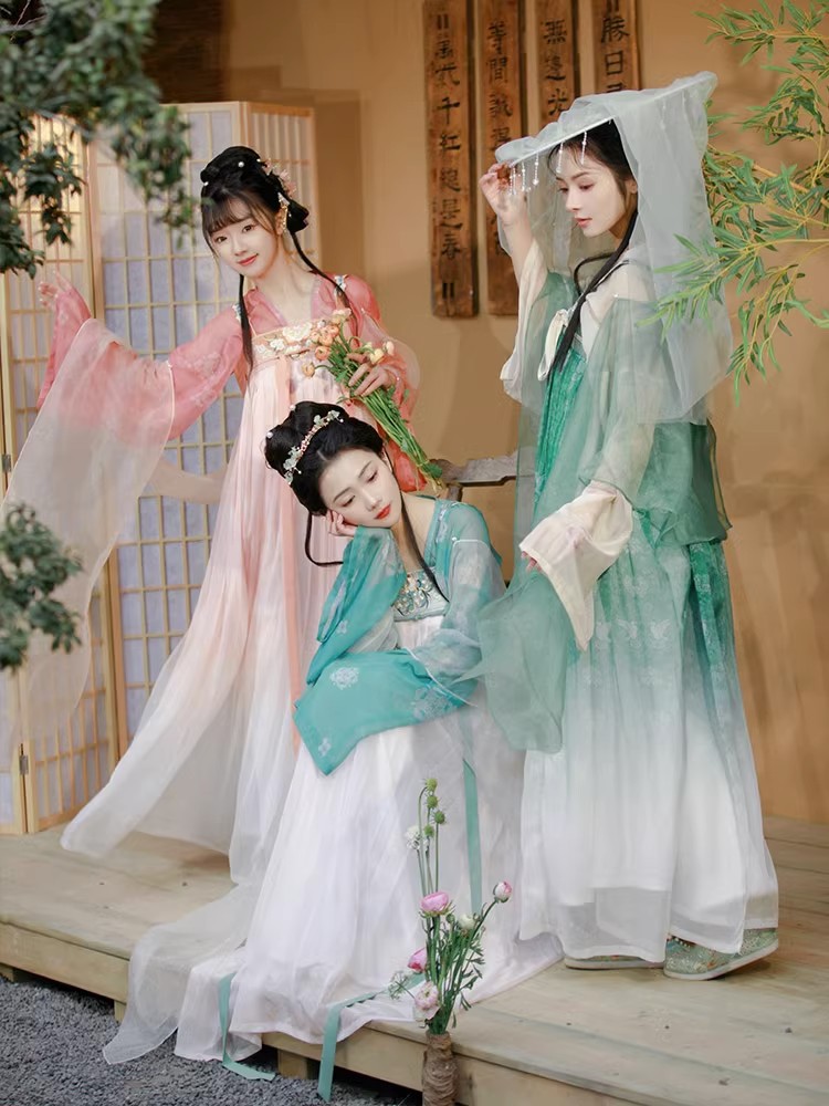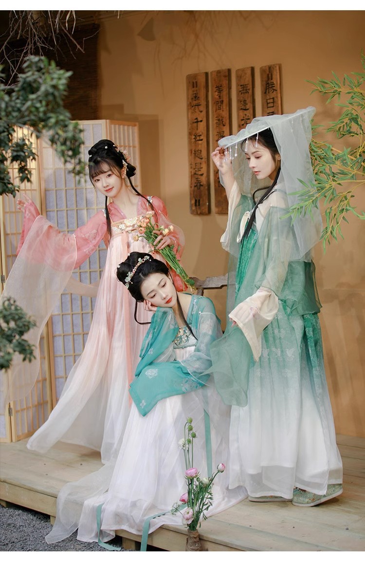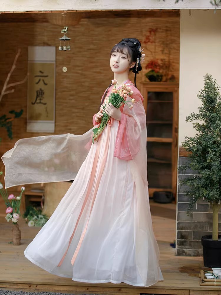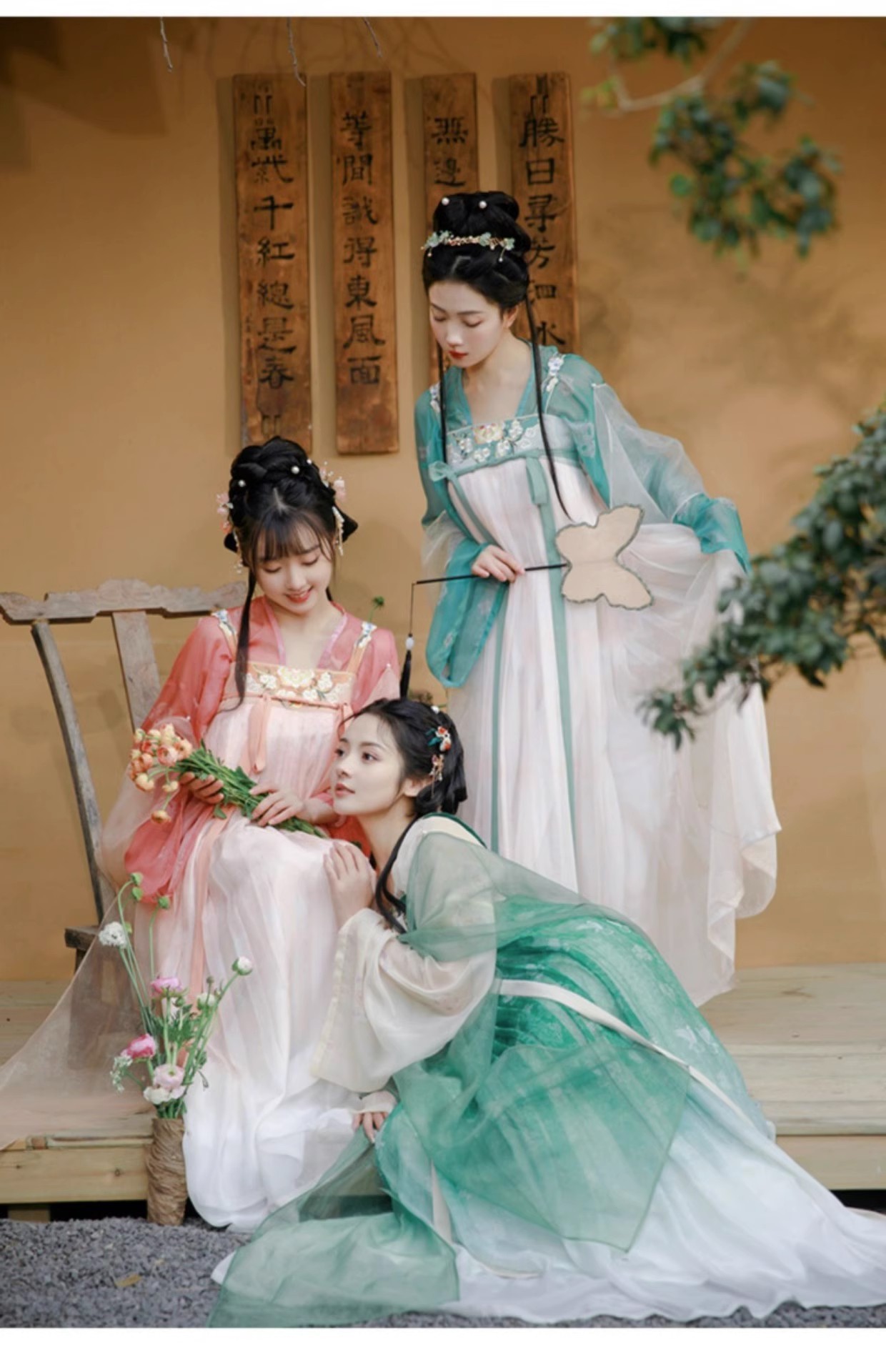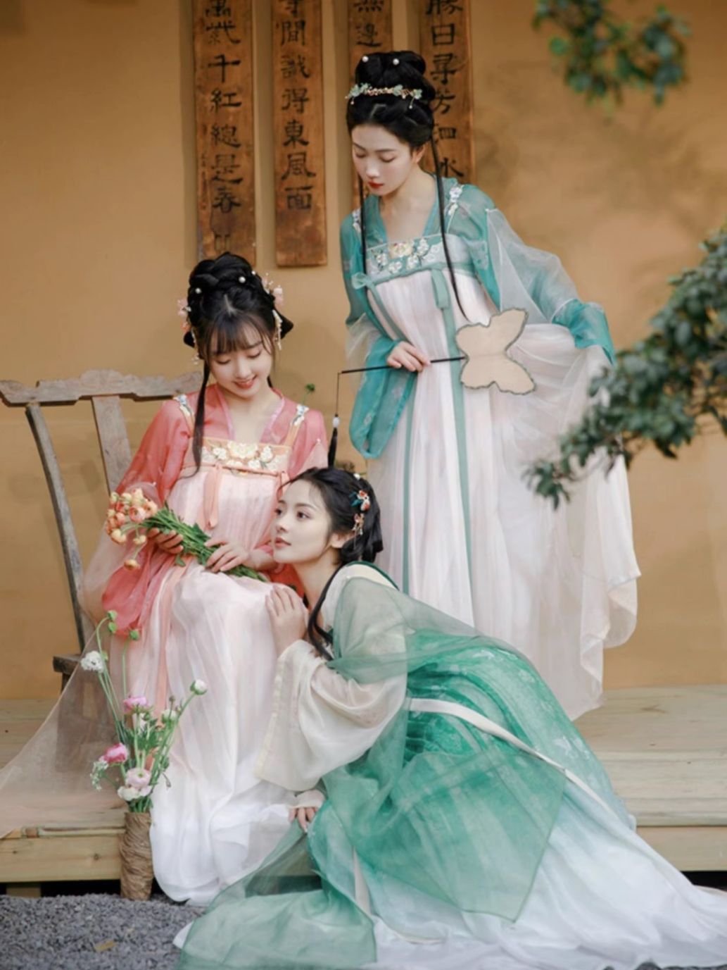 成人汉服女装2023夏秋季新款中国风唐制直领对襟衫齐胸襦裙两件套