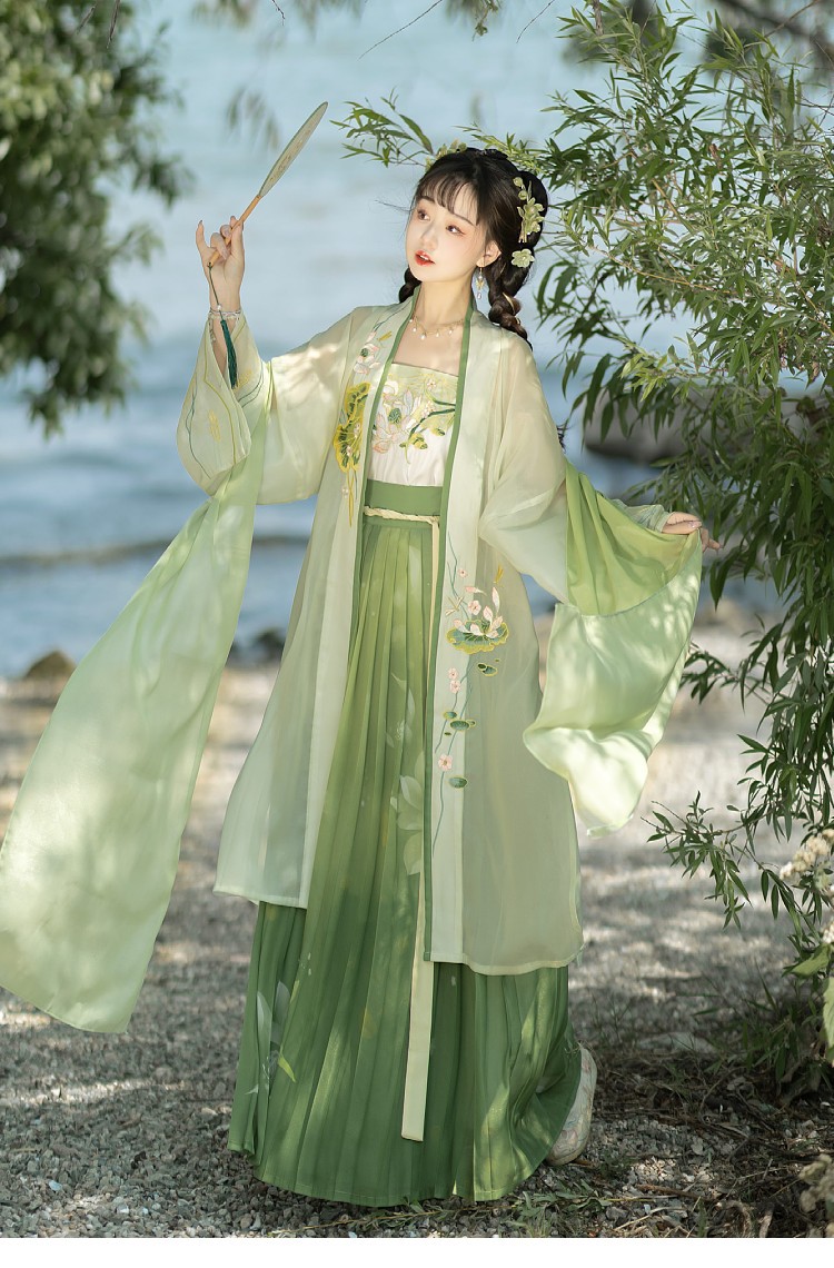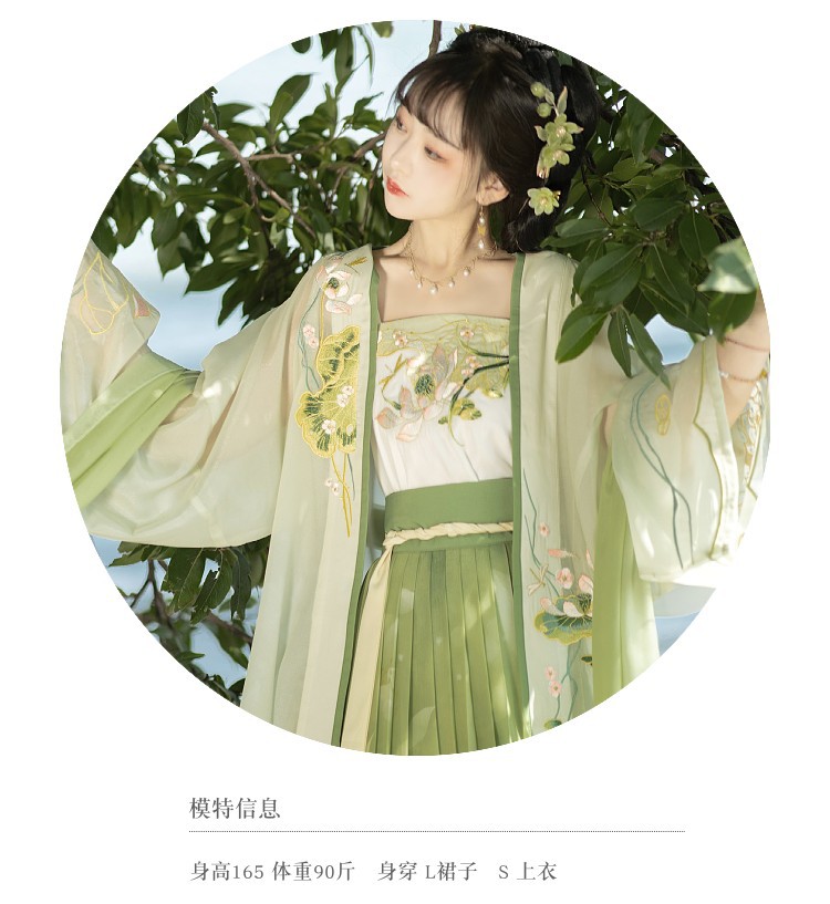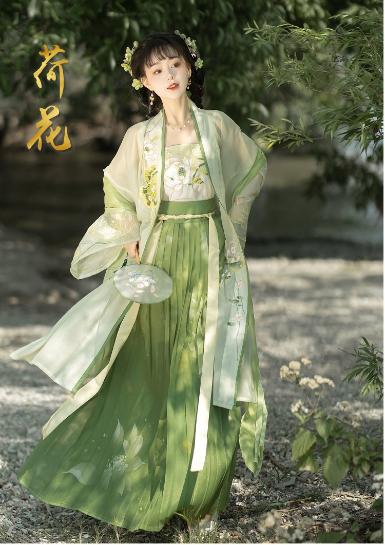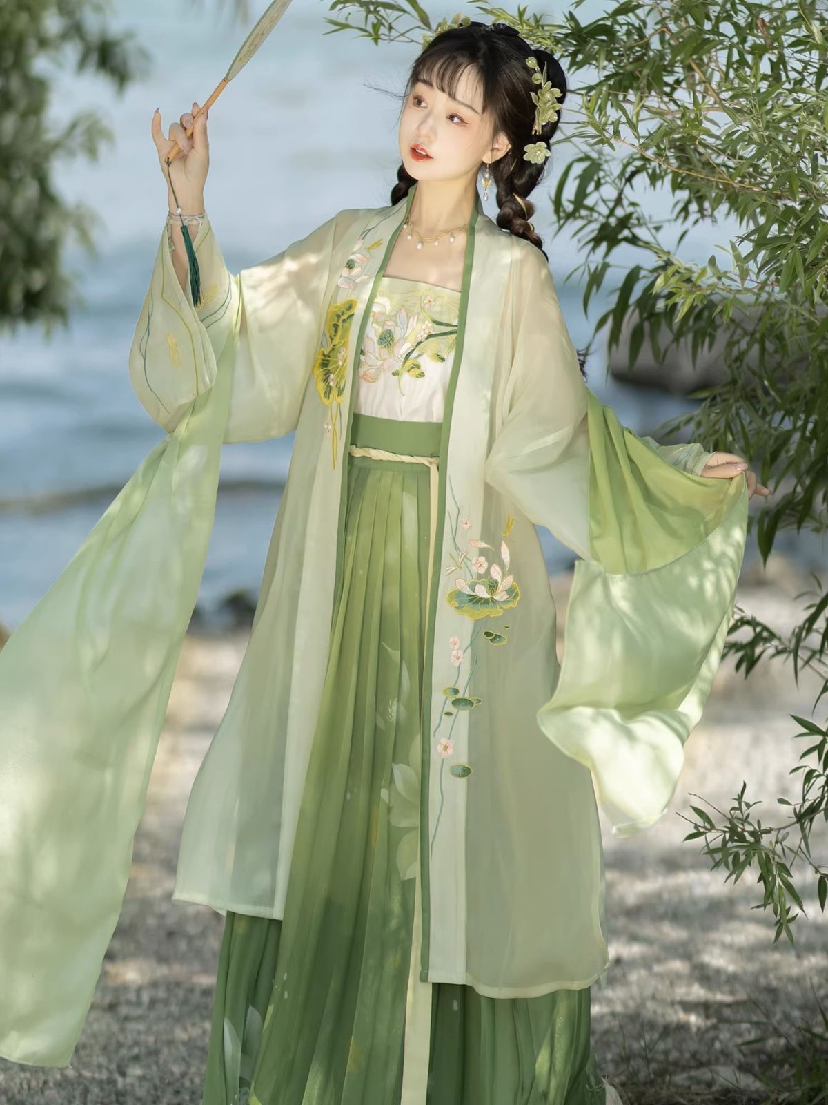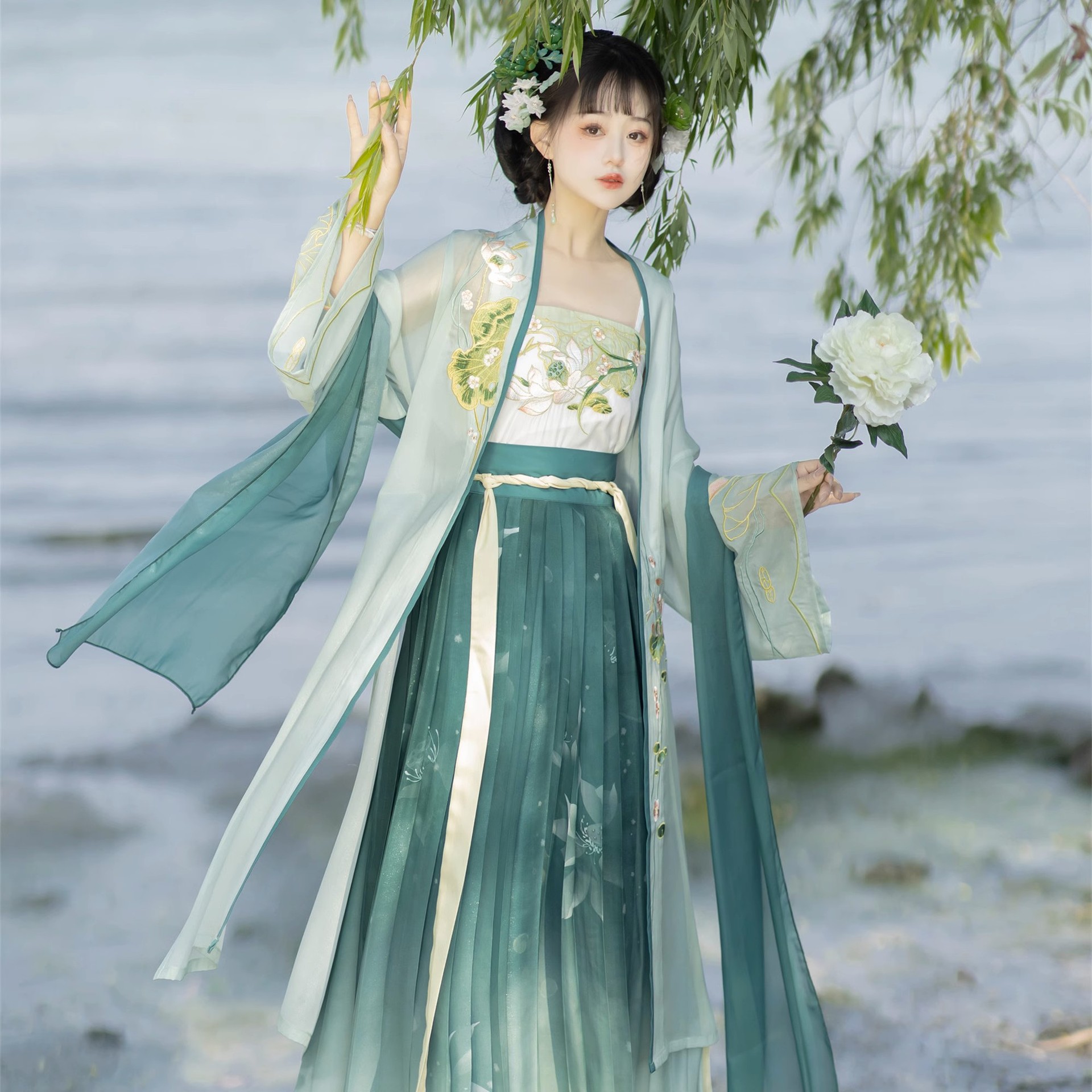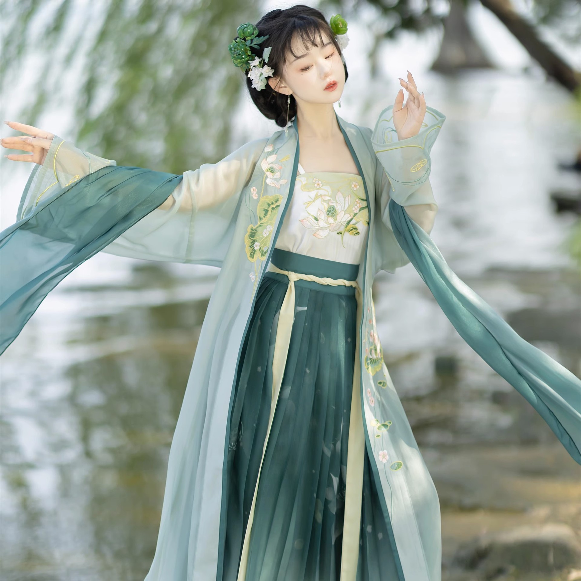 荷花成人汉服女原创宋制日常汉服女重工刺绣长衫褙子齐腰褶裙秋款