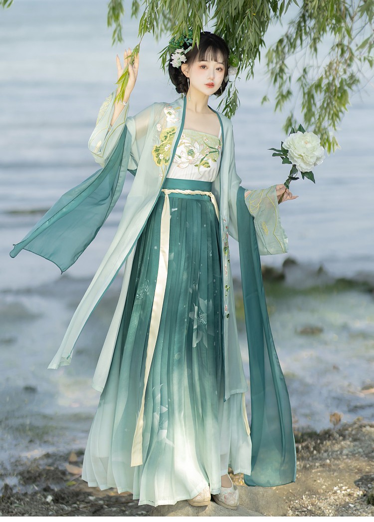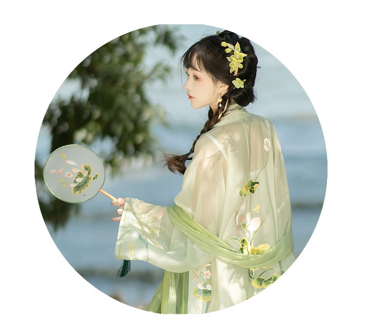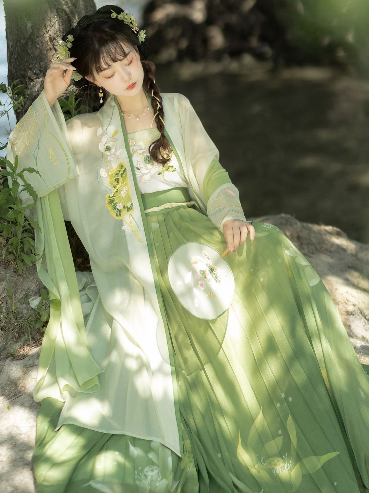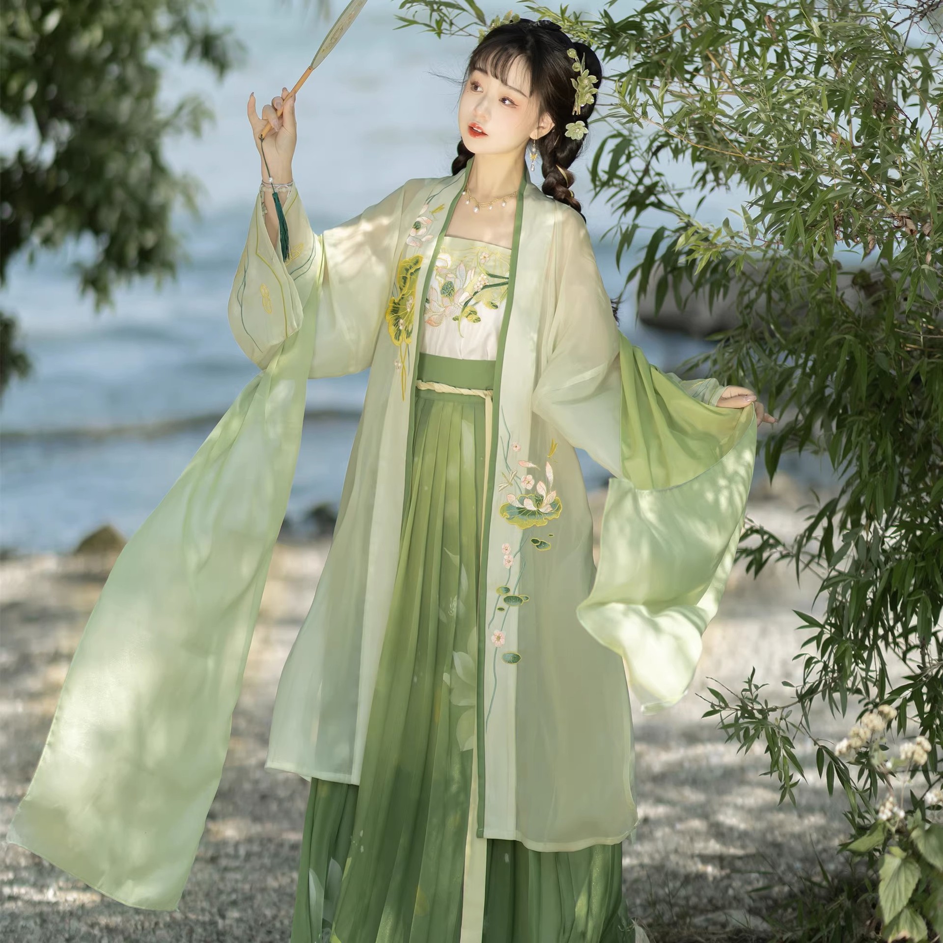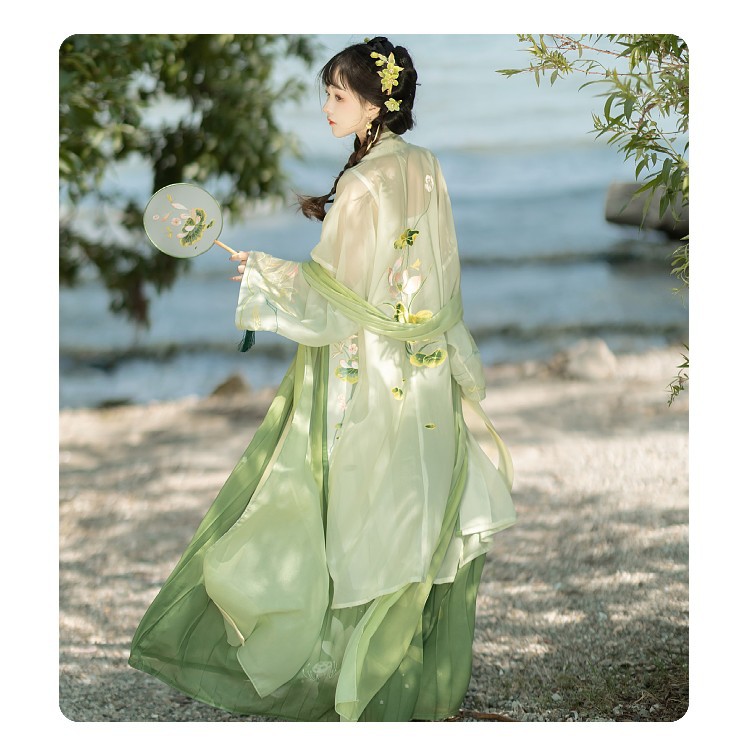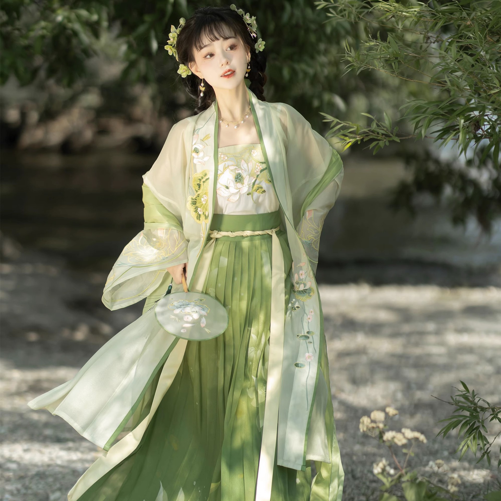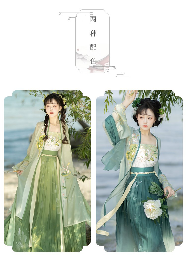 荷花成人汉服女原创宋制日常汉服女重工刺绣长衫褙子齐腰褶裙秋款