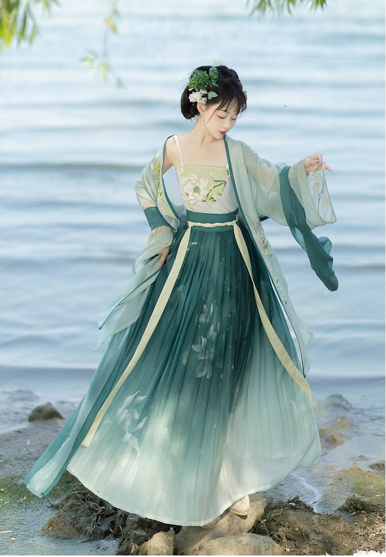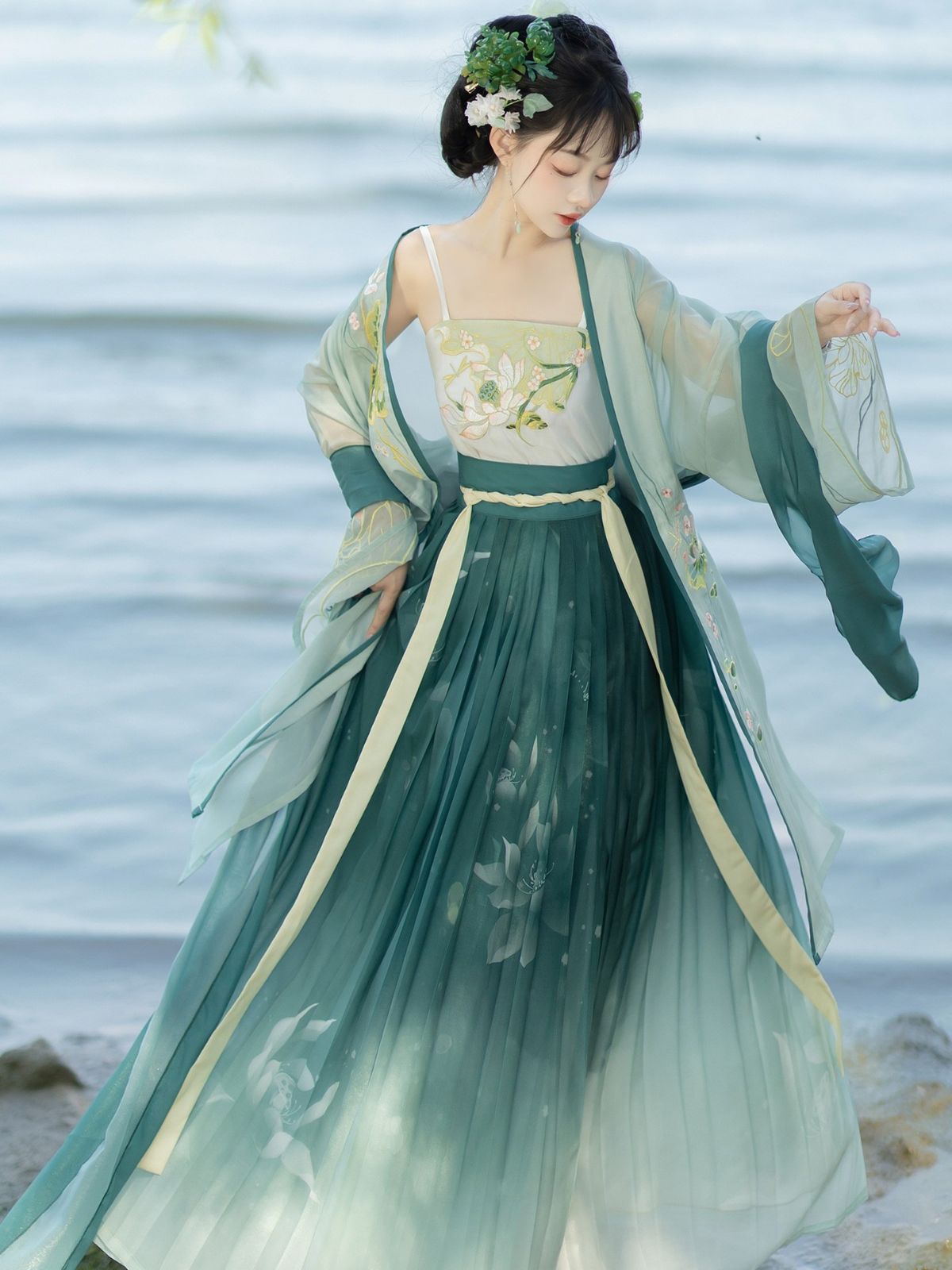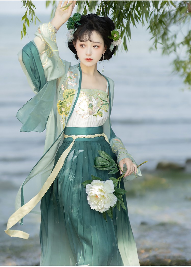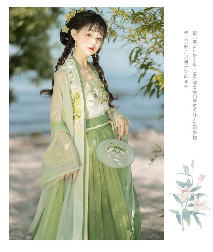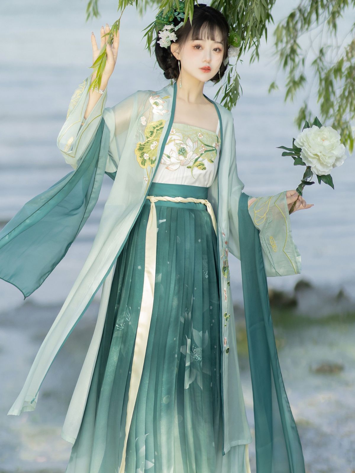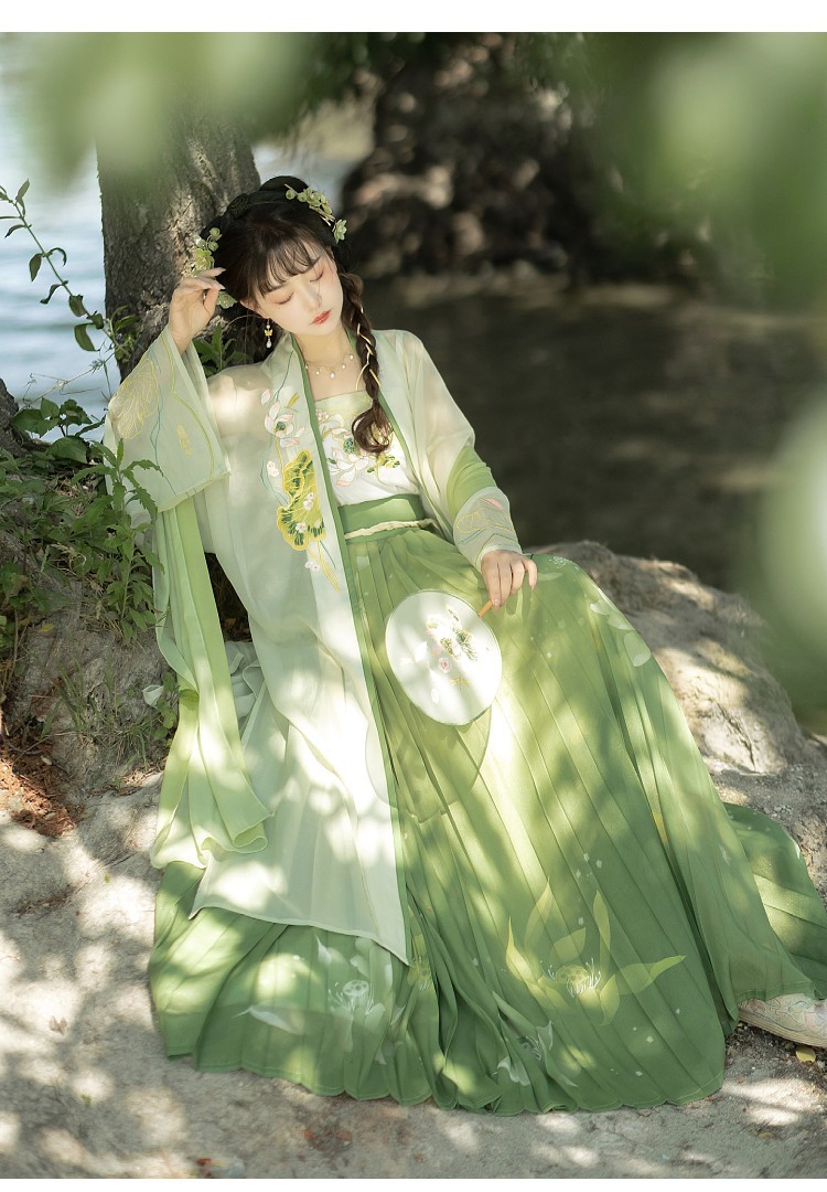 荷花成人汉服女原创宋制日常汉服女重工刺绣长衫褙子齐腰褶裙秋款