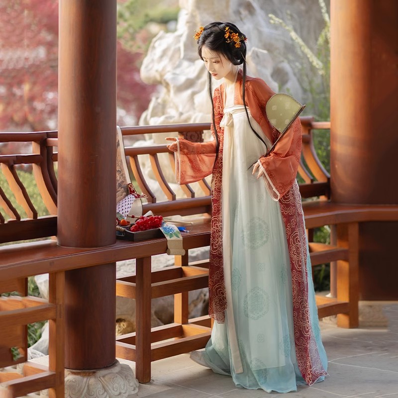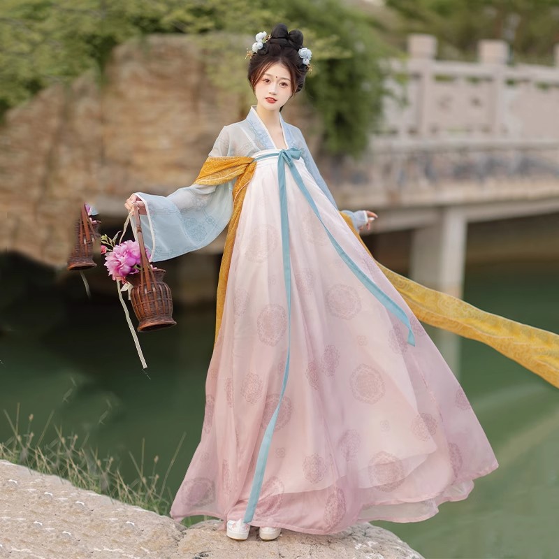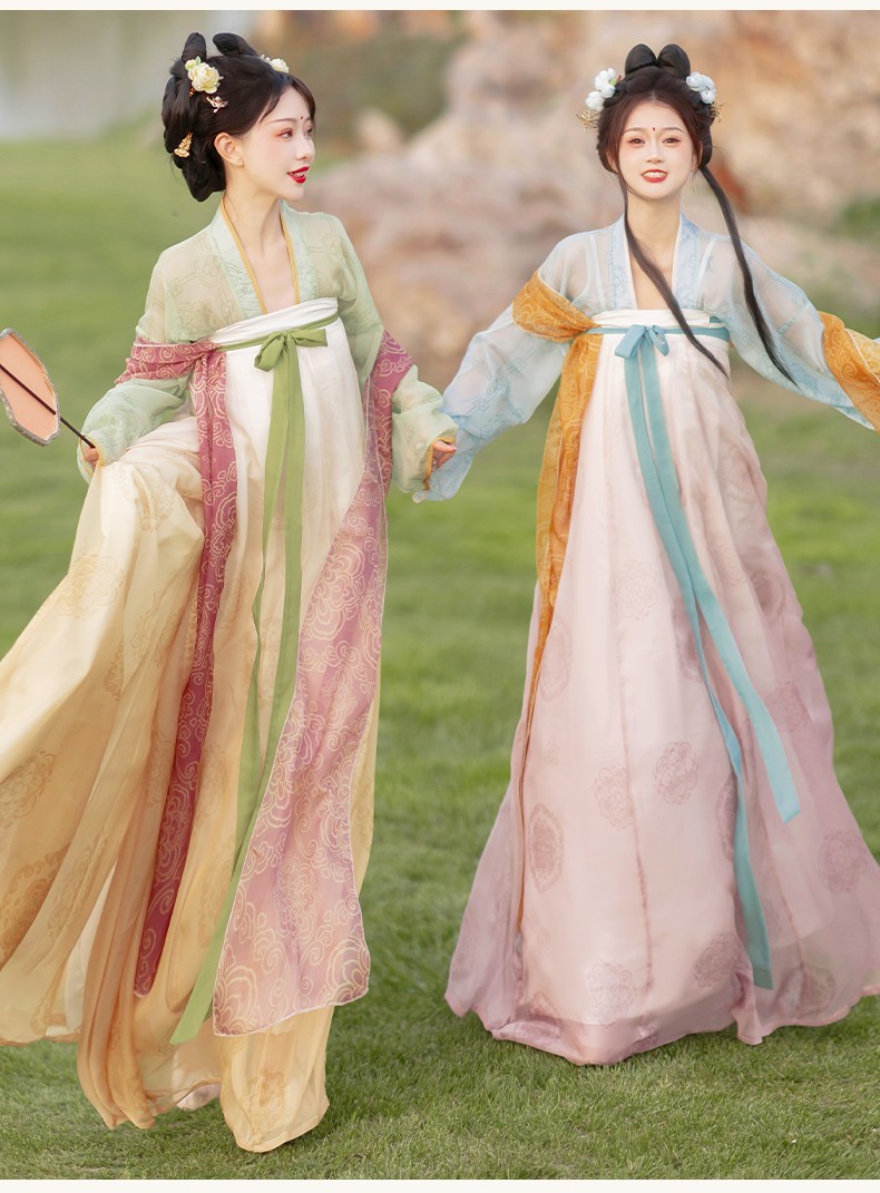 成人原创汉服女般般入画唐制齐胸一片式破裙改良清新日常春夏姐妹