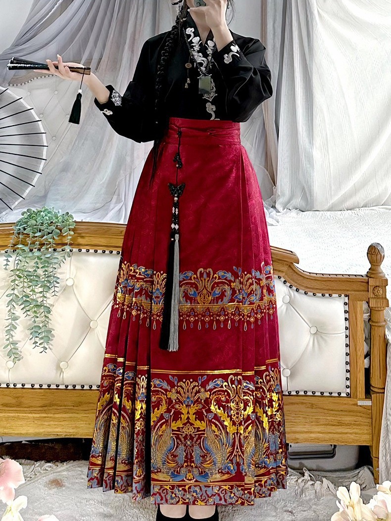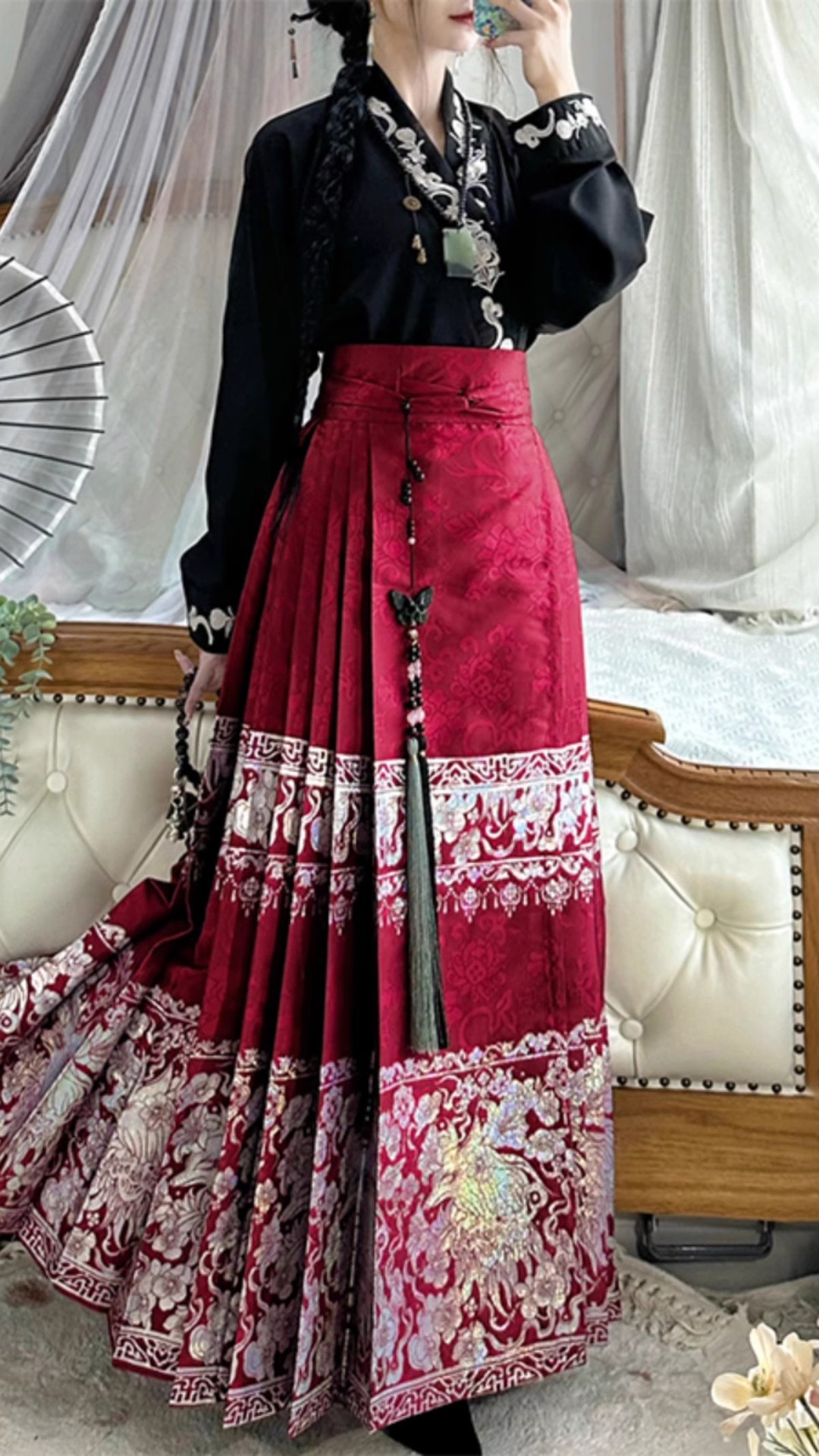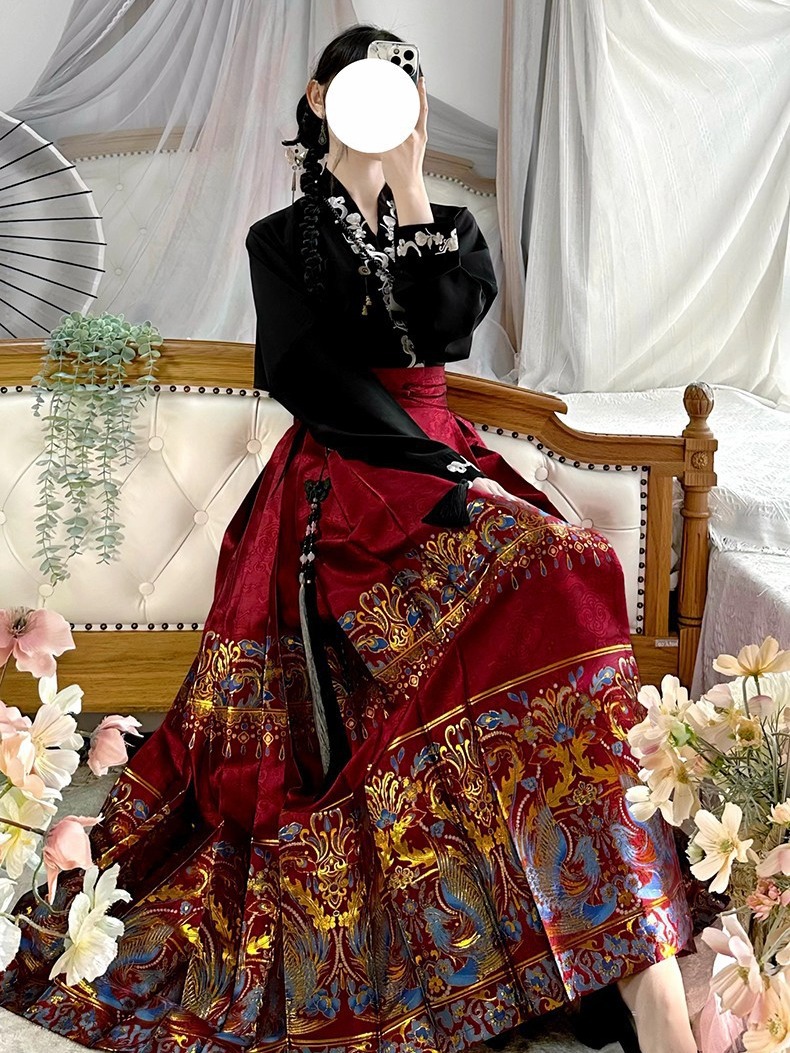 原创汉服马面裙星鸾明制仿点翠织金妆花飞机袖日常通勤款订婚服套