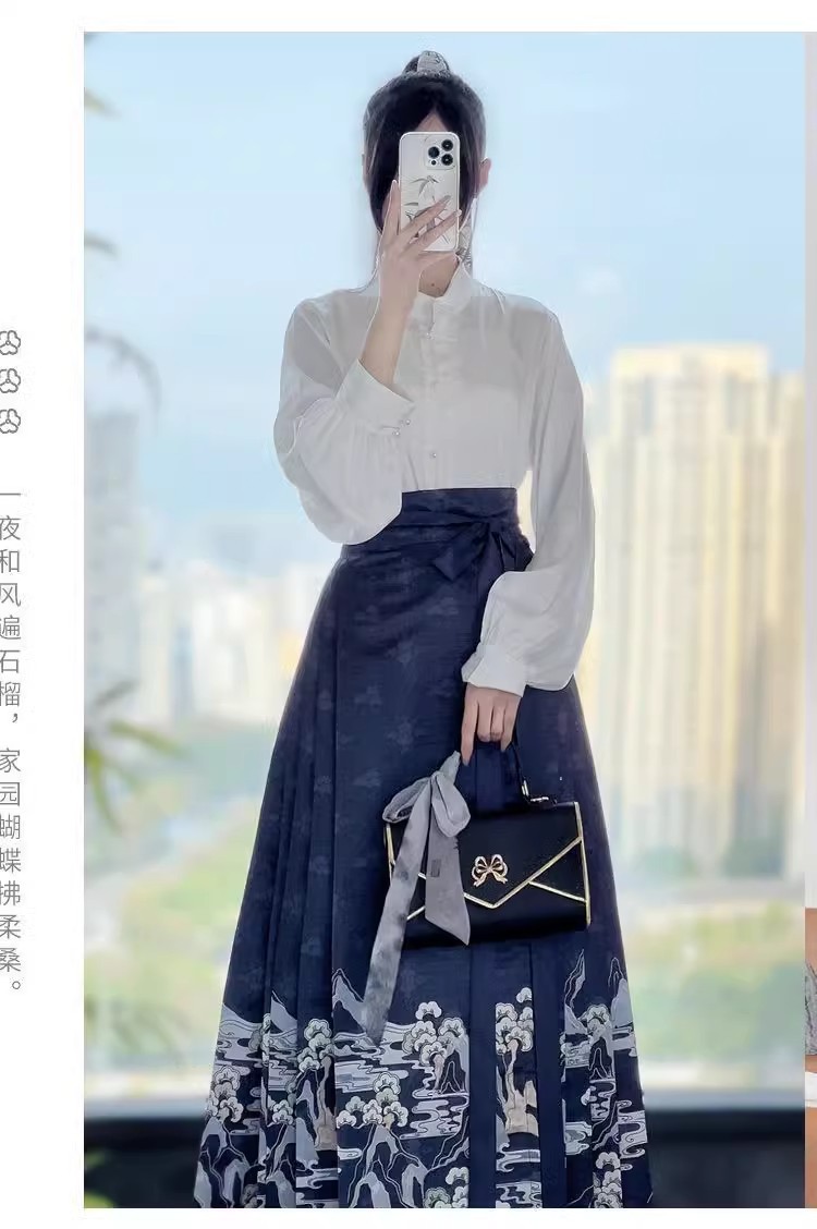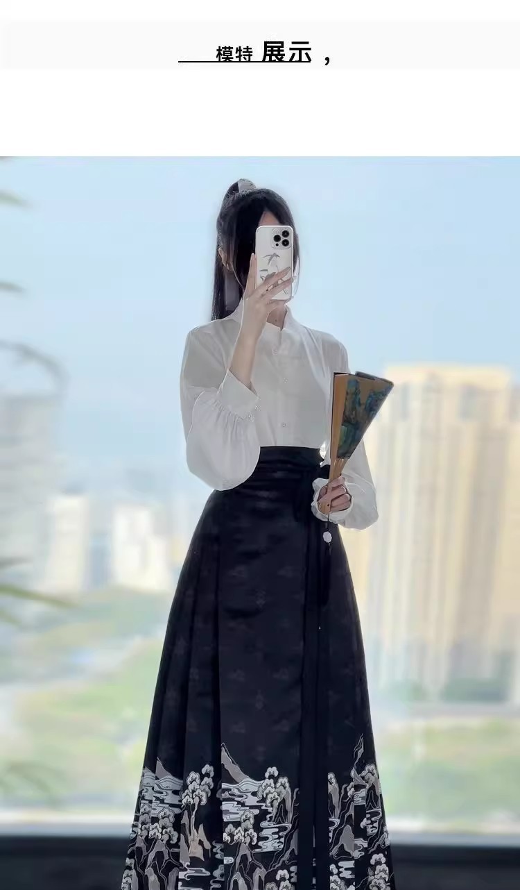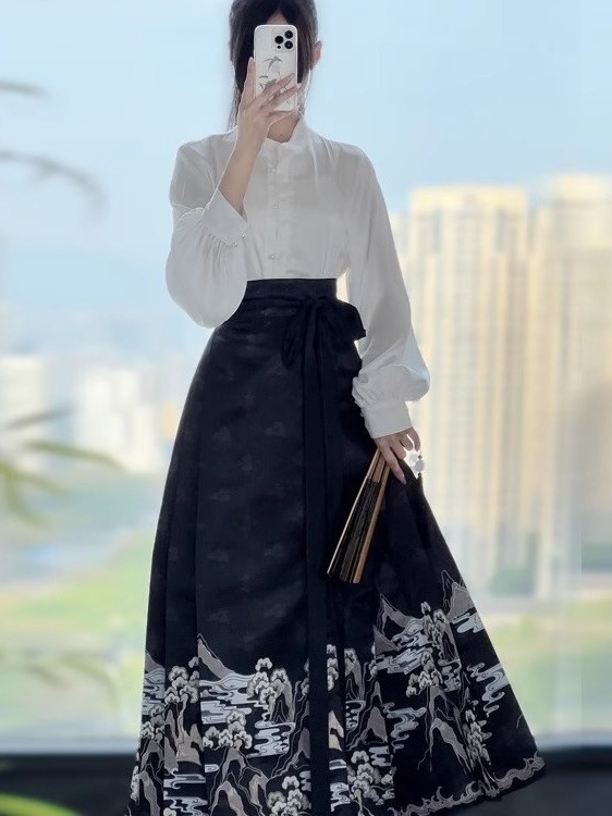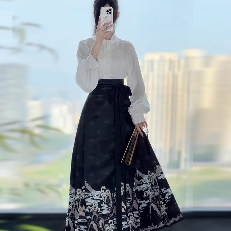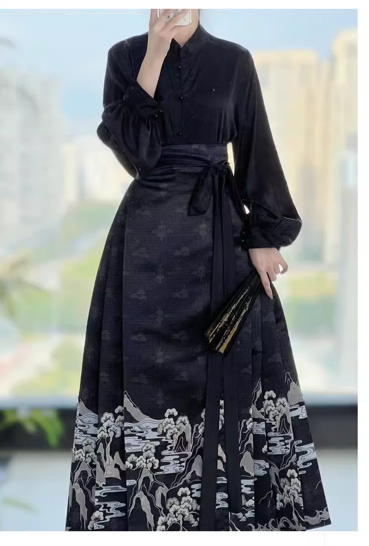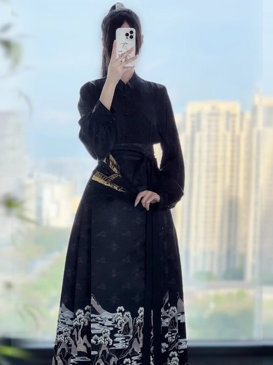成人原创汉服女锦绣山河明制立领短衫日常通勤马面裙全套一整套