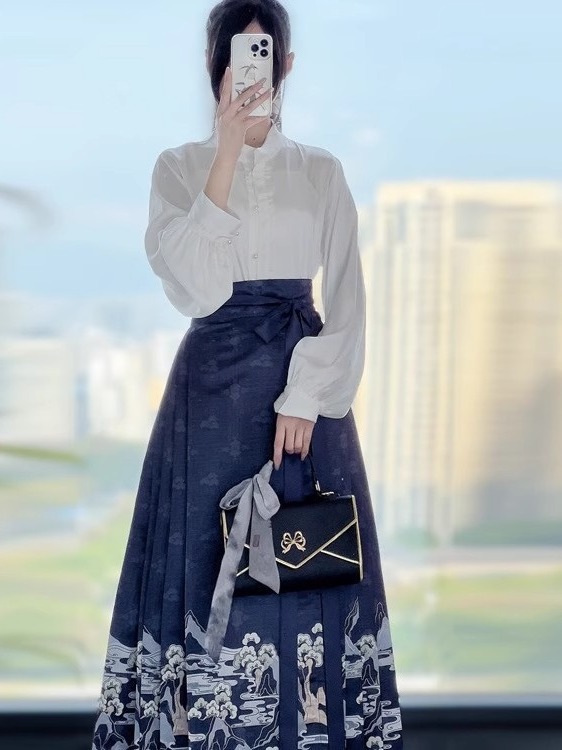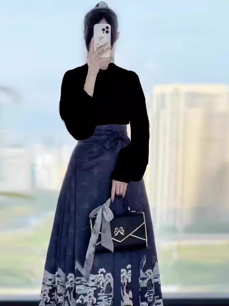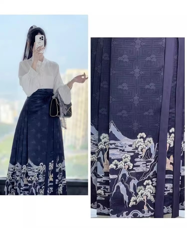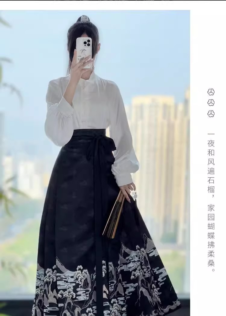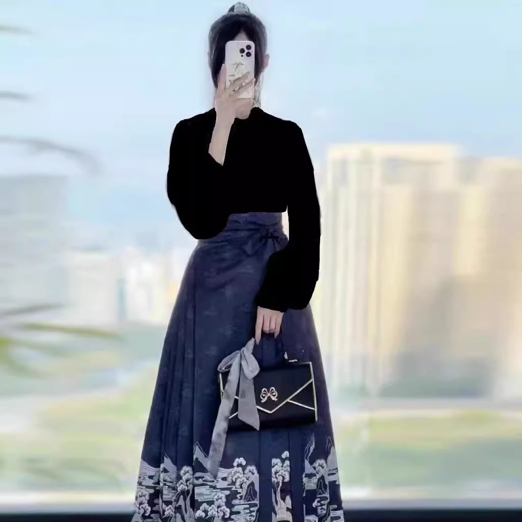 成人原创汉服女锦绣山河明制立领短衫日常通勤马面裙全套一整套