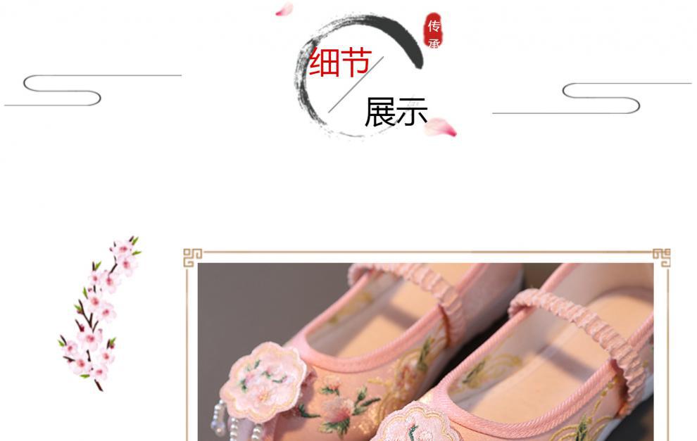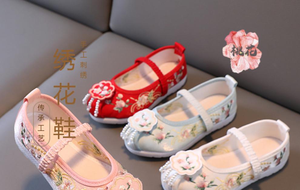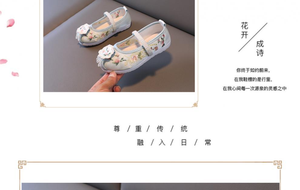 汉服女童老北京绣花鞋儿童布鞋中国风宝宝公主鞋学生古装表演出鞋
