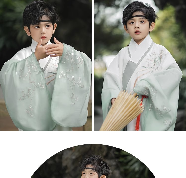儿童古装汉服男童夏季新款舒适表演服复古汉元素古装薄款刺绣套装